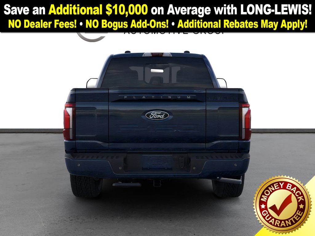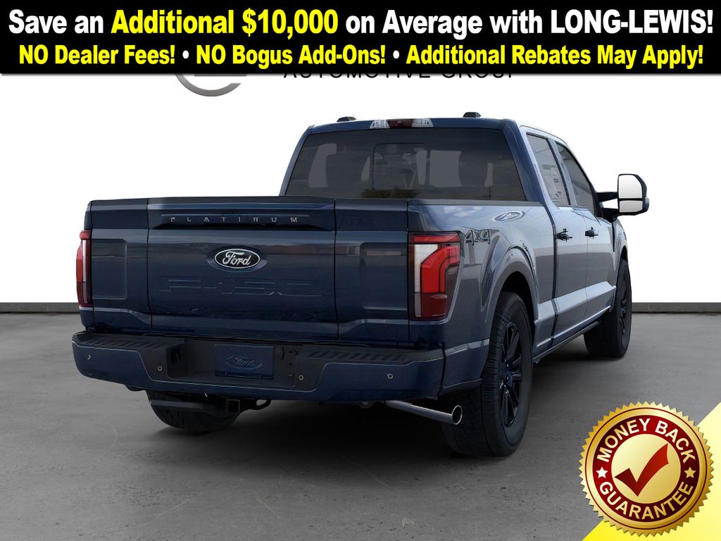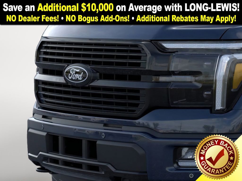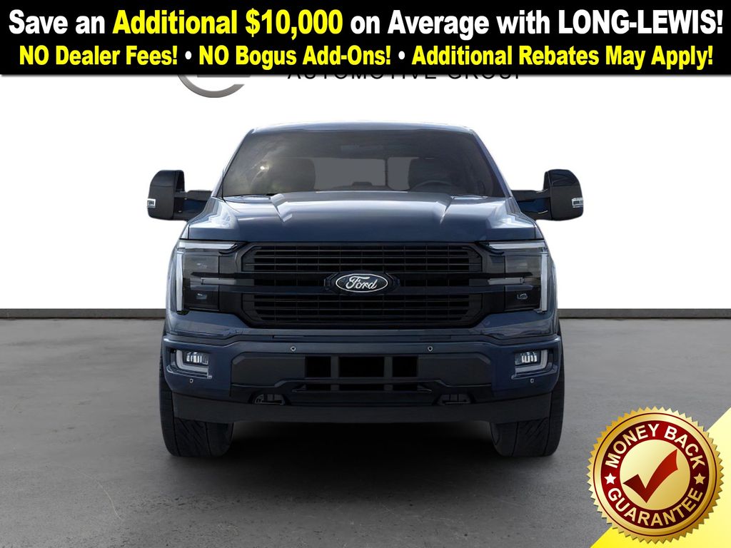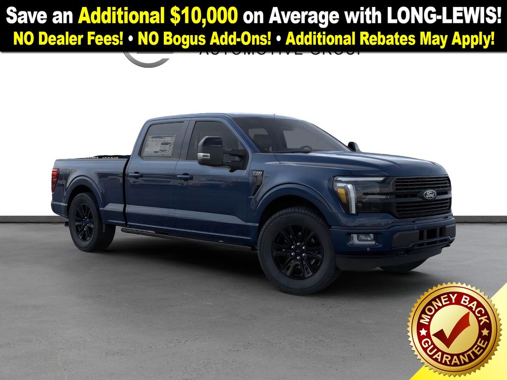 Antimatter Blue Metallic 2025 Ford F-150 Platinum NFT 4WD 10-Speed Automatic 3.5L V6 EcoBoost 4WD, 4-Wheel Disc Brakes, 8 Speakers, ABS brakes, Adjustable pedals, Air Conditioning, Alloy wheels, AM/FM radio: SiriusXM with 360L, Auto High-beam Headlights, Auto tilt-away steering wheel, Auto-dimming door mirrors, Auto-dimming Rear-View mirror, Automatic temperature control, Brake assist, Bumpers: body-color, Compass, Delay-off headlights, Driver door bin, Driver vanity mirror, Dual front impact airbags, Dual front side impact airbags, Electronic Locking w/3.55 Axle Ratio, Electronic Stability Control, Emergency communication system: SYNC 4 911 Assist, Front anti-roll bar, Front Bucket Seats, Front Center Armrest, Front dual zone A/C, Front fog lights, Front reading lights, Front wheel independent suspension, Fully automatic headlights, Garage door transmitter, Heated door mirrors, Heated front seats, Heated rear seats, Heated steering wheel, Illuminated entry, Internet access capable: FordPass Connect 5G, Leather steering wheel, LED Sideview Mirror Spotlights, Low tire pressure warning, Memory seat, Navigation system: Connected Navigation, Occupant sensing airbag, Outside temperature display, Overhead airbag, Overhead console, Panic alarm, Passenger door bin, Passenger vanity mirror, Pedal memory, Power door mirrors, Power driver seat, Power passenger seat, Power steering, Power Telescoping/Glass/Folding Trailer Tow Mirrors, Power windows, Radio data system, Radio: B&O Sound System by Bang & Olufsen, Rain sensing wipers, Rear reading lights, Rear seat center armrest, Rear step bumper, Rear window defroster, Remote keyless entry, Retractable Rear Center Step, Security system, Speed control, Split folding rear seat, Steering wheel memory, Steering wheel mounted audio controls, SYNC 4 w/Enhanced Voice Recognition, Tachometer, Telescoping steering wheel, Tilt steering wheel, Traction control, Trip computer, Turn signal indicator mirrors, Unique Multi-Contour Leather Bucket Seats, Variably intermittent wipers, Ventilated front seats, Voltmeter, Wheel Well Liner, Wheels: 20" Painted Gloss Ebony Black, 4WD.