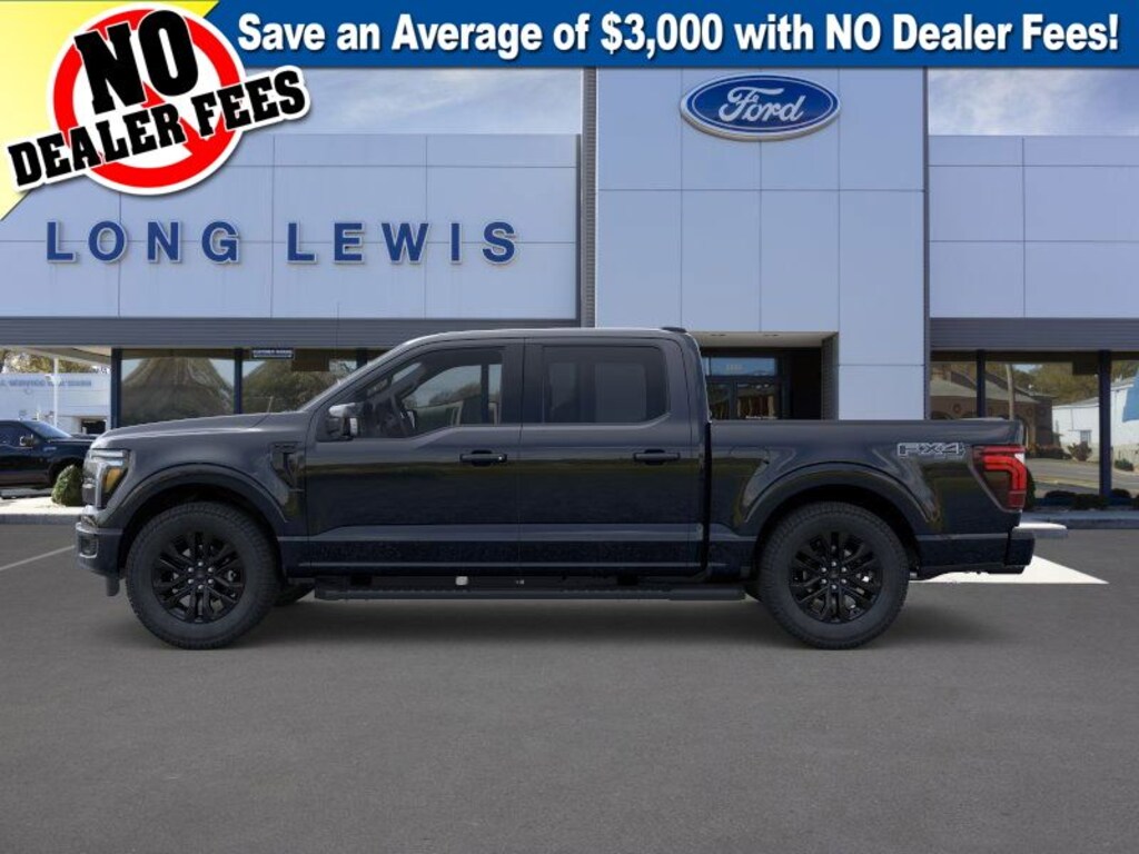 Agate Black Metallic 2025 Ford F-150 Lariat fctp 4WD 10-Speed Automatic 3.5L V6 EcoBoost 4WD, 3.31 Axle Ratio, 4-Wheel Disc Brakes, 8 Speakers, ABS brakes, Adjustable pedals, Air Conditioning, Alloy wheels, Auto High-beam Headlights, Auto-dimming door mirrors, Auto-dimming Rear-View mirror, Automatic temperature control, Brake assist, Bumpers: chrome, Chrome wheels, Compass, Delay-off headlights, Driver door bin, Driver vanity mirror, Dual front impact airbags, Dual front side impact airbags, Electronic Stability Control, Emergency communication system: SYNC 4 911 Assist, Front anti-roll bar, Front Bucket Seats, Front Center Armrest, Front dual zone A/C, Front fog lights, Front reading lights, Front wheel independent suspension, Fully automatic headlights, Garage door transmitter, Heated door mirrors, Heated front seats, Heated steering wheel, Illuminated entry, Low tire pressure warning, Memory seat, Navigation system: Connected Navigation, Occupant sensing airbag, Outside temperature display, Overhead airbag, Overhead console, Panic alarm, Passenger door bin, Passenger vanity mirror, Pedal memory, Power door mirrors, Power driver seat, Power passenger seat, Power steering, Power windows, Radio data system, Radio: B&O Sound System by Bang & Olufsen, Rain sensing wipers, Rear reading lights, Rear seat center armrest, Rear step bumper, Rear window defroster, Remote keyless entry, Security system, Speed control, Split folding rear seat, Steering wheel mounted audio controls, SYNC 4 w/Enhanced Voice Recognition, Tachometer, Telescoping steering wheel, Tilt steering wheel, Traction control, Trip computer, Turn signal indicator mirrors, Variably intermittent wipers, Ventilated front seats, Voltmeter, Wheels: 18" Chrome-Like PVD, 4WD.