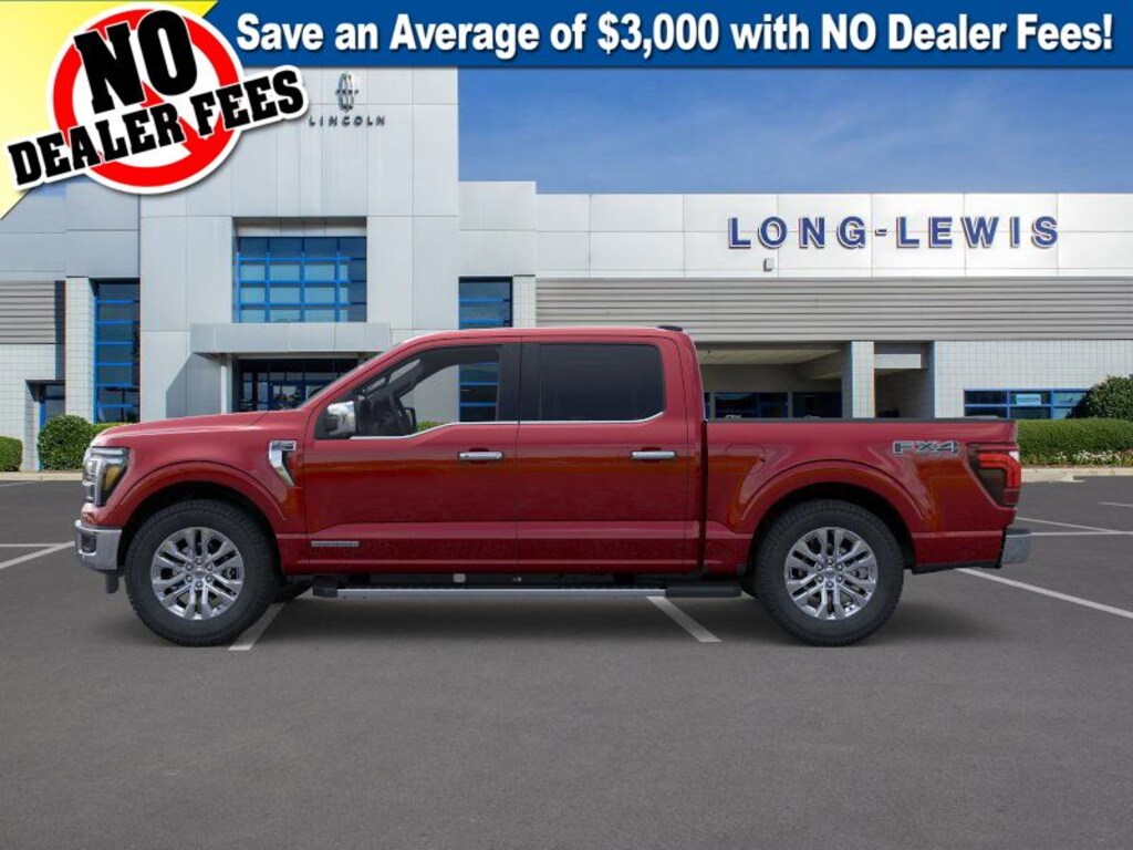 Dealer Discount of $8,107 off MSRP Rapid Red Metallic Tinted Clearcoat 2025 Ford F-150 Lariat fctp 4WD 10-Speed Automatic 3.5L PowerBoost Full-Hybrid V6 3.5L PowerBoost Full-Hybrid V6, 4WD, 4 Pickup Box Tie-Down Plates, 4-Wheel Disc Brakes, 4x4 FX4 Off-Road Bodyside Decal, 6" Extended Running Boards, 8 Speakers, ABS brakes, ActiveX Trimmed Bucket Seats, Adjustable pedals, Air Conditioning, Alloy wheels, AM/FM radio: SiriusXM with 360L, Auto High-beam Headlights, Auto-dimming door mirrors, Auto-dimming Rear-View mirror, Automatic temperature control, Bed Utility Package, Brake assist, Bumpers: chrome, Chrome wheels, Compass, Delay-off headlights, Driver door bin, Driver vanity mirror, Dual front impact airbags, Dual front side impact airbags, Electronic Stability Control, Emergency communication system: SYNC 4 911 Assist, Equipment Group 501A Mid, Front anti-roll bar, Front Bucket Seats, Front Center Armrest, Front dual zone A/C, Front fog lights, Front License Plate Bracket, Front reading lights, Front wheel independent suspension, Fully automatic headlights, FX4 Off-Road Package, Garage door transmitter, Heated door mirrors, Heated front seats, Heated steering wheel, Hill Descent Control, Illuminated entry, LED Box Lighting, Low tire pressure warning, Memory seat, Monotube Rear Shocks, Navigation system: Connected Navigation, Occupant sensing airbag, Off-Road Tuned Front Shock Absorbers, Outside temperature display, Overhead airbag, Overhead console, Panic alarm, Passenger door bin, Passenger vanity mirror, Pedal memory, Power door mirrors, Power driver seat, Power passenger seat, Power steering, Power Tailgate, Power windows, Pro Access Tailgate, Pro Power Onboard - 7.2KW, Radio data system, Radio: B&O Sound System by Bang & Olufsen, Rain sensing wipers, Rear reading lights, Rear seat center armrest, Rear step bumper, Rear window defroster, Remote keyless entry, Rock Crawl Mode, Security system, Speed control, Split folding rear seat, Steering wheel mounted audio controls, SYNC 4 w/Enhanced Voice Recognition, Tachometer, Telescoping steering wheel, Tilt steering wheel, Tow/Haul Package, Traction control, Tray Style Floor Liner w/o Carpet Mats, Trip computer, Turn signal indicator mirrors, Twin Panel Moonroof, Variably intermittent wipers, Ventilated front seats, Voltmeter, Wheels: 18" Chrome-Like PVD, Wheels: 20" Chrome-Like PVD, 3.5L PowerBoost Full-Hybrid V6, 4WD.