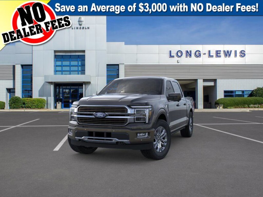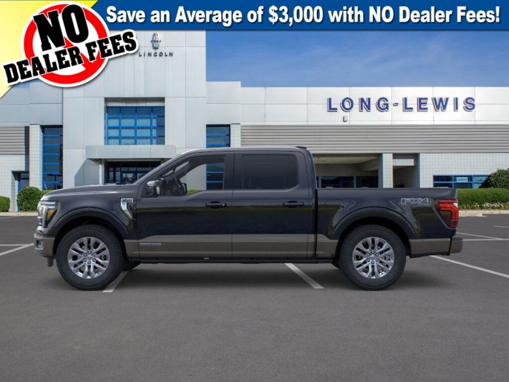 Dealer Discount of $8,223 off MSRP Agate Black Metallic 2025 Ford F-150 King Ranch 4WD 10-Speed Automatic 3.5L PowerBoost Full-Hybrid V6 3.5L PowerBoost Full-Hybrid V6, 4WD, 14 Speakers, 4-Wheel Disc Brakes, 4x4 FX4 Off-Road Bodyside Decal, ABS brakes, Adjustable pedals, Air Conditioning, Alloy wheels, AM/FM radio: SiriusXM with 360L, Auto High-beam Headlights, Auto tilt-away steering wheel, Auto-dimming door mirrors, Auto-dimming Rear-View mirror, Automatic temperature control, Brake assist, Chrome wheels, Compass, Delay-off headlights, Driver door bin, Driver vanity mirror, Dual front impact airbags, Dual front side impact airbags, Electronic Stability Control, Emergency communication system: SYNC 4 911 Assist, Front anti-roll bar, Front Bucket Seats, Front Center Armrest, Front dual zone A/C, Front fog lights, Front License Plate Bracket, Front reading lights, Front wheel independent suspension, Fully automatic headlights, FX4 Off-Road Package, Garage door transmitter, Genuine wood dashboard insert, Heads-Up Display, Heated door mirrors, Heated front seats, Heated rear seats, Heated steering wheel, Hill Descent Control, Illuminated entry, King Ranch Multicontour Leather Bucket Seats, Leather steering wheel, Low tire pressure warning, Memory seat, Monotube Rear Shocks, Navigation system: Connected Navigation, Occupant sensing airbag, Off-Road Tuned Front Shock Absorbers, Outside temperature display, Overhead airbag, Overhead console, Panic alarm, Passenger door bin, Passenger vanity mirror, Pedal memory, Power door mirrors, Power driver seat, Power moonroof, Power passenger seat, Power steering, Power windows, Radio data system, Radio: B&O Unleashed Sound System by Bang & Olufsen, Rain sensing wipers, Rear reading lights, Rear seat center armrest, Rear step bumper, Rear window defroster, Remote keyless entry, Rock Crawl Mode, Security system, Speed control, Split folding rear seat, Steering wheel memory, Steering wheel mounted audio controls, SYNC 4 w/Enhanced Voice Recognition, Tachometer, Telescoping steering wheel, Tilt steering wheel, Traction control, Trip computer, Turn signal indicator mirrors, Variably intermittent wipers, Ventilated front seats, Voltmeter, Wheels: 20" Chrome-Like PVD, 3.5L PowerBoost Full-Hybrid V6, 4WD.