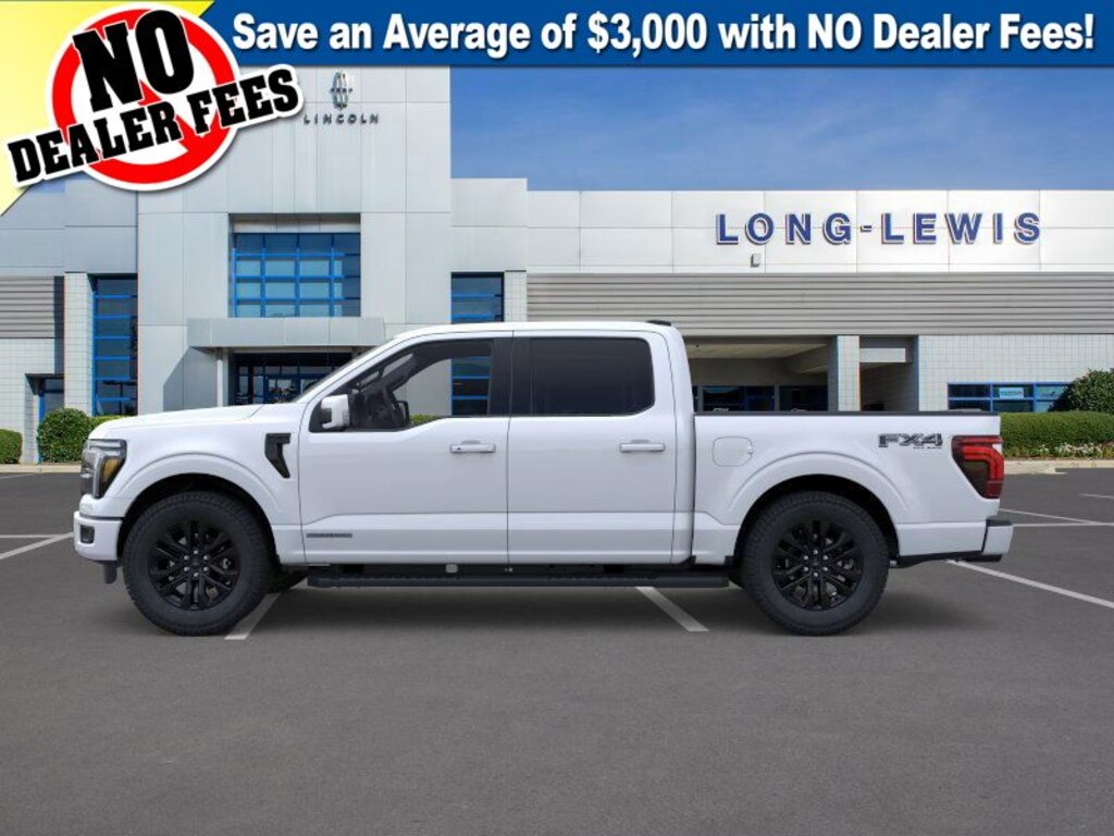 Dealer Discount of $8,135 off MSRP Space White Metallic 2025 Ford F-150 Lariat fctp 4WD 10-Speed Automatic 3.5L PowerBoost Full-Hybrid V6 3.5L PowerBoost Full-Hybrid V6, 4WD, 3.31 Axle Ratio, 4 Pickup Box Tie-Down Plates, 4-Wheel Disc Brakes, 4x4 FX4 Off-Road Bodyside Decal, 6" Extended Running Boards, 8 Speakers, ABS brakes, ActiveX Trimmed Bucket Seats, Adjustable pedals, Air Conditioning, Alloy wheels, AM/FM radio: SiriusXM with 360L, Auto High-beam Headlights, Auto-dimming door mirrors, Auto-dimming Rear-View mirror, Automatic temperature control, Bed Utility Package, Brake assist, Bumpers: chrome, Chrome wheels, Compass, Delay-off headlights, Driver door bin, Driver vanity mirror, Dual front impact airbags, Dual front side impact airbags, Electronic Stability Control, Emergency communication system: SYNC 4 911 Assist, Front anti-roll bar, Front Bucket Seats, Front Center Armrest, Front dual zone A/C, Front fog lights, Front License Plate Bracket, Front reading lights, Front wheel independent suspension, Fully automatic headlights, FX4 Off-Road Package, Garage door transmitter, Heated door mirrors, Heated front seats, Heated steering wheel, Hill Descent Control, Illuminated entry, LED Box Lighting, Low tire pressure warning, Max Tow Electronic Locking w/3.73 Axle Ratio, Memory seat, Monotube Rear Shocks, Navigation system: Connected Navigation, Occupant sensing airbag, Off-Road Tuned Front Shock Absorbers, Outside temperature display, Overhead airbag, Overhead console, Panic alarm, Passenger door bin, Passenger vanity mirror, Pedal memory, Power door mirrors, Power driver seat, Power passenger seat, Power steering, Power Tailgate, Power windows, Pro Access Tailgate, Pro Power Onboard - 7.2KW, Radio data system, Radio: B&O Sound System by Bang & Olufsen, Rain sensing wipers, Rear reading lights, Rear seat center armrest, Rear step bumper, Rear window defroster, Remote keyless entry, Rock Crawl Mode, Security system, Speed control, Split folding rear seat, Steering wheel mounted audio controls, SYNC 4 w/Enhanced Voice Recognition, Tachometer, Telescoping steering wheel, Tilt steering wheel, Tow/Haul Package, Traction control, Tray Style Floor Liner w/o Carpet Mats, Trip computer, Turn signal indicator mirrors, Variably intermittent wipers, Ventilated front seats, Voltmeter, Wheels: 18" Chrome-Like PVD, 3.5L PowerBoost Full-Hybrid V6, 4WD.