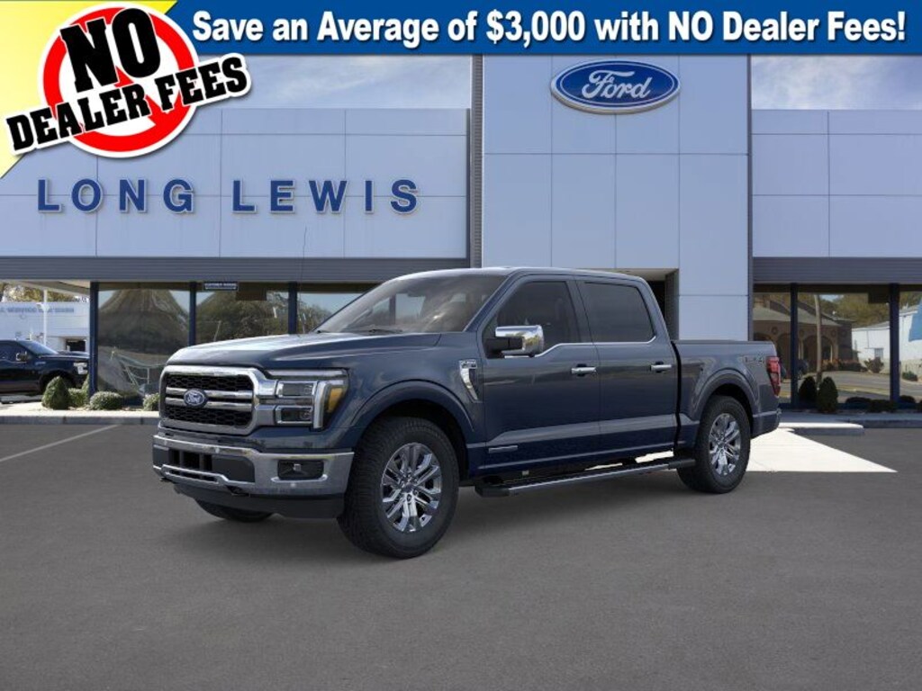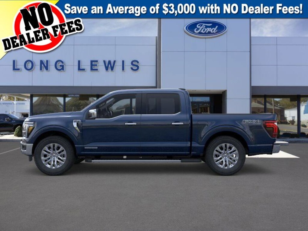 Antimatter Blue Metallic 2025 Ford F-150 Lariat 4WD 10-Speed Automatic 3.5L PowerBoost Full-Hybrid V6 3.5L PowerBoost Full-Hybrid V6, 4WD, 3.31 Axle Ratio, 4 Pickup Box Tie-Down Plates, 4-Wheel Disc Brakes, 4x4 FX4 Off-Road Bodyside Decal, 6" Extended Running Boards, 8 Speakers, ABS brakes, ActiveX Trimmed Bucket Seats, Adjustable pedals, Air Conditioning, Alloy wheels, AM/FM radio: SiriusXM with 360L, Auto High-beam Headlights, Auto-dimming door mirrors, Auto-dimming Rear-View mirror, Automatic temperature control, Bed Utility Package, Brake assist, Bumpers: chrome, Chrome wheels, Compass, Delay-off headlights, Driver door bin, Driver vanity mirror, Dual front impact airbags, Dual front side impact airbags, Electronic Locking w/3.73 Axle Ratio, Electronic Stability Control, Emergency communication system: SYNC 4 911 Assist, Front anti-roll bar, Front Bucket Seats, Front Center Armrest, Front dual zone A/C, Front fog lights, Front License Plate Bracket, Front reading lights, Front wheel independent suspension, Fully automatic headlights, FX4 Off-Road Package, Garage door transmitter, Heated door mirrors, Heated front seats, Heated steering wheel, Hill Descent Control, Illuminated entry, LED Box Lighting, Low tire pressure warning, Memory seat, Monotube Rear Shocks, Navigation system: Connected Navigation, Occupant sensing airbag, Off-Road Tuned Front Shock Absorbers, Outside temperature display, Overhead airbag, Overhead console, Panic alarm, Passenger door bin, Passenger vanity mirror, Pedal memory, Power door mirrors, Power driver seat, Power passenger seat, Power steering, Power Tailgate, Power windows, Pro Access Tailgate, Pro Power Onboard - 7.2KW, Radio data system, Radio: B&O Sound System by Bang & Olufsen, Rain sensing wipers, Rear reading lights, Rear seat center armrest, Rear step bumper, Rear window defroster, Remote keyless entry, Rock Crawl Mode, Security system, Speed control, Split folding rear seat, Steering wheel mounted audio controls, SYNC 4 w/Enhanced Voice Recognition, Tachometer, Telescoping steering wheel, Tilt steering wheel, Tow/Haul Package, Traction control, Tray Style Floor Liner w/o Carpet Mats, Trip computer, Turn signal indicator mirrors, Variably intermittent wipers, Ventilated front seats, Voltmeter, Wheels: 18" Chrome-Like PVD, 3.5L PowerBoost Full-Hybrid V6, 4WD.