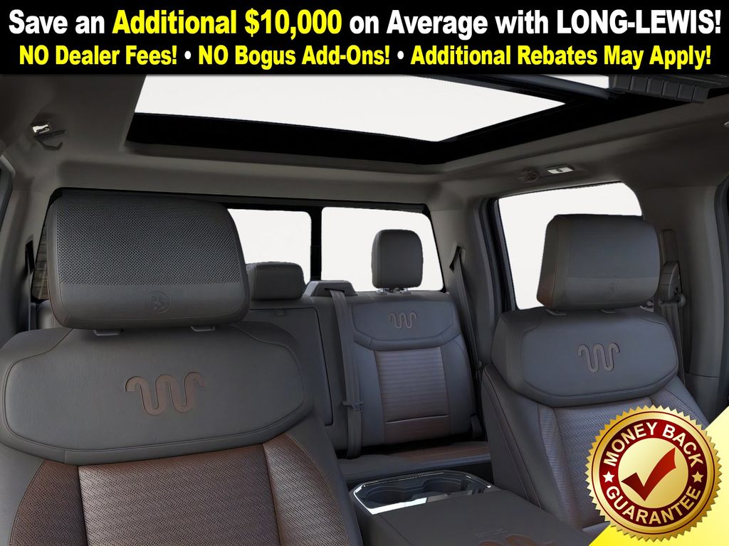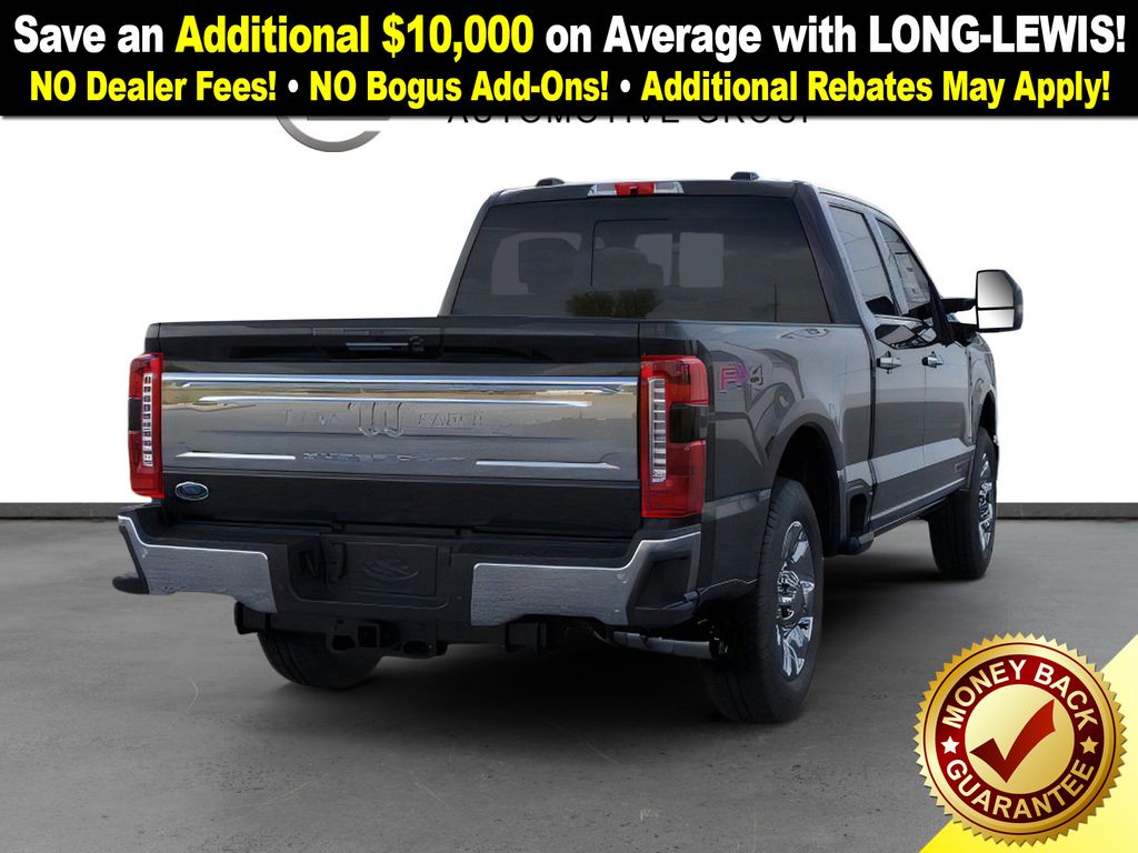 Agate Black Metallic 2025 Ford F-350SD King Ranch NFT 4WD 10-Speed Automatic 6.7L High Output Power Stroke V8 Diesel 4WD, ABS brakes, Alloy wheels, Compass, Electronic Stability Control, Front dual zone A/C, Heated door mirrors, Heated front seats, Heated rear seats, Illuminated entry, Low tire pressure warning, Navigation System, Remote keyless entry, Traction control, 14 Speakers, 4-Wheel Disc Brakes, Adjustable pedals, Air Conditioning, AM/FM radio: SiriusXM with 360L, Auto High-beam Headlights, Auto tilt-away steering wheel, Auto-dimming Rear-View mirror, Automatic temperature control, Brake assist, Delay-off headlights, Driver door bin, Driver vanity mirror, Dual front impact airbags, Dual front side impact airbags, Emergency communication system: SYNC 4 911 Assist, Flow-Through Console, Front anti-roll bar, Front Bucket Seats, Front Center Armrest, Front fog lights, Front reading lights, Fully automatic headlights, Garage door transmitter, Heads-Up Display, Heated steering wheel, Leather steering wheel, Memory seat, Outside temperature display, Overhead airbag, Overhead console, Panic alarm, Passenger door bin, Passenger vanity mirror, Pedal memory, Power door mirrors, Power driver seat, Power passenger seat, Power steering, Power windows, Radio: B&O Unleashed Sound System by Bang & Olufsen, Rain sensing wipers, Rear reading lights, Rear seat center armrest, Rear step bumper, Rear window defroster, Security system, Speed control, Split folding rear seat, Steering wheel memory, Steering wheel mounted A/C controls, Steering wheel mounted audio controls, Tachometer, Telescoping steering wheel, Tilt steering wheel, Trip computer, Turn signal indicator mirrors, Unique King Ranch Leather 40/Console/40 Seats, Variably intermittent wipers, Ventilated front seats, Wheels: 20" Bright Machined Cast Aluminum, 4WD, ABS brakes, Alloy wheels, Compass, Electronic Stability Control, Front dual zone A/C, Heated door mirrors, Heated front seats, Heated rear seats, Illuminated entry, Low tire pressure warning, Navigation System, Remote keyless entry, Traction control.
