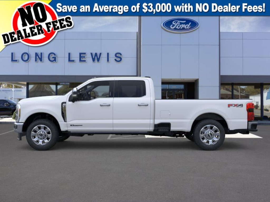 Star White Metallic Tri-Coat 2025 Ford F-350SD Lariat 4WD 10-Speed Automatic Power Stroke 6.7L V8 DI 32V OHV Turbodiesel 4WD, 190 Amp Alternator, 3.73 Axle Ratio, 4-Way Adjustable Headrests, 4-Wheel Disc Brakes, 410 Amp Dual Alternators, 5th Wheel/Gooseneck Hitch Prep Package, 6" Angular Bright Anodized Step Bars, 8 Speakers, ABS brakes, Adaptive Cruise Control w/Stop-and-Go, Adjustable pedals, Air Conditioning, Alloy wheels, AM/FM radio: SiriusXM with 360L, Auto High-beam Headlights, Auto-dimming Rear-View mirror, Automatic High Beam, Automatic temperature control, BLIS w/Cross-Traffic Alert, Brake assist, Bumpers: chrome, Chrome Door Handles, Chrome Exhaust Tip, Chrome Package, Compass, Delay-off headlights, Driver door bin, Driver vanity mirror, Dual AGM 68 AH Battery, Dual front impact airbags, Dual front side impact airbags, Electronic Stability Control, Electronic-Locking w/3.31 Axle Ratio, Emergency communication system: SYNC 4 911 Assist, Engine Block Heater, Flow-Through Console, Front & Rear Parking Sensors, Front anti-roll bar, Front Bucket Seats, Front Center Armrest, Front dual zone A/C, Front fog lights, Front reading lights, Fully automatic headlights, FX4 Off-Road Package, Garage door transmitter, Head-Up Display, Heated door mirrors, Heated front seats, Heated rear seats, Heated steering wheel, Hill Descent Control, Illuminated entry, Lane-Keeping System, Lariat Ultimate Package, LED Roof Clearance Lights, Low tire pressure warning, Memory seat, Navigation System, Off-Road Specifically Tuned Shock Absorbers, Outside temperature display, Overhead airbag, Overhead console, Panic alarm, Passenger door bin, Passenger vanity mirror, Pedal memory, Post-Collision Braking, Power door mirrors, Power driver seat, Power passenger seat, Power steering, Power windows, Power-Deployable Running Boards, Power-Sliding Rear-Window w/Defrost, Pre-Collision Assist, Privacy Glass, Pro Trailer Backup Assist, Pro Trailer Hitch Assist, Radio: B&O Sound System by Bang & Olufsen, Radio: B&O Unleashed Sound System by Bang & Olufsen, Rain sensing wipers, Rapid-Heat Supplemental Cab Heater, Rear Parking Sensors, Rear reading lights, Rear seat center armrest, Rear step bumper, Rear window defroster, Remote keyless entry, Security system, SiriusXM Radio w/360L, Speed control, Split folding rear seat, Steering wheel mounted audio controls, SYNC 4 w/Enhanced Voice Recognition, Tachometer, Tailgate Step & Handle, Telescoping steering wheel, Tilt steering wheel, Traction control, Trip computer, Turn signal indicator mirrors, Twin Panel Power Moonroof, Unique Chrome Mirror Caps, Unique FX4 Off-Road Box Decal, Upfitter Switches (6), Variably intermittent wipers, Ventilated front seats, Wheels: 18" Bright Machined & Carbonized Gray Alum, Wheels: 20" Chrome PVD Aluminum, 4WD.