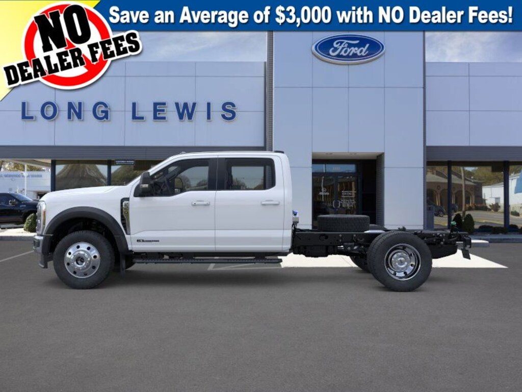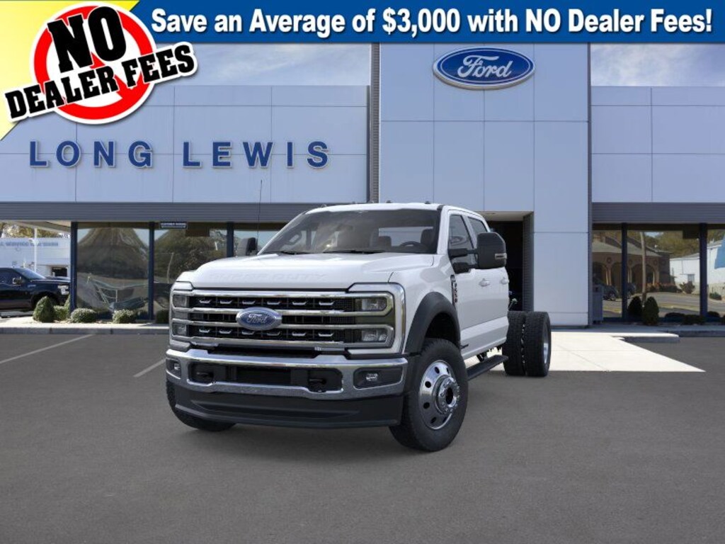 Oxford White 2025 Ford F-550SD Lariat DRW 4WD 10-Speed Automatic Power Stroke 6.7L V8 DI 32V OHV Turbodiesel 4WD, 4-Wheel Disc Brakes, 4.88 Axle Ratio, 410 Amp Dual Alternators, 6-Ton Hydraulic Jack, ABS brakes, Air Conditioning, Brake assist, Center High-Mounted Stop Lamp (CHMSL), Compass, Delay-off headlights, Dual front impact airbags, Dual front side impact airbags, Dual rear wheels, Emergency communication system: SYNC 4 911 Assist, Engine Block Heater, Extra Heavy-Service Suspension Package, Front anti-roll bar, Front License Plate Bracket, Front reading lights, Fully automatic headlights, GVWR: 18,000 lbs Payload Package, GVWR: 19,550 lb Payload Plus Upgrade Package 2, Heated door mirrors, High Capacity Trailer Tow Package, Illuminated entry, Limited Slip w/4.30 Axle Ratio, Outside temperature display, Overhead airbag, Overhead console, Panic alarm, Passenger vanity mirror, Platform Running Boards, Power door mirrors, Power steering, Power windows, Rapid-Heat Supplemental Cab Heater, Rear anti-roll bar, Rear reading lights, Remote keyless entry, Security system, Speed control, Split folding rear seat, Steering wheel mounted audio controls, Tachometer, Telescoping steering wheel, Tilt steering wheel, Traction control, Trip computer, Turn signal indicator mirrors, Variably intermittent wipers, 4WD.