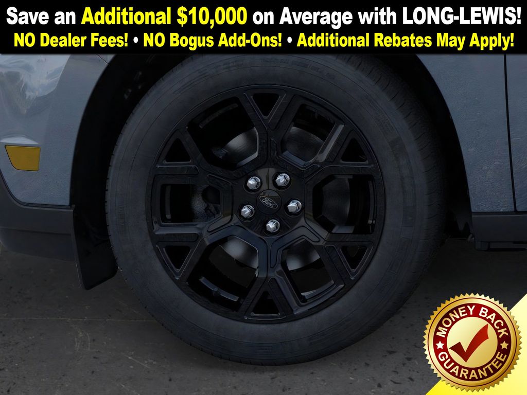 Black Appearance Package (Black Grille, Black Interior Accents, Black Painted Mirrors, Front & Back Black Edition Ford Logo, Unique Cloth Front Bucket Seats w/Black Appearance, and Wheels: 19" Black Painted Aluminum), Equipment Group 302A, Ford Co-Pilot360 1.0 (Auto High Beams, BLIS w/Cross-Traffic Alert, Cross Traffic Brake Assist, Evasive Steering Assist, Intersection Assist, Lane-Keeping System, Power Glass Manual-Folding Mirrors, Pre-Collision Assist w/Automatic Emergency Braking, Rear Parking Sensors, and Rear-View Camera), 2.91 Axle Ratio, 4-Wheel Disc Brakes, 6 Speakers, ABS brakes, Air Conditioning, Alloy wheels, AM/FM radio: SiriusXM with 360L, Apple CarPlay/Android Auto, Auto High-beam Headlights, Automatic temperature control, Brake assist, Bumpers: body-color, Compass, Delay-off headlights, Driver door bin, Driver vanity mirror, Dual front impact airbags, Dual front side impact airbags, Electronic Stability Control, Emergency communication system: SYNC 4 911 Assist, Exterior Parking Camera Rear, Four wheel independent suspension, Front anti-roll bar, Front Bucket Seats, Front Center Armrest, Front reading lights, Fully automatic headlights, Illuminated entry, Internet access capable: FordPass Connect 5G, Knee airbag, Low tire pressure warning, Occupant sensing airbag, Outside temperature display, Overhead airbag, Overhead console, Panic alarm, Passenger door bin, Passenger vanity mirror, Power door mirrors, Power steering, Power windows, Radio data system, Radio: AM/FM Stereo w/6 Speakers, Rear anti-roll bar, Rear seat center armrest, Rear step bumper, Remote keyless entry, Security system, SiriusXM w/360L, Speed control, Speed-sensing steering, Steering wheel mounted audio controls, SYNC 4 w/Enhanced Voice Recognition, Telescoping steering wheel, Tilt steering wheel, Traction control, Trip computer, Unique Cloth Front Bucket Seats, and Wheels: 17" Carbonized Gray Painted Aluminum.
