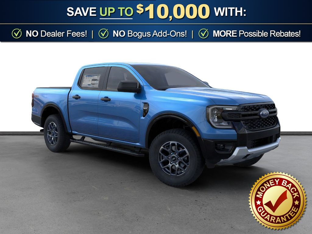 Velocity Blue Metallic 2025 Ford Ranger XLT FCT 4WD 10-Speed Automatic EcoBoost 2.3L I4 GTDi DOHC Turbocharged VCT 4WD, 4-Wheel Disc Brakes, 6 Speakers, ABS brakes, Air Conditioning, Alloy wheels, AM/FM radio: SiriusXM, AM/FM Stereo, Auto High-beam Headlights, Auto-dimming Rear-View mirror, Black Running Boards, Brake assist, Class IV Trailer Hitch Receiver, Cloth Front Bucket Seats, Compass, Delay-off headlights, Driver door bin, Driver vanity mirror, Dual front impact airbags, Dual front side impact airbags, Electronic Stability Control, Emergency communication system: SYNC 4 911 Assist, Front anti-roll bar, Front Bucket Seats, Front Center Armrest, Front fog lights, Front License Plate Bracket, Front reading lights, Front wheel independent suspension, Fully automatic headlights, FX4 Off-Road Box Decal, FX4 Off-Road Package, FX4 Selectable Drive Modes, Gray Painted Center Bar & Grille Surround, Gray Painted Front Fascia & Rear Bumper, Illuminated entry, Internet access capable: FordPass Connect 4G, Leather Shift Knob, Low tire pressure warning, Navigation system: Connected Navigation, Occupant sensing airbag, Off-Road Screen in Center Stack, Off-Road Tuned Shocks, Outside temperature display, Overhead airbag, Overhead console, Panic alarm, Passenger door bin, Passenger vanity mirror, Power door mirrors, Power steering, Power windows, Rear reading lights, Rear seat center armrest, Rear step bumper, Rear window defroster, Remote keyless entry, Security system, SiriusXM Satellite Radio, Speed control, Speed-sensing steering, Sport Appearance Package, Sport Box Decal, Steering wheel mounted audio controls, SYNC 4A w/Connected Navigation, Telescoping steering wheel, Tilt steering wheel, Traction control, Trail Control, Trailer Tow Package, Trip computer, Variably intermittent wipers, Voltmeter, Wheels: 17" Gray-Painted Aluminum, 4WD.