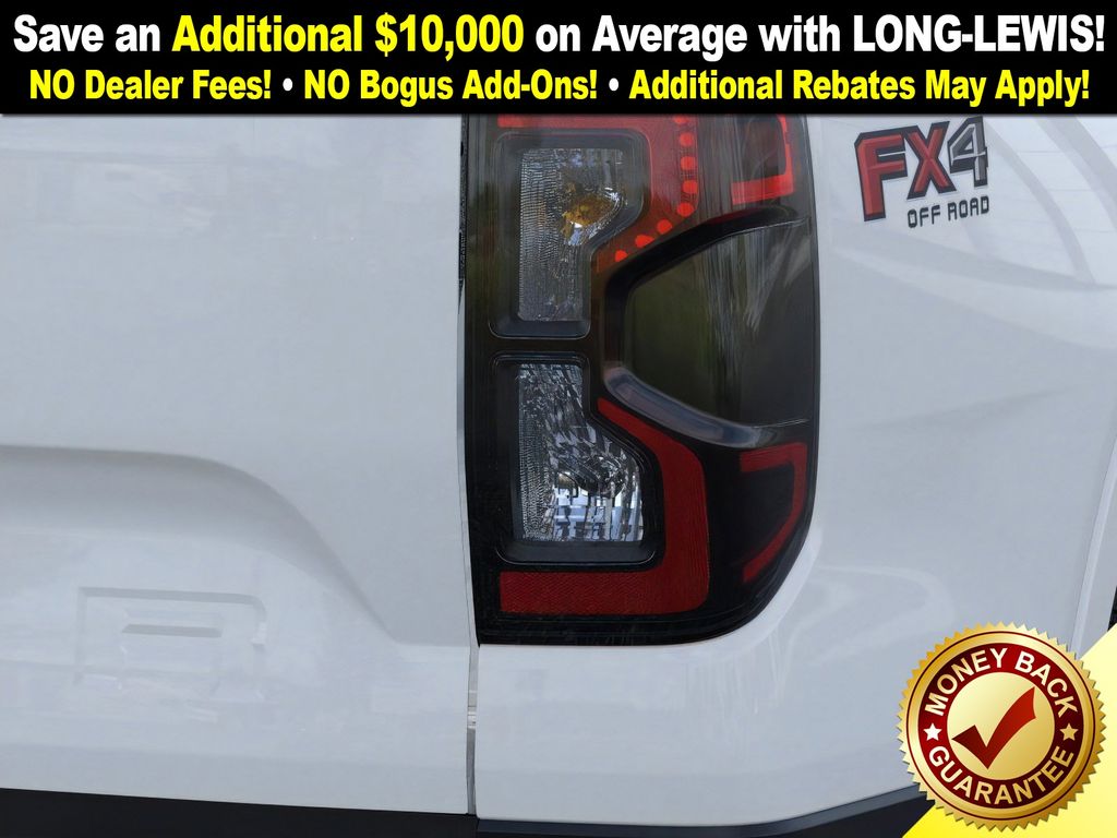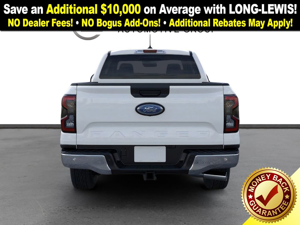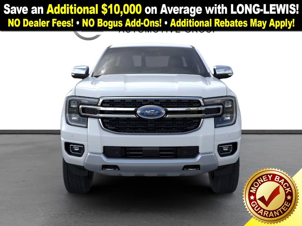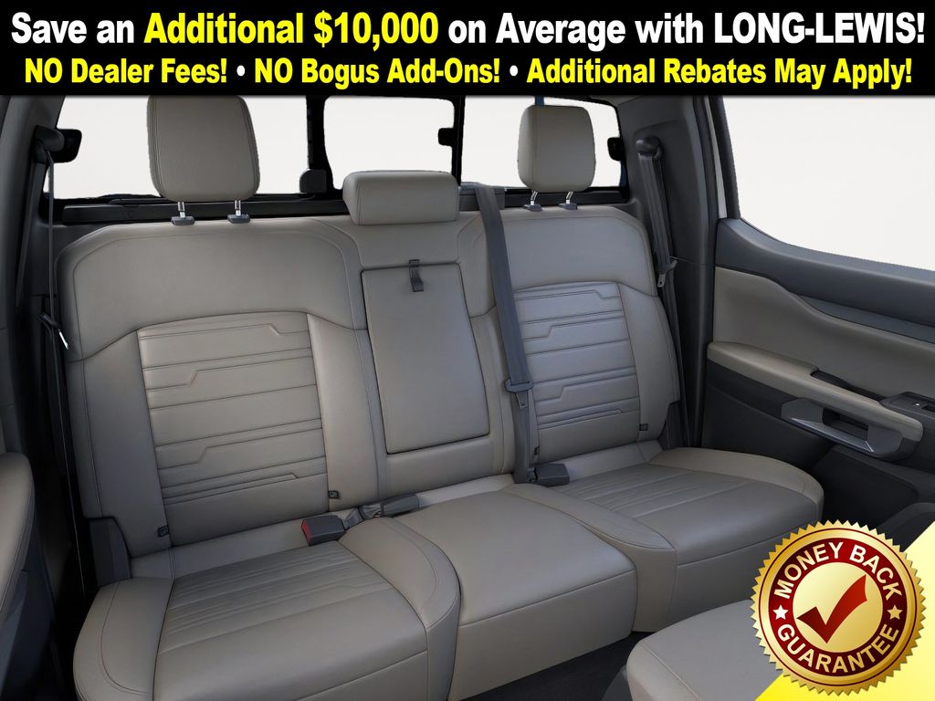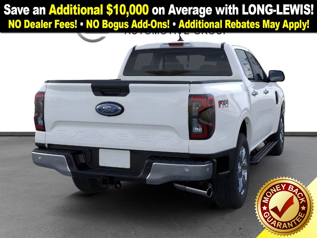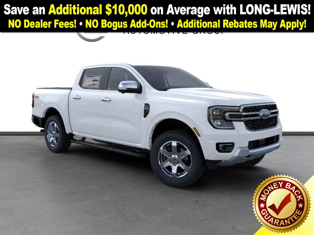 Oxford White 2025 Ford Ranger Lariat NFT 4WD 10-Speed Automatic EcoBoost 2.3L I4 GTDi DOHC Turbocharged VCT 4WD, 10 Speakers, 4-Wheel Disc Brakes, ABS brakes, Air Conditioning, Alloy wheels, AM/FM radio: SiriusXM, Auto High-beam Headlights, Auto-dimming Rear-View mirror, Automatic temperature control, Black Running Boards, Body Color Painted Front Fascia, Brake assist, Chrome Accent Package, Chrome Center Bar & Grille Surround, Chrome Rear Bumper, Class IV Trailer Hitch Receiver, Compass, Delay-off headlights, Driver door bin, Driver vanity mirror, Dual front impact airbags, Dual front side impact airbags, Electronic Stability Control, Emergency communication system: SYNC 4 911 Assist, Front anti-roll bar, Front Bucket Seats, Front Center Armrest, Front dual zone A/C, Front fog lights, Front License Plate Bracket, Front reading lights, Front wheel independent suspension, Fully automatic headlights, FX4 Off-Road Box Decal, FX4 Off-Road Package, FX4 Selectable Drive Modes, Garage door transmitter, Gray Painted Center Bar & Grille Surround, Gray Painted Front Fascia & Rear Bumper, Heated door mirrors, Heated front seats, Heated steering wheel, Illuminated entry, Integrated Box Side Step, Internet access capable: FordPass Connect 4G, Leather Shift Knob, Leather steering wheel, Leather-Trimmed Front Heated Bucket Seats, Low tire pressure warning, Memory seat, Navigation system: Connected Navigation, Occupant sensing airbag, Off-Road Screen in Center Stack, Off-Road Tuned Shocks, Outside temperature display, Overhead airbag, Overhead console, Painted Body-Color Wheel Lip Molding, Panic alarm, Passenger door bin, Passenger vanity mirror, Power door mirrors, Power driver seat, Power passenger seat, Power steering, Power windows, Radio: B&O Sound System by Bang & Olufsen, Rain sensing wipers, Rear reading lights, Rear seat center armrest, Rear step bumper, Rear window defroster, Remote keyless entry, Security system, SiriusXM Satellite Radio, Speed control, Speed-sensing steering, Sport Appearance Package, Sport Box Decal, Steering wheel mounted audio controls, SYNC 4A w/Connected Navigation, Telescoping steering wheel, Tilt steering wheel, Traction control, Trail Control, Trailer Tow Package, Trip computer, Turn signal indicator mirrors, Variably intermittent wipers, Voltmeter, Wheels: 18" Chrome-Like PVD, Wheels: 18" Machined Aluminum w/Dark Pockets, 4WD.