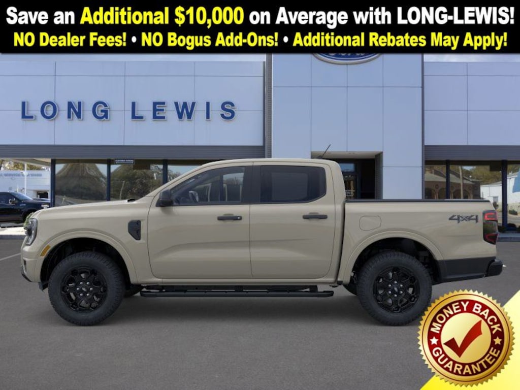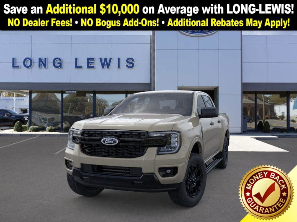 Desert Sand 2025 Ford Ranger XLT fctp RWD 10-Speed Automatic EcoBoost 2.3L I4 GTDi DOHC Turbocharged VCT 3.73 Axle Ratio, 4-Wheel Disc Brakes, 6 Speakers, ABS brakes, Air Conditioning, Alloy wheels, AM/FM radio: SiriusXM, AM/FM Stereo, Auto High-beam Headlights, Auto-dimming Rear-View mirror, Black Appearance Package, Black Center Bar & Surround Grille, Black Rear Bumper, Black Running Boards, Body-Color Painted Front Fascia, Brake assist, Class IV Trailer Hitch Receiver, Cloth Front Bucket Seats, Compass, Delay-off headlights, Driver door bin, Driver vanity mirror, Dual front impact airbags, Dual front side impact airbags, Electronic Stability Control, Electronic-Locking Rear Differential, Emergency communication system: SYNC 4 911 Assist, Front & Rear Black Ford Ovals, Front anti-roll bar, Front Bucket Seats, Front Center Armrest, Front fog lights, Front License Plate Bracket, Front reading lights, Front wheel independent suspension, Fully automatic headlights, Gray Painted Center Bar & Grille Surround, Gray Painted Front Fascia & Rear Bumper, Illuminated entry, Leather Shift Knob, Low tire pressure warning, Navigation system: Connected Navigation, Occupant sensing airbag, Outside temperature display, Overhead airbag, Overhead console, Painted Body-Color Wheel Lip Molding, Panic alarm, Passenger door bin, Passenger vanity mirror, Power door mirrors, Power steering, Power windows, Rear reading lights, Rear seat center armrest, Rear step bumper, Rear window defroster, Remote keyless entry, Security system, SiriusXM Satellite Radio, Speed control, Speed-sensing steering, Sport Appearance Package, Sport Box Decal, Steering wheel mounted audio controls, SYNC 4A w/Connected Navigation, Telescoping steering wheel, Tilt steering wheel, Traction control, Trailer Tow Package, Trip computer, Unique Carpet Mats, Variably intermittent wipers, Voltmeter, Wheels: 17" Gray-Painted Aluminum.