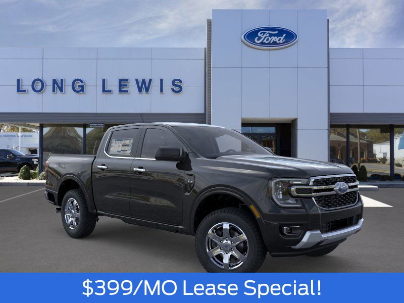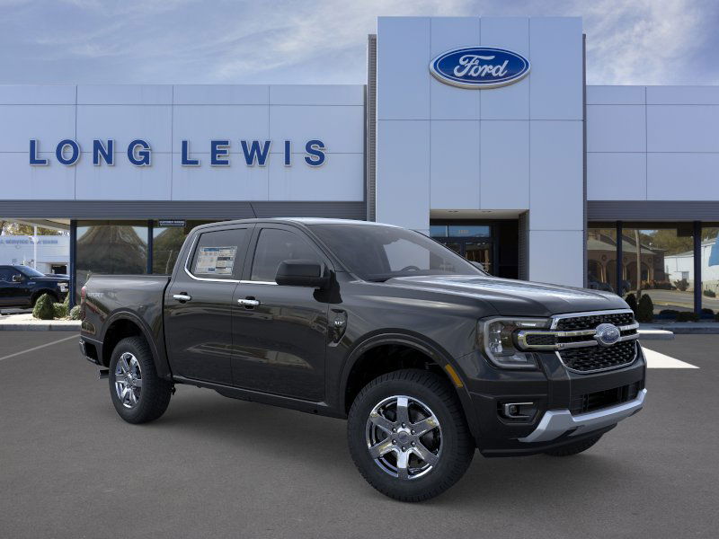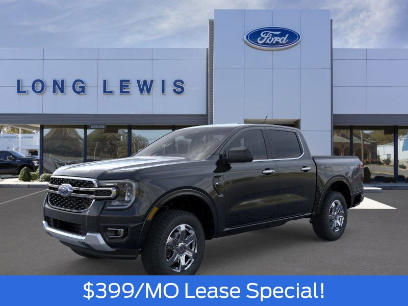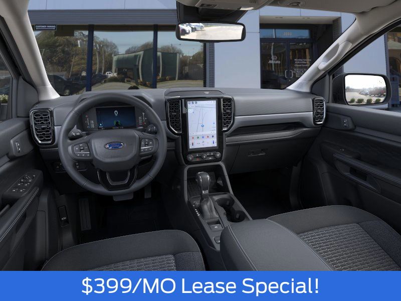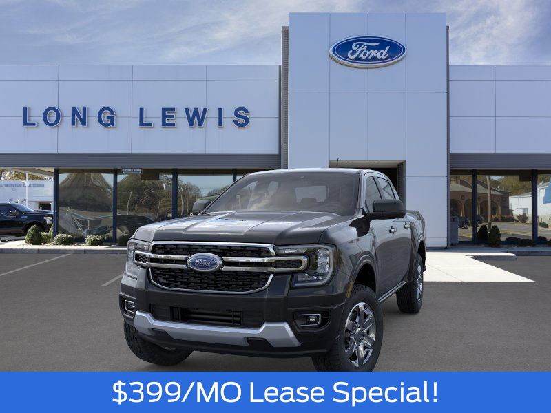 Shadow Black 2025 Ford Ranger XLT fctp RWD 10-Speed Automatic EcoBoost 2.3L I4 GTDi DOHC Turbocharged VCT 3.73 Axle Ratio, 4-Wheel Disc Brakes, 6 Speakers, ABS brakes, Air Conditioning, Alloy wheels, AM/FM radio: SiriusXM, AM/FM Stereo, Auto High-beam Headlights, Auto-dimming Rear-View mirror, Body Color Painted Front Fascia, Brake assist, Chrome Accent Package, Chrome Center Bar & Grille Surround, Chrome Rear Bumper, Cloth Front Bucket Seats, Compass, Delay-off headlights, Driver door bin, Driver vanity mirror, Dual front impact airbags, Dual front side impact airbags, Electronic Stability Control, Electronic-Locking Rear Differential, Emergency communication system: SYNC 4 911 Assist, Front anti-roll bar, Front Bucket Seats, Front Center Armrest, Front fog lights, Front License Plate Bracket, Front reading lights, Front wheel independent suspension, Fully automatic headlights, Gray Painted Center Bar & Grille Surround, Gray Painted Front Fascia & Rear Bumper, Illuminated entry, Integrated Box Side Step, Leather Shift Knob, Low tire pressure warning, Navigation system: Connected Navigation, Occupant sensing airbag, Outside temperature display, Overhead airbag, Overhead console, Painted Body-Color Wheel Lip Molding, Panic alarm, Passenger door bin, Passenger vanity mirror, Power door mirrors, Power steering, Power windows, Rear reading lights, Rear seat center armrest, Rear step bumper, Rear window defroster, Remote keyless entry, Security system, SiriusXM Satellite Radio, Speed control, Speed-sensing steering, Sport Appearance Package, Sport Box Decal, Steering wheel mounted audio controls, SYNC 4A w/Connected Navigation, Telescoping steering wheel, Tilt steering wheel, Traction control, Trip computer, Variably intermittent wipers, Voltmeter, Wheels: 17" Gray-Painted Aluminum, Wheels: 18" Chrome-Like PVD.