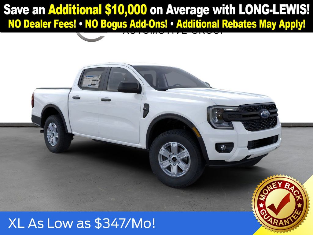 Oxford White 2025 Ford Ranger XL FCT RWD 10-Speed Automatic EcoBoost 2.3L I4 GTDi DOHC Turbocharged VCT 3.73 Axle Ratio, 4-Wheel Disc Brakes, 6 Speakers, ABS brakes, Air Conditioning, Alloy wheels, AM/FM radio, AM/FM Stereo, Auto High-beam Headlights, Brake assist, Bumpers: body-color, Cloth Front Bucket Seats, Compass, Delay-off headlights, Driver door bin, Dual front impact airbags, Dual front side impact airbags, Electronic Stability Control, Emergency communication system: SYNC 4 911 Assist, Front anti-roll bar, Front Bucket Seats, Front Center Armrest, Front fog lights, Front License Plate Bracket, Front reading lights, Front wheel independent suspension, Fully automatic headlights, Halogen Fog Lamps, Illuminated entry, LED Reflector Headlamps, Low tire pressure warning, Occupant sensing airbag, Outside temperature display, Overhead airbag, Overhead console, Panic alarm, Passenger door bin, Power door mirrors, Power steering, Power windows, Rear reading lights, Rear seat center armrest, Rear step bumper, Remote keyless entry, Security system, Speed control, Speed-sensing steering, Steering wheel mounted audio controls, STX Appearance Package, STX Fender Badge, SYNC 4A, Telescoping steering wheel, Tilt steering wheel, Traction control, Trip computer, Variably intermittent wipers, Voltmeter, Wheels: 17" Silver-Painted Aluminum.