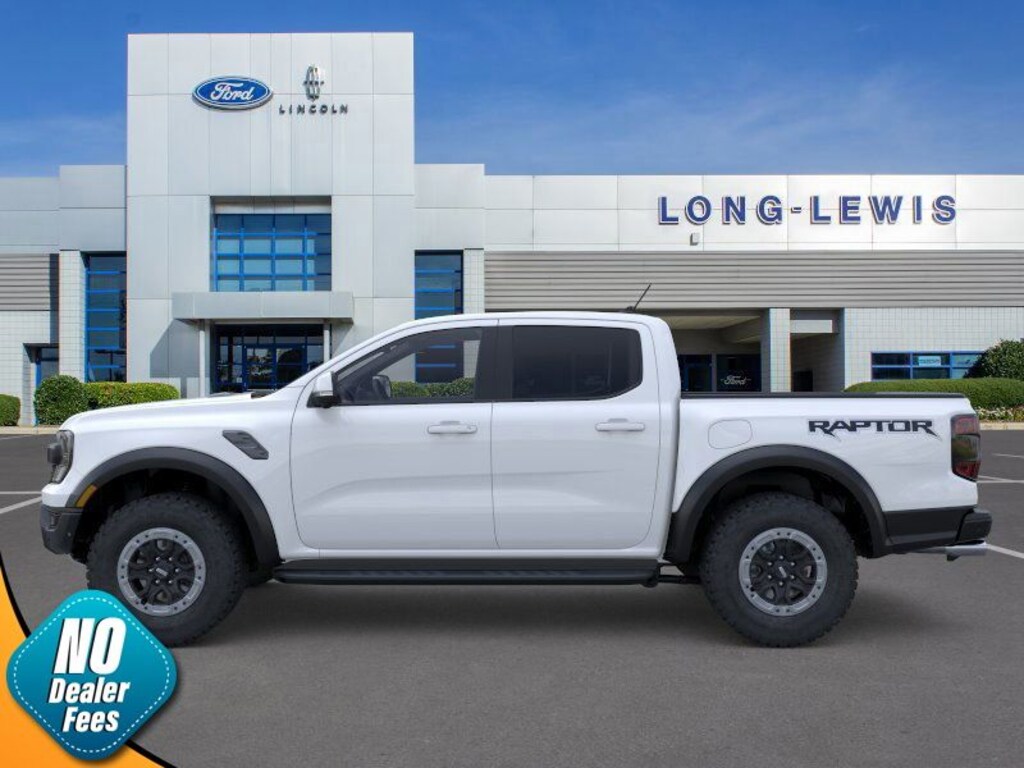 Oxford White 2025 Ford Ranger Raptor 4WD 10-Speed Automatic 3.0L EcoBoost V6 4WD, 10 Speakers, 4-Wheel Disc Brakes, 4.27 Axle Ratio, ABS brakes, Air Conditioning, Alloy wheels, AM/FM radio: SiriusXM, Auto High-beam Headlights, Auto-dimming Rear-View mirror, Automatic temperature control, Brake assist, Compass, Delay-off headlights, Driver door bin, Driver vanity mirror, Dual front impact airbags, Dual front side impact airbags, Electronic Stability Control, Emergency communication system: SYNC 4 911 Assist, Equipment Group 800A Standard, Front anti-roll bar, Front Bucket Seats, Front Center Armrest, Front dual zone A/C, Front fog lights, Front License Plate Bracket, Front reading lights, Front wheel independent suspension, Fully automatic headlights, Garage door transmitter, Heated door mirrors, Heated front seats, Heated steering wheel, Illuminated entry, Leather Shift Knob, Leather steering wheel, Leather-Trimmed Front Heated Bucket Seats, Low tire pressure warning, Memory seat, Navigation system: Connected Navigation, Occupant sensing airbag, Outside temperature display, Overhead airbag, Overhead console, Panic alarm, Passenger door bin, Passenger vanity mirror, Power door mirrors, Power driver seat, Power passenger seat, Power steering, Power windows, Radio: B&O Sound System by Bang & Olufsen, Rain sensing wipers, Rear reading lights, Rear seat center armrest, Rear step bumper, Rear window defroster, Remote keyless entry, Security system, SiriusXM Satellite Radio, Speed control, Speed-sensing steering, Steering wheel mounted audio controls, SYNC 4A, Telescoping steering wheel, Tilt steering wheel, Traction control, Trip computer, Turn signal indicator mirrors, Variably intermittent wipers, Voltmeter, Wheels: 17" Forged Beadlock Capable, Wheels: 17" Gray-Painted Aluminum, 4WD.