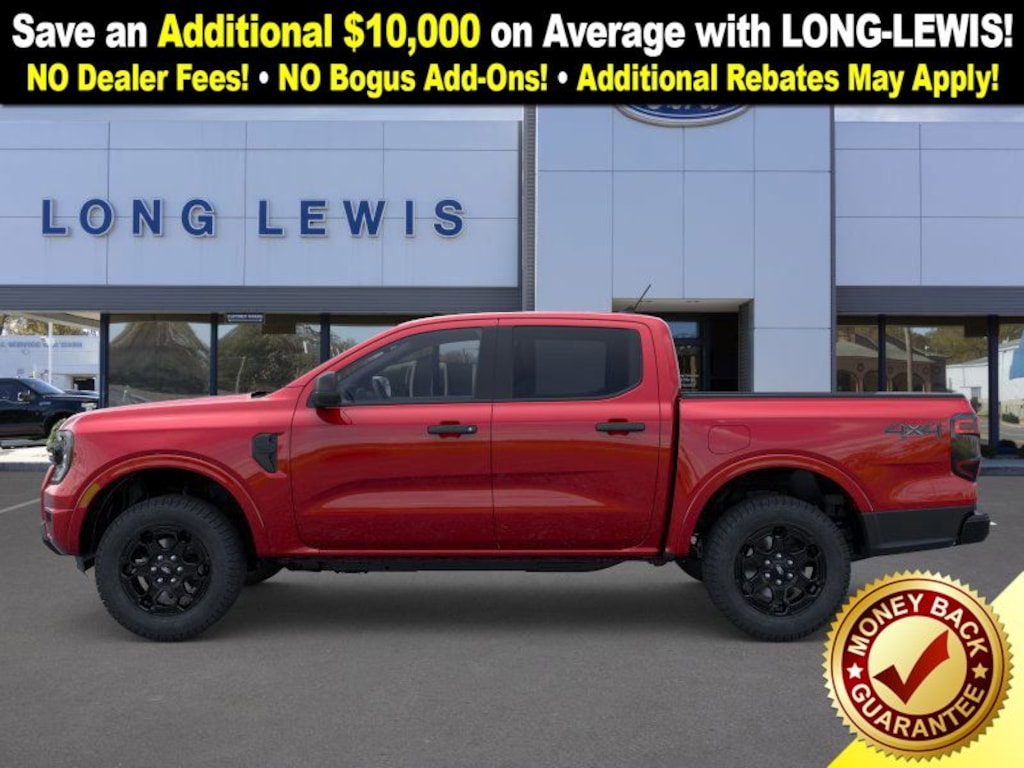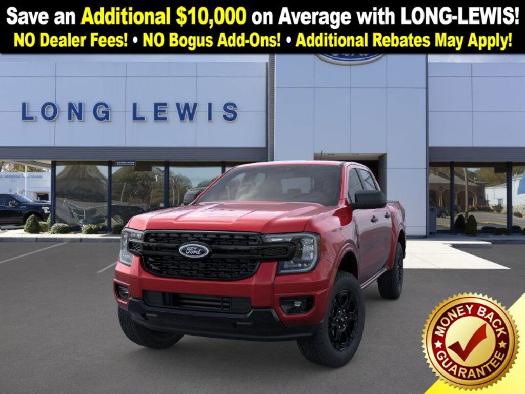 Ruby Red Metallic Tinted Clearcoat 2025 Ford Ranger XLT fctp RWD 10-Speed Automatic EcoBoost 2.3L I4 GTDi DOHC Turbocharged VCT 3.73 Axle Ratio, 4-Wheel Disc Brakes, 6 Speakers, ABS brakes, Air Conditioning, Alloy wheels, AM/FM radio: SiriusXM, AM/FM Stereo, Auto High-beam Headlights, Auto-dimming Rear-View mirror, Black Appearance Package, Black Center Bar & Surround Grille, Black Rear Bumper, Body-Color Painted Front Fascia, Brake assist, Class IV Trailer Hitch Receiver, Cloth Front Bucket Seats, Compass, Delay-off headlights, Driver door bin, Driver vanity mirror, Dual front impact airbags, Dual front side impact airbags, Electronic Stability Control, Emergency communication system: SYNC 4 911 Assist, Front & Rear Black Ford Ovals, Front anti-roll bar, Front Bucket Seats, Front Center Armrest, Front fog lights, Front License Plate Bracket, Front reading lights, Front wheel independent suspension, Fully automatic headlights, Gray Painted Center Bar & Grille Surround, Gray Painted Front Fascia & Rear Bumper, Illuminated entry, Leather Shift Knob, Low tire pressure warning, Navigation system: Connected Navigation, Occupant sensing airbag, Outside temperature display, Overhead airbag, Overhead console, Painted Body-Color Wheel Lip Molding, Panic alarm, Passenger door bin, Passenger vanity mirror, Power door mirrors, Power steering, Power windows, Rear reading lights, Rear seat center armrest, Rear step bumper, Rear window defroster, Remote keyless entry, Security system, SiriusXM Satellite Radio, Speed control, Speed-sensing steering, Sport Appearance Package, Sport Box Decal, Steering wheel mounted audio controls, SYNC 4A w/Connected Navigation, Telescoping steering wheel, Tilt steering wheel, Traction control, Trailer Tow Package, Trip computer, Unique Carpet Mats, Variably intermittent wipers, Voltmeter, Wheels: 17" Gray-Painted Aluminum.