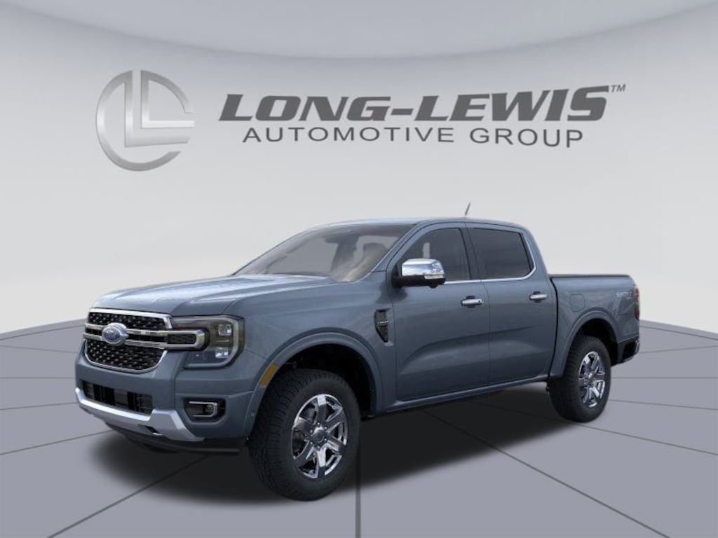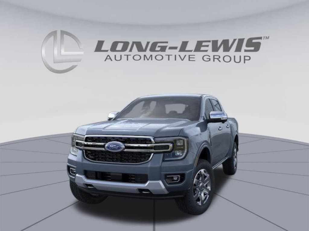 Azure Gray Metallic Tri-Coat 2025 Ford Ranger Lariat 4WD 10-Speed Automatic EcoBoost 2.3L I4 GTDi DOHC Turbocharged VCT 4WD, 10 Speakers, 3.73 Axle Ratio, 4-Wheel Disc Brakes, ABS brakes, Air Conditioning, Alloy wheels, AM/FM radio: SiriusXM, Auto High-beam Headlights, Auto-dimming Rear-View mirror, Automatic temperature control, Body Color Painted Front Fascia, Brake assist, Chrome Accent Package, Chrome Center Bar & Grille Surround, Chrome Rear Bumper, Class IV Trailer Hitch Receiver, Compass, Delay-off headlights, Driver door bin, Driver vanity mirror, Dual front impact airbags, Dual front side impact airbags, Electronic Stability Control, Emergency communication system: SYNC 4 911 Assist, Front anti-roll bar, Front Bucket Seats, Front Center Armrest, Front dual zone A/C, Front fog lights, Front License Plate Bracket, Front reading lights, Front wheel independent suspension, Fully automatic headlights, Garage door transmitter, Gray Painted Center Bar & Grille Surround, Gray Painted Front Fascia & Rear Bumper, Heated door mirrors, Heated front seats, Heated steering wheel, Illuminated entry, Integrated Box Side Step, Leather Shift Knob, Leather steering wheel, Leather-Trimmed Front Heated Bucket Seats, Low tire pressure warning, Memory seat, Navigation system: Connected Navigation, Occupant sensing airbag, Outside temperature display, Overhead airbag, Overhead console, Painted Body-Color Wheel Lip Molding, Panic alarm, Passenger door bin, Passenger vanity mirror, Power door mirrors, Power driver seat, Power passenger seat, Power steering, Power windows, Radio: B&O Sound System by Bang & Olufsen, Rain sensing wipers, Rear reading lights, Rear seat center armrest, Rear step bumper, Rear window defroster, Remote keyless entry, Security system, SiriusXM Satellite Radio, Speed control, Speed-sensing steering, Sport Appearance Package, Sport Box Decal, Steering wheel mounted audio controls, SYNC 4A w/Connected Navigation, Telescoping steering wheel, Tilt steering wheel, Traction control, Trailer Tow Package, Trip computer, Turn signal indicator mirrors, Variably intermittent wipers, Voltmeter, Wheels: 18" Chrome-Like PVD, Wheels: 18" Machined Aluminum w/Dark Pockets, 4WD.