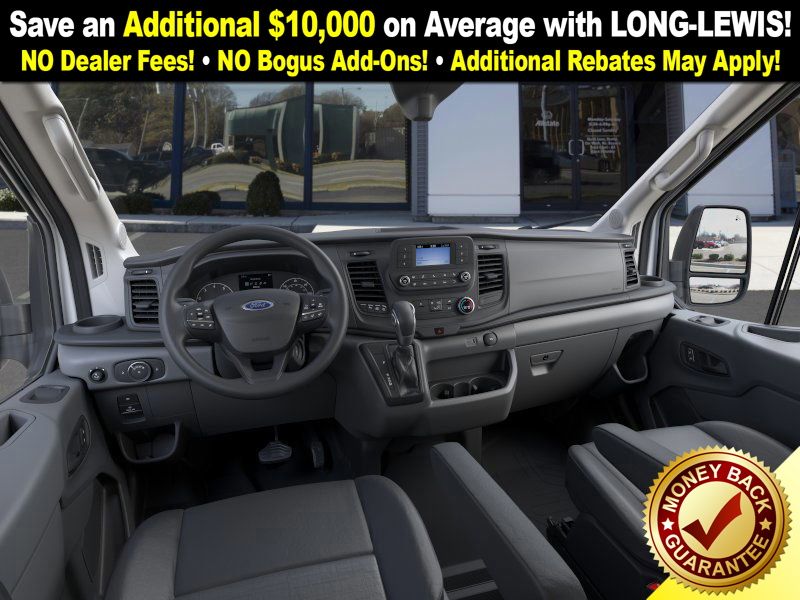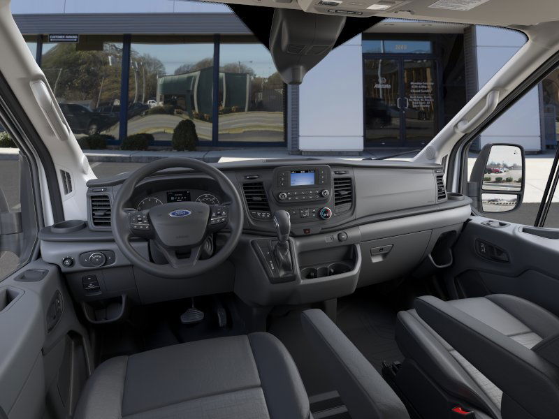 Oxford White 2025 Ford Transit-350 NFT RWD 10-Speed Automatic with Overdrive 3.5L V6 Flex Fuel 2 Additional Keys (4 Total), 4 Speakers, 4-Wheel Disc Brakes, 4.10 Limited-Slip Axle Ratio, ABS brakes, Air Conditioning, AM/FM radio, AM/FM Stereo, Auto High-beam Headlights, Brake assist, Dark Palazzo Gray Vinyl Bucket Seats, Delay-off headlights, Driver door bin, Driver's Seat Mounted Armrest, Dual front impact airbags, Dual front side impact airbags, Electronic Stability Control, Exterior Parking Camera Rear, Front & Rear Vinyl Floor Covering, Front anti-roll bar, Front Bucket Seats, Front License Plate Bracket, Front Overhead Shelf, Front reading lights, Front wheel independent suspension, Full Rear Compartment Lighting, Fully automatic headlights, Illuminated entry, Internet access capable: FordPass Connect 4G, Load Area Protection Package, Low tire pressure warning, Occupant sensing airbag, Order Code 101A, Overhead airbag, Panic alarm, Passenger cancellable airbag, Passenger door bin, Power door mirrors, Power steering, Power windows, Radio: AM/FM Stereo w/SYNC 3, Remote keyless entry, Reverse Sensing System, Short-Arm Manual-Folding Power Adjust Mirrors, Speed control, Steering wheel mounted audio controls, Tachometer, Telescoping steering wheel, Tilt steering wheel, Traction control, Variably intermittent wipers, Vinyl Front Bucket Seats, Wheels: 16" Silver Steel w/Black Hubcap.