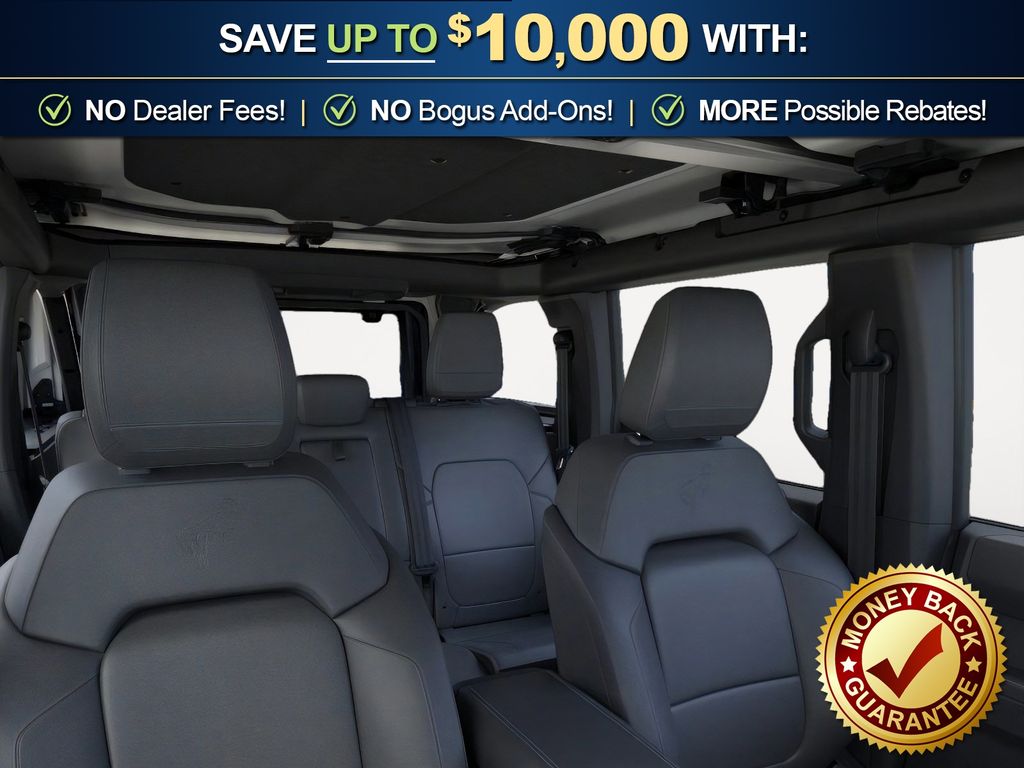 Ford Connectivity Package (1-Year Included), 18" Bright Machined Aluminum Wheels, 3.73 Axle Ratio, 4-Wheel Disc Brakes, 7 Speakers, ABS brakes, Air Conditioning, Alloy wheels, AM/FM radio: SiriusXM with 360L, AM/FM Stereo, Auto High-beam Headlights, Auto-dimming Rear-View mirror, Automatic temperature control, Brake assist, Compass, Connected Navigation, Delay-off headlights, Driver door bin, Driver vanity mirror, Dual front impact airbags, Dual front side impact airbags, Electronic Stability Control, Emergency communication system: 911 Assist, Exterior Parking Camera Rear, Front anti-roll bar, Front Bucket Seats, Front Center Armrest, Front dual zone A/C, Front fog lights, Front reading lights, Front wheel independent suspension, Fully automatic headlights, Hard Top Sound Deadening Headliner, Heated door mirrors, Heated front seats, Heated Leather-Trimmed/Vinyl Bucket Seats, Heated steering wheel, Illuminated entry, Integrated roll-over protection, Leather Shift Knob, Low tire pressure warning, Navigation system: Connected Navigation, Occupant sensing airbag, Outside temperature display, Overhead airbag, Overhead console, Panic alarm, Passenger door bin, Passenger vanity mirror, Power door mirrors, Power driver seat, Power passenger seat, Power steering, Power windows, Radio data system, Rear seat center armrest, Rear-Window Defroster and Washer, Remote keyless entry, Security system, Shadow Black-Painted Hard Top, SiriusXM with 360L, Speed control, Split folding rear seat, Steering wheel mounted audio controls, SYNC 4, Tachometer, Telescoping steering wheel, Tilt steering wheel, Traction control, Trip computer, Variably intermittent wipers, and Voltmeter. Price includes: $750 - Retail Customer Cash. Exp. 04/30/2026