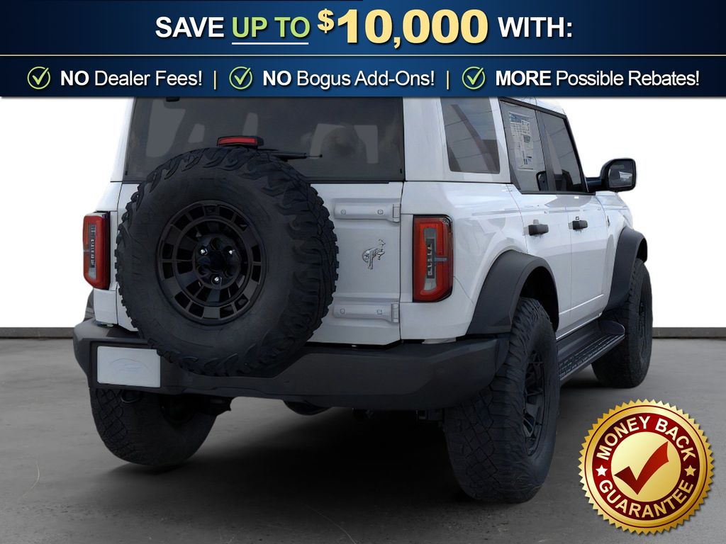 Ford Connectivity Package (1-Year Included), Sasquatch Package (High Clearance Fender Flares, High Clearance Suspension, Position-Sensitive Bilstein Shock Absorbers, and Wheels: 17" Matte Black Alloy), 18" Bright Machined Aluminum Wheels, 4-Wheel Disc Brakes, 7 Speakers, ABS brakes, Air Conditioning, Alloy wheels, AM/FM radio: SiriusXM with 360L, AM/FM Stereo, Auto High-beam Headlights, Auto-dimming Rear-View mirror, Automatic temperature control, Brake assist, Compass, Connected Navigation, Delay-off headlights, Driver door bin, Driver vanity mirror, Dual front impact airbags, Dual front side impact airbags, Electronic Stability Control, Emergency communication system: 911 Assist, Exterior Parking Camera Rear, Front anti-roll bar, Front Bucket Seats, Front Center Armrest, Front dual zone A/C, Front fog lights, Front reading lights, Front wheel independent suspension, Fully automatic headlights, Hard Top Sound Deadening Headliner, Heated door mirrors, Heated front seats, Heated Leather-Trimmed/Vinyl Bucket Seats, Heated steering wheel, Illuminated entry, Integrated roll-over protection, Leather Shift Knob, Low tire pressure warning, Navigation system: Connected Navigation, Occupant sensing airbag, Outside temperature display, Overhead airbag, Overhead console, Painted Hard Top, Panic alarm, Passenger door bin, Passenger vanity mirror, Power door mirrors, Power driver seat, Power passenger seat, Power steering, Power windows, Radio data system, Rear seat center armrest, Rear-Window Defroster and Washer, Remote keyless entry, Security system, SiriusXM with 360L, Speed control, Split folding rear seat, Steering wheel mounted audio controls, SYNC 4, Tachometer, Telescoping steering wheel, Tilt steering wheel, Traction control, Trip computer, Variably intermittent wipers, and Voltmeter. Price includes: $750 - Retail Customer Cash. Exp. 04/30/2026