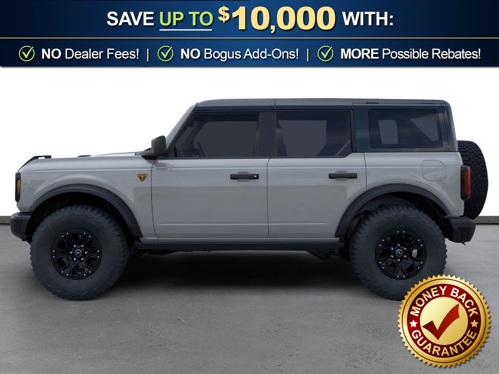 Dealer Discount of $2,062 off MSRP Avalanche Gray 2026 Ford Bronco Badlands NFT 4WD 10-Speed Automatic 2.7L EcoBoost V6 4-Wheel Disc Brakes, 7 Speakers, ABS brakes, Air Conditioning, Alloy wheels, AM/FM radio: SiriusXM with 360L, AM/FM Stereo, Auto High-beam Headlights, Auto-dimming Rear-View mirror, Black Appearance Package, Black Molded-in-Color Door Handles, Black Molded-in-Color Sideview Mirror Caps, Black-Painted Molded-in-Color Grille, Brake assist, Compass, Delay-off headlights, Driver door bin, Driver vanity mirror, Dual front impact airbags, Dual front side impact airbags, Electronic Stability Control, Emergency communication system: 911 Assist, Exterior Parking Camera Rear, Ford Connectivity Package (1-Year Included), Front anti-roll bar, Front Bucket Seats, Front Center Armrest, Front fog lights, Front License Plate Bracket, Front reading lights, Front Stabilizer Disconnect, Front wheel independent suspension, Fully automatic headlights, Hard Top Sound Deadening Headliner, Heated door mirrors, Heated front seats, High Clearance Suspension, Illuminated entry, Integrated roll-over protection, Leather Shift Knob, Low tire pressure warning, Marine Grade Vinyl Heated Bucket Seats, Occupant sensing airbag, Outside temperature display, Overhead airbag, Overhead console, Panic alarm, Passenger door bin, Passenger vanity mirror, Position-Sensitive Bilstein Shock Absorbers, Power door mirrors, Power steering, Power windows, Radio data system, Rear-Window Defroster and Washer, Remote keyless entry, Sasquatch Package, Security system, Shadow Black Painted Hard Top, SiriusXM with 360L, Speed control, Split folding rear seat, Steering wheel mounted audio controls, SYNC 4, Tachometer, Telescoping steering wheel, Tilt steering wheel, Traction control, Trip computer, Variably intermittent wipers, Voltmeter, Wheels: 17" Carbonized Gray-Painted Aluminum.