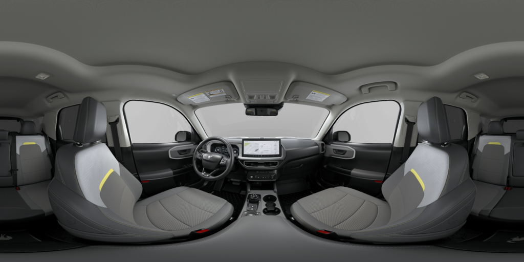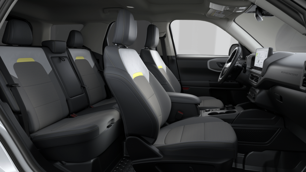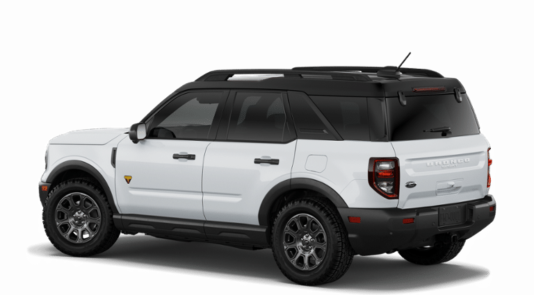 Badlands Tech Package (Connected Navigation (1-Year Included), Noise Reduction Module, and Radio: HD w/B&O Sound System by Bang & Olufsen), Ford Connectivity Package (1-Year Included), Internet access capable: 5G Modem - Ford Connectivity Package, 4-Wheel Disc Brakes, 6 Speakers, ABS brakes, Air Conditioning, Alloy wheels, AM/FM radio: SiriusXM with 360L, AM/FM Stereo, Apple CarPlay/Android Auto, Auto High-beam Headlights, Auto-dimming Rear-View mirror, Automatic temperature control, Brake assist, Compass, Delay-off headlights, Driver door bin, Driver vanity mirror, Dual front impact airbags, Dual front side impact airbags, Electronic Stability Control, Emergency communication system: SYNC 4 911 Assist, Exterior Parking Camera Rear, Four wheel independent suspension, Front anti-roll bar, Front Bucket Seats, Front Center Armrest, Front fog lights, Front reading lights, Fully automatic headlights, Heated door mirrors, Heated front seats, Heated steering wheel, Illuminated entry, Knee airbag, Leather-Trimmed Heated Front Sport Contour Bucket Seats, Low tire pressure warning, Memory seat, Occupant sensing airbag, Outside temperature display, Overhead airbag, Overhead console, Panic alarm, Passenger door bin, Passenger vanity mirror, Power door mirrors, Power driver seat, Power Moonroof, Power passenger seat, Power steering, Power windows, Radio data system, Rear anti-roll bar, Rear reading lights, Rear seat center armrest, Rear window defroster, Rear window wiper, Remote keyless entry, Security system, SiriusXM with 360L, Speed control, Speed-sensing steering, Speed-Sensitive Wipers, Split folding rear seat, Steering wheel mounted audio controls, SYNC 4 with Enhanced Voice Recognition, Tachometer, Telescoping steering wheel, Tilt steering wheel, Traction control, Trip computer, Variably intermittent wipers, and Wheels: 17" Matte Black-Painted Aluminum.
