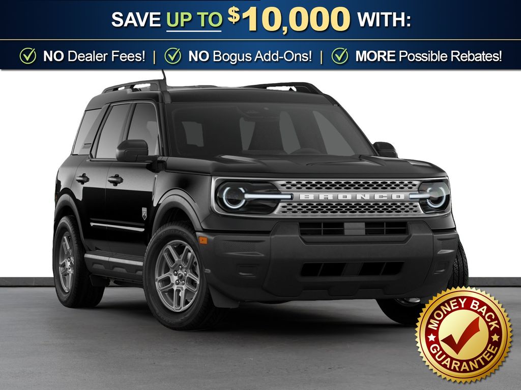 Dealer Discount of $702 off MSRP Shadow Black 2026 Ford Bronco Sport Big Bend NFT 4WD 8-Speed Automatic 1.5L EcoBoost 4-Wheel Disc Brakes, 6 Speakers, ABS brakes, Air Conditioning, Alloy wheels, AM/FM radio: SiriusXM with 360L, AM/FM Stereo, Apple CarPlay/Android Auto, Auto High-beam Headlights, Automatic temperature control, Brake assist, Cloth with Easy-to-Clean Front Bucket Seats, Compass, Delay-off headlights, Driver door bin, Driver vanity mirror, Dual front impact airbags, Dual front side impact airbags, Electronic Stability Control, Emergency communication system: SYNC 4 911 Assist, Exterior Parking Camera Rear, Ford Connectivity Package (1-Year Included), Four wheel independent suspension, Front anti-roll bar, Front Bucket Seats, Front Center Armrest, Front License Plate Bracket, Front reading lights, Fully automatic headlights, Heated door mirrors, Illuminated entry, Internet access capable: 5G Modem - Ford Connectivity Package, Knee airbag, Low tire pressure warning, Occupant sensing airbag, Outside temperature display, Overhead airbag, Overhead console, Panic alarm, Passenger door bin, Passenger vanity mirror, Power door mirrors, Power steering, Power windows, Radio data system, Rear anti-roll bar, Rear Parking Sensors, Rear reading lights, Rear seat center armrest, Rear window defroster, Rear window wiper, Remote keyless entry, Security system, SiriusXM with 360L, Speed control, Speed-sensing steering, Speed-Sensitive Wipers, Split folding rear seat, Steering wheel mounted audio controls, SYNC 4 with Enhanced Voice Recognition, Tachometer, Telescoping steering wheel, Tilt steering wheel, Traction control, Trip computer, Variably intermittent wipers, Wheels: 17" Carbonized Gray Painted Aluminum.