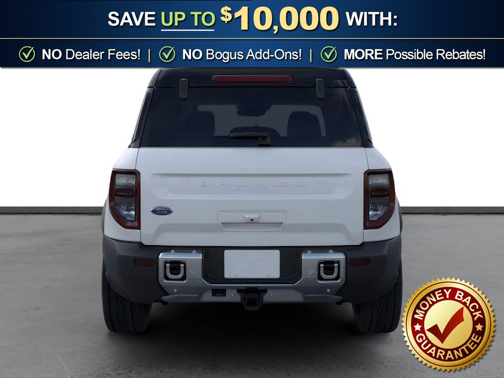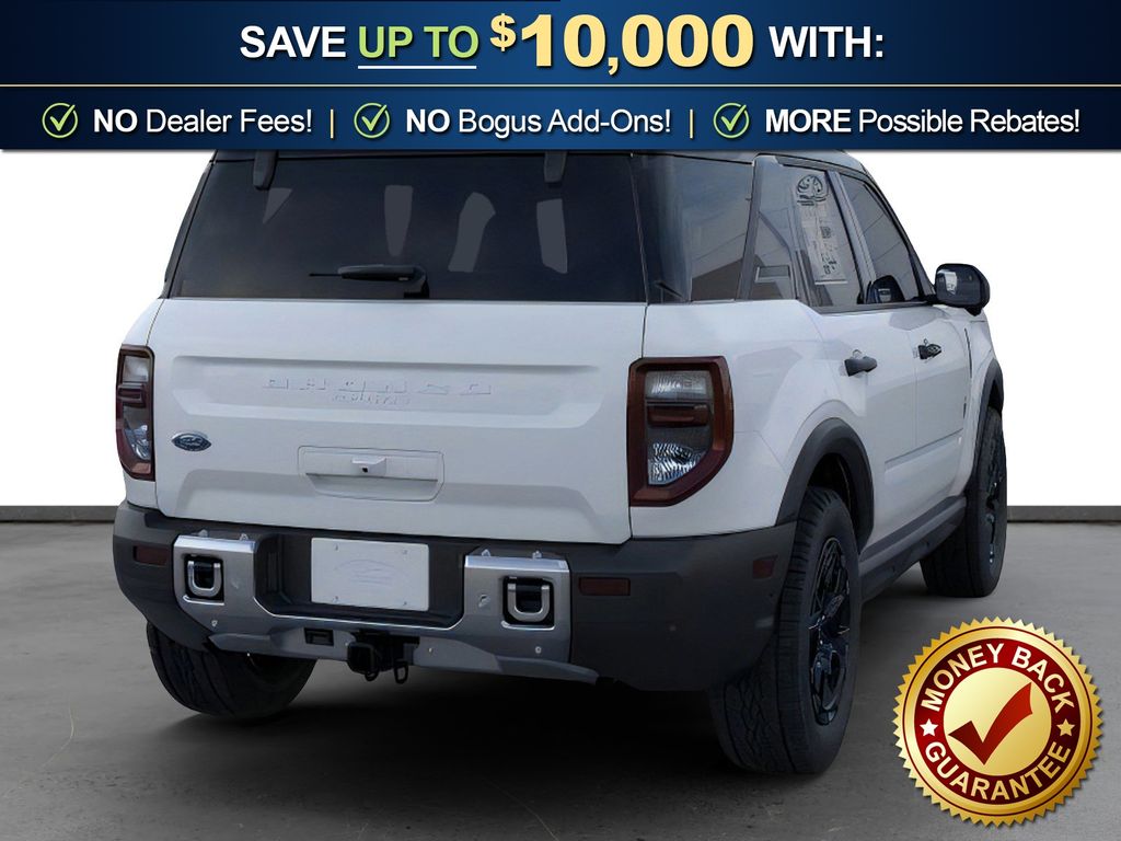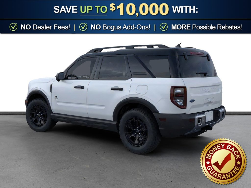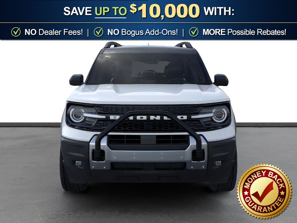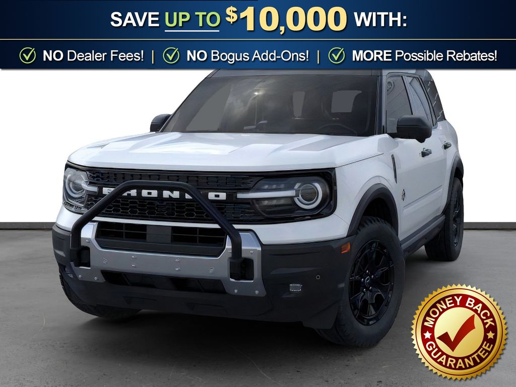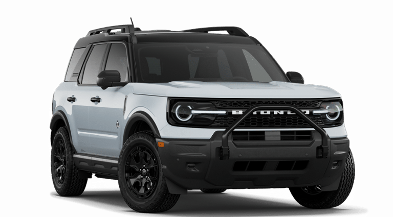 Space White Metallic 2026 Ford Bronco Sport Outer Banks FCT 4WD 8-Speed Automatic 1.5L EcoBoost 12.3" Cluster Display, 2 Rear D-Ring Recovery Hooks, 2nd Row Carpeted Seatback, 360-Degree Camera with Trail View, 4-Wheel Disc Brakes, 400W Pro Power Onboard, 6 Speakers, ABS brakes, Air Conditioning, Alloy wheels, AM/FM radio: SiriusXM with 360L, AM/FM Stereo, Apple CarPlay/Android Auto, Auto High-beam Headlights, Auto-dimming Rear-View mirror, Automatic temperature control, Auxiliary Switches and Wiring, Brake assist, Class II Trailer Tow Package with Trailer Sway Control, Compass, Connected Navigation (1-Year Included), Delay-off headlights, Driver door bin, Driver vanity mirror, Dual front impact airbags, Dual front side impact airbags, Electronic Stability Control, Emergency communication system: SYNC 4 911 Assist, Exterior Parking Camera Rear, Ford Connectivity Package (1-Year Included), Four wheel independent suspension, Front and Rear Black Bumpers with Steel Plates, Front anti-roll bar, Front Brush Guard with Integrated Recovery Hooks, Front Bucket Seats, Front Center Armrest, Front Driver/Passenger Seat Back Map Pockets, Front dual zone A/C, Front fog lights, Front License Plate Bracket, Front Parking Sensors, Front reading lights, Fully automatic headlights, Heated door mirrors, Heated front seats, Heated steering wheel, High Clearance Fender Flares, HOSS 2.0 Off-Road Suspension, Illuminated entry, Internet access capable: 5G Modem - Ford Connectivity Package, Knee airbag, Low tire pressure warning, Memory seat, Occupant sensing airbag, Outer Banks Tech Package+, Outside temperature display, Overhead airbag, Overhead console, Panic alarm, Passenger door bin, Passenger vanity mirror, Power door mirrors, Power driver seat, Power Moonroof, Power passenger seat, Power steering, Power windows, Radio data system, Radio: HD w/B&O Sound System by Bang & Olufsen, Rear anti-roll bar, Rear Parking Sensors, Rear reading lights, Rear seat center armrest, Rear window defroster, Rear window wiper, Remote keyless entry, Reverse Brake Assist, Rubberized Flooring, Sasquatch Outer Banks Package, Security system, SiriusXM with 360L, Speed control, Speed-sensing steering, Speed-Sensitive Wipers, Split folding rear seat, Steering wheel mounted audio controls, SYNC 4 with Enhanced Voice Recognition, Tachometer, Telescoping steering wheel, Tilt steering wheel, Traction control, Trail Control with Trail One-Pedal Drive, Trip computer, Variably intermittent wipers, Wheels: 17" Ebony Black-Painted Aluminum, Wheels: 18" Ebony Black.