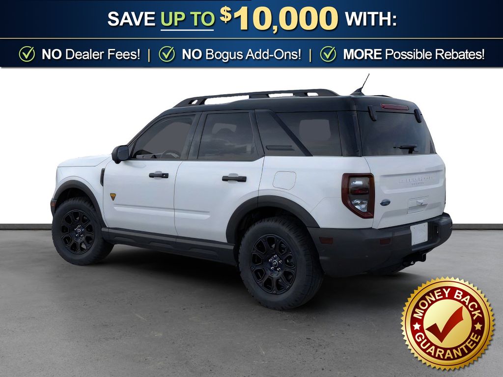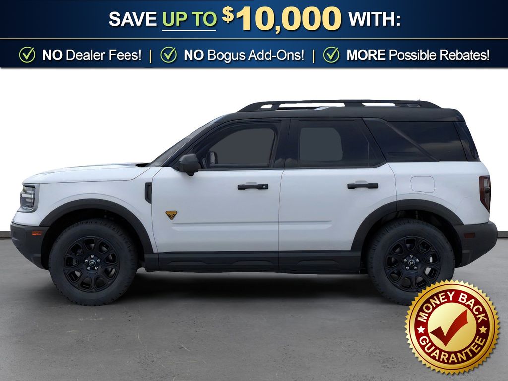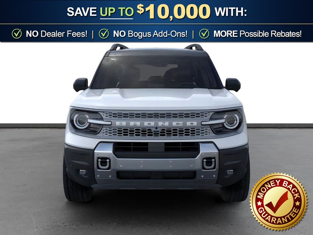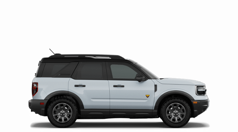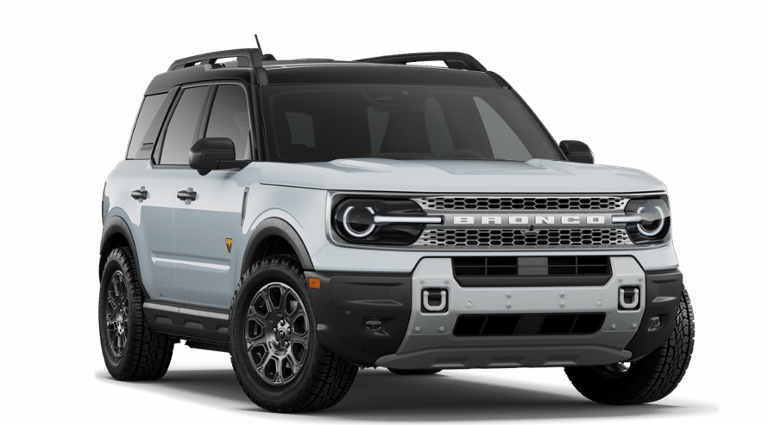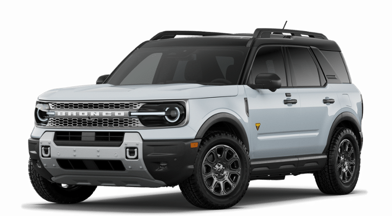 Space White Metallic 2026 Ford Bronco Sport Badlands NFT 4WD 8-Speed Automatic EcoBoost 2.0L I4 GTDi DOHC Turbocharged VCT 4-Wheel Disc Brakes, 6 Speakers, ABS brakes, Air Conditioning, Alloy wheels, AM/FM radio: SiriusXM with 360L, AM/FM Stereo, Apple CarPlay/Android Auto, Auto High-beam Headlights, Auto-dimming Rear-View mirror, Automatic temperature control, Badlands Tech Package, Brake assist, Compass, Connected Navigation (1-Year Included), Delay-off headlights, Driver door bin, Driver vanity mirror, Dual front impact airbags, Dual front side impact airbags, Electronic Stability Control, Emergency communication system: SYNC 4 911 Assist, Exterior Parking Camera Rear, Ford Connectivity Package (1-Year Included), Four wheel independent suspension, Front anti-roll bar, Front Bucket Seats, Front Center Armrest, Front fog lights, Front License Plate Bracket, Front reading lights, Fully automatic headlights, Heated door mirrors, Heated front seats, Heated steering wheel, Illuminated entry, Internet access capable: 5G Modem - Ford Connectivity Package, Knee airbag, Leather-Trimmed Heated Front Sport Contour Bucket Seats, Low tire pressure warning, Memory seat, Noise Reduction Module, Occupant sensing airbag, Outside temperature display, Overhead airbag, Overhead console, Panic alarm, Passenger door bin, Passenger vanity mirror, Power door mirrors, Power driver seat, Power Moonroof, Power passenger seat, Power steering, Power windows, Radio data system, Radio: HD w/B&O Sound System by Bang & Olufsen, Rear anti-roll bar, Rear reading lights, Rear seat center armrest, Rear window defroster, Rear window wiper, Remote keyless entry, Security system, SiriusXM with 360L, Speed control, Speed-sensing steering, Speed-Sensitive Wipers, Split folding rear seat, Steering wheel mounted audio controls, SYNC 4 with Enhanced Voice Recognition, Tachometer, Telescoping steering wheel, Tilt steering wheel, Traction control, Trip computer, Variably intermittent wipers, Wheels: 17" Matte Black-Painted Aluminum.