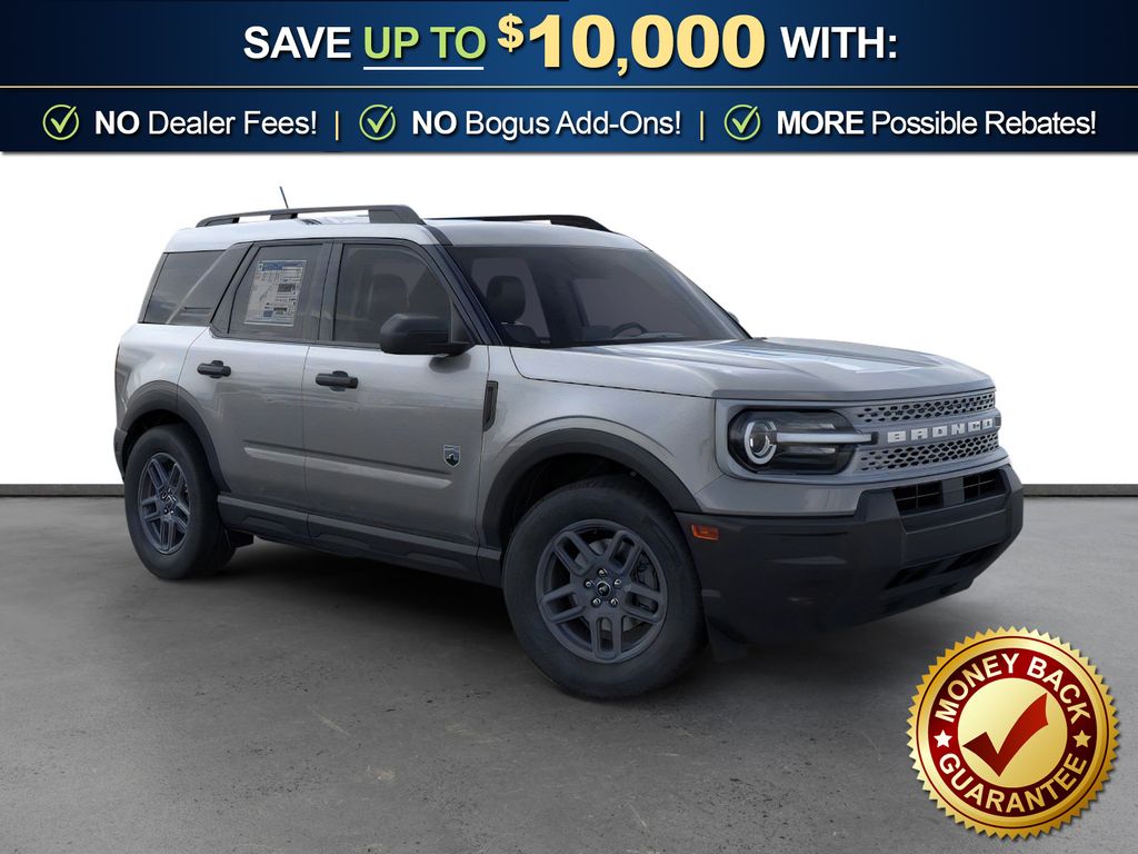 Carbonized Gray Metallic 2026 Ford Bronco Sport Big Bend NFT 4WD 8-Speed Automatic 1.5L EcoBoost 4-Wheel Disc Brakes, 6 Speakers, ABS brakes, Air Conditioning, Alloy wheels, AM/FM radio: SiriusXM with 360L, AM/FM Stereo, Apple CarPlay/Android Auto, Auto High-beam Headlights, Automatic temperature control, Brake assist, Cloth with Easy-to-Clean Front Bucket Seats, Compass, Delay-off headlights, Driver door bin, Driver vanity mirror, Dual front impact airbags, Dual front side impact airbags, Electronic Stability Control, Emergency communication system: SYNC 4 911 Assist, Exterior Parking Camera Rear, Ford Connectivity Package (1-Year Included), Four wheel independent suspension, Front anti-roll bar, Front Bucket Seats, Front Center Armrest, Front reading lights, Fully automatic headlights, Heated door mirrors, Illuminated entry, Internet access capable: 5G Modem - Ford Connectivity Package, Knee airbag, Low tire pressure warning, Occupant sensing airbag, Outside temperature display, Overhead airbag, Overhead console, Panic alarm, Passenger door bin, Passenger vanity mirror, Power door mirrors, Power steering, Power windows, Radio data system, Rear anti-roll bar, Rear Parking Sensors, Rear reading lights, Rear seat center armrest, Rear window defroster, Rear window wiper, Remote keyless entry, Security system, SiriusXM with 360L, Speed control, Speed-sensing steering, Speed-Sensitive Wipers, Split folding rear seat, Steering wheel mounted audio controls, SYNC 4 with Enhanced Voice Recognition, Tachometer, Telescoping steering wheel, Tilt steering wheel, Traction control, Trip computer, Variably intermittent wipers, Wheels: 17" Carbonized Gray Painted Aluminum.