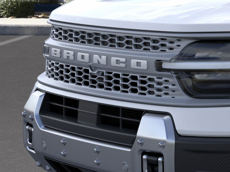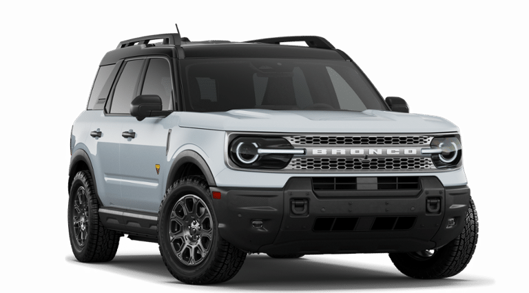 Space White Metallic 2026 Ford Bronco Sport Badlands NFT 4WD 8-Speed Automatic EcoBoost 2.0L I4 GTDi DOHC Turbocharged VCT 4-Wheel Disc Brakes, 6 Speakers, ABS brakes, Air Conditioning, Alloy wheels, AM/FM radio: SiriusXM with 360L, AM/FM Stereo, Apple CarPlay/Android Auto, Auto High-beam Headlights, Auto-dimming Rear-View mirror, Automatic temperature control, Badlands Tech Package, Brake assist, Compass, Connected Navigation (1-Year Included), Delay-off headlights, Driver door bin, Driver vanity mirror, Dual front impact airbags, Dual front side impact airbags, Electronic Stability Control, Emergency communication system: SYNC 4 911 Assist, Exterior Parking Camera Rear, Ford Connectivity Package (1-Year Included), Four wheel independent suspension, Front anti-roll bar, Front Bucket Seats, Front Center Armrest, Front fog lights, Front License Plate Bracket, Front reading lights, Fully automatic headlights, Heated door mirrors, Heated front seats, Heated steering wheel, Illuminated entry, Internet access capable: 5G Modem - Ford Connectivity Package, Knee airbag, Leather-Trimmed Heated Front Sport Contour Bucket Seats, Low tire pressure warning, Memory seat, Noise Reduction Module, Occupant sensing airbag, Outside temperature display, Overhead airbag, Overhead console, Panic alarm, Passenger door bin, Passenger vanity mirror, Power door mirrors, Power driver seat, Power passenger seat, Power steering, Power windows, Radio data system, Radio: HD w/B&O Sound System by Bang & Olufsen, Rear anti-roll bar, Rear reading lights, Rear seat center armrest, Rear window defroster, Rear window wiper, Remote keyless entry, Security system, SiriusXM with 360L, Speed control, Speed-sensing steering, Speed-Sensitive Wipers, Split folding rear seat, Steering wheel mounted audio controls, SYNC 4 with Enhanced Voice Recognition, Tachometer, Telescoping steering wheel, Tilt steering wheel, Traction control, Trip computer, Variably intermittent wipers, Wheels: 17" Matte Black-Painted Aluminum.