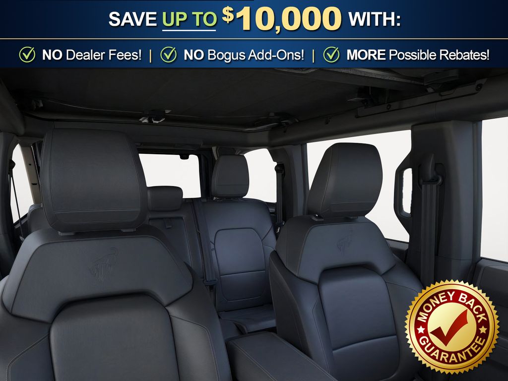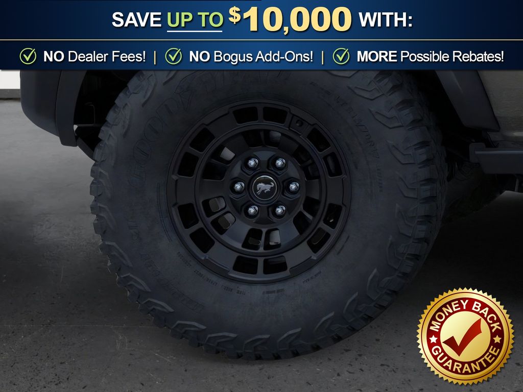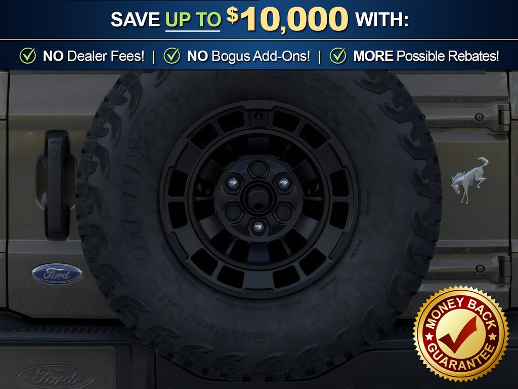 Ford Connectivity Package (1-Year Included), Sasquatch Package (Front Stabilizer Disconnect, High Clearance Suspension, Position-Sensitive Bilstein Shock Absorbers, and Wheels: 17" Matte Black Alloy), 4-Wheel Disc Brakes, 7 Speakers, ABS brakes, Air Conditioning, Alloy wheels, AM/FM radio: SiriusXM with 360L, AM/FM Stereo, Auto High-beam Headlights, Auto-dimming Rear-View mirror, Brake assist, Carbonized Gray Molded-in-Color Hard Top, Compass, Delay-off headlights, Driver door bin, Driver vanity mirror, Dual front impact airbags, Dual front side impact airbags, Electronic Stability Control, Emergency communication system: 911 Assist, Exterior Parking Camera Rear, Front anti-roll bar, Front Bucket Seats, Front Center Armrest, Front fog lights, Front reading lights, Front wheel independent suspension, Fully automatic headlights, Hard Top Sound Deadening Headliner, Heated door mirrors, Heated front seats, Illuminated entry, Integrated roll-over protection, Leather Shift Knob, Leather-Trimmed/Vinyl Bucket Seats, Low tire pressure warning, Marine Grade Vinyl Heated Bucket Seats, Occupant sensing airbag, Outside temperature display, Overhead airbag, Overhead console, Panic alarm, Passenger door bin, Passenger vanity mirror, Power door mirrors, Power steering, Power windows, Radio data system, Rear-Window Defroster and Washer, Remote keyless entry, Security system, SiriusXM with 360L, Speed control, Split folding rear seat, Steering wheel mounted audio controls, SYNC 4, Tachometer, Telescoping steering wheel, Tilt steering wheel, Traction control, Trip computer, Variably intermittent wipers, Voltmeter, and Wheels: 17" Carbonized Gray-Painted Aluminum.
