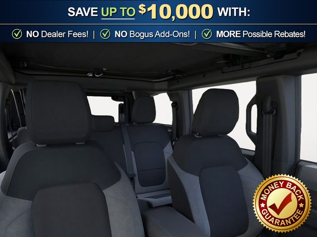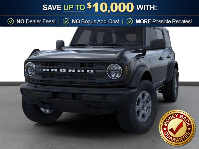 2026 Ford Bronco Big Bend NFT Shadow Black Big Bend NFT 4WD 10-Speed Automatic 2.3L EcoBoost I-4 4-Wheel Disc Brakes, 4.46 Axle Ratio, 7 Speakers, ABS brakes, Air Conditioning, Alloy wheels, AM/FM radio: SiriusXM with 360L, AM/FM Stereo, Auto High-beam Headlights, Brake assist, Carbonized Gray Molded-in-Color Hard Top, Cloth Bucket Seats, Compass, Delay-off headlights, Driver door bin, Driver vanity mirror, Dual front impact airbags, Dual front side impact airbags, Electronic Stability Control, Emergency communication system: 911 Assist, Exterior Parking Camera Rear, Ford Connectivity Package (1-Year Included), Front anti-roll bar, Front Bucket Seats, Front Center Armrest, Front reading lights, Front wheel independent suspension, Fully automatic headlights, Hard Top Sound Deadening Headliner, Heated door mirrors, Illuminated entry, Integrated roll-over protection, Low tire pressure warning, Occupant sensing airbag, Outside temperature display, Overhead airbag, Overhead console, Panic alarm, Passenger door bin, Passenger vanity mirror, Power door mirrors, Power steering, Power windows, Radio data system, Rear-Window Defroster and Washer, Remote keyless entry, Security system, SiriusXM with 360L, Speed control, Split folding rear seat, Steering wheel mounted audio controls, SYNC 4, Tachometer, Telescoping steering wheel, Tilt steering wheel, Traction control, Trip computer, Variably intermittent wipers, Wheels: 17" Carbonized Gray-Painted Aluminum.