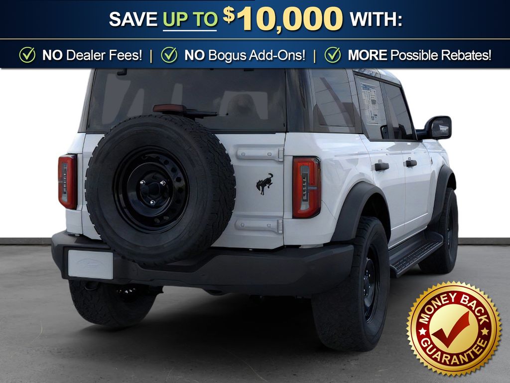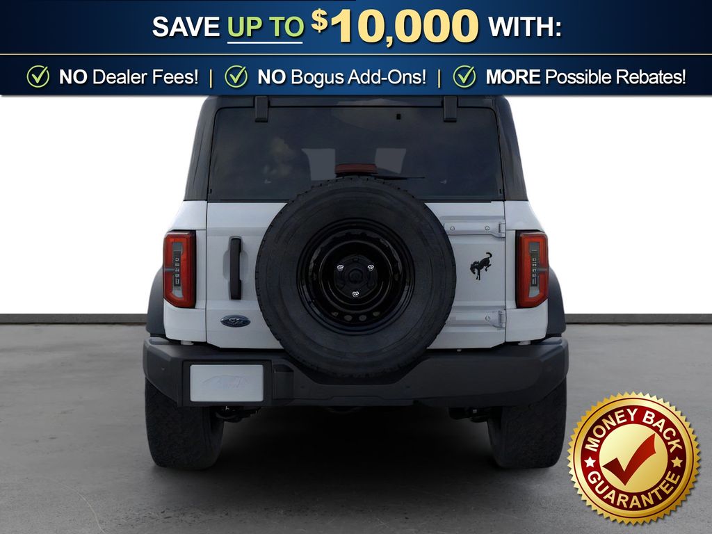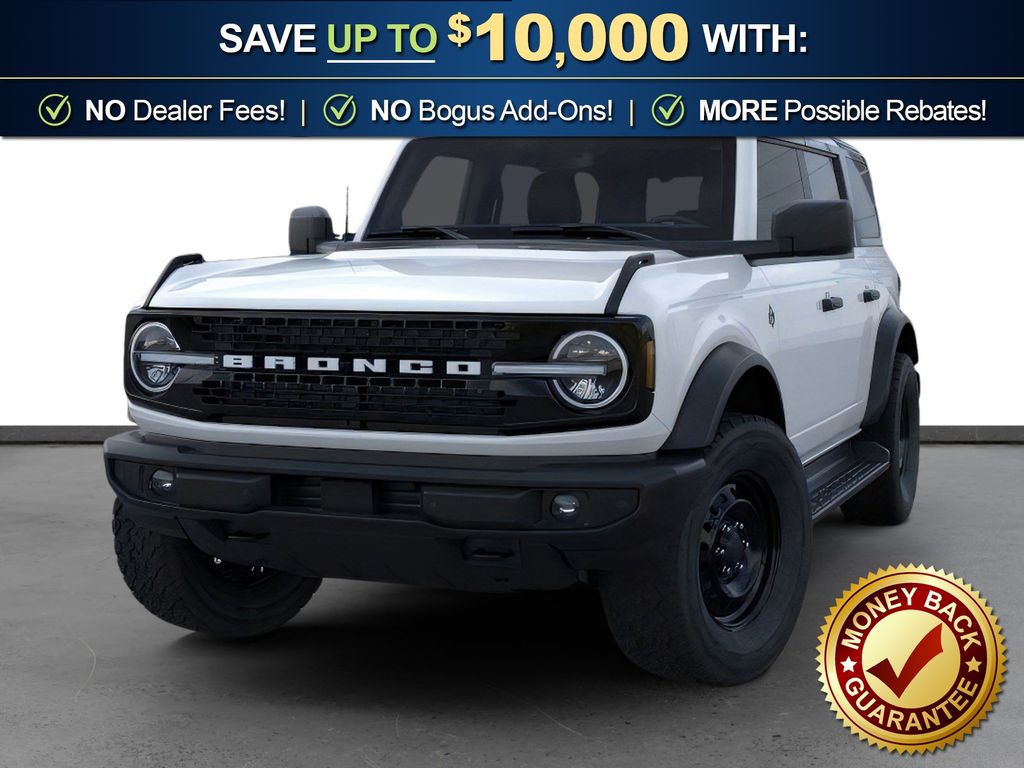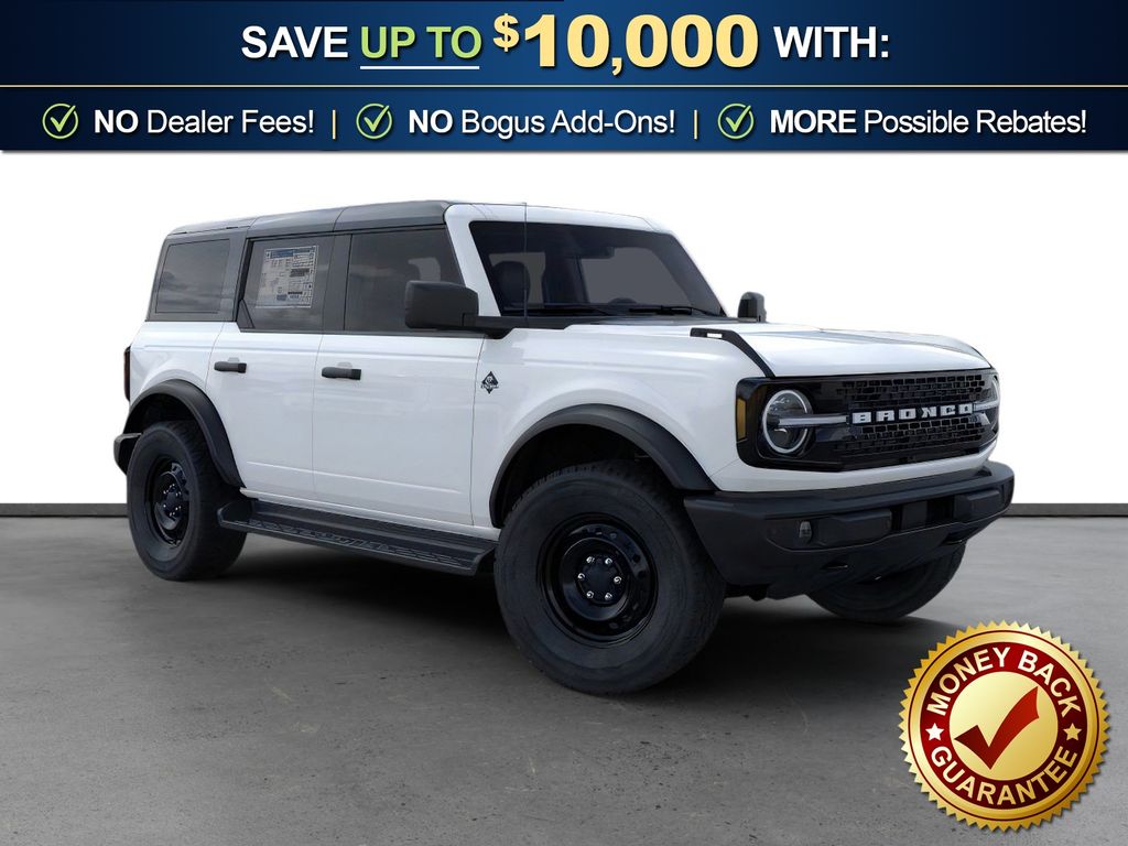 Dealer Discount of $1,595 off MSRP Oxford White 2026 Ford Bronco Outer Banks NFT 4WD 10-Speed Automatic 2.7L EcoBoost V6 18" Bright Machined Aluminum Wheels, 3.73 Axle Ratio, 4-Wheel Disc Brakes, 7 Speakers, ABS brakes, Air Conditioning, Alloy wheels, AM/FM radio: SiriusXM with 360L, AM/FM Stereo, Auto High-beam Headlights, Auto-dimming Rear-View mirror, Automatic temperature control, Brake assist, Compass, Connected Navigation, Delay-off headlights, Driver door bin, Driver vanity mirror, Dual front impact airbags, Dual front side impact airbags, Electronic Stability Control, Emergency communication system: 911 Assist, Exterior Parking Camera Rear, Ford Connectivity Package (1-Year Included), Front anti-roll bar, Front Bucket Seats, Front Center Armrest, Front dual zone A/C, Front fog lights, Front reading lights, Front wheel independent suspension, Fully automatic headlights, Heated door mirrors, Heated front seats, Heated Leather-Trimmed/Vinyl Bucket Seats, Heated steering wheel, Illuminated entry, Integrated roll-over protection, Leather Shift Knob, Low tire pressure warning, Navigation system: Connected Navigation, Occupant sensing airbag, Outside temperature display, Overhead airbag, Overhead console, Panic alarm, Passenger door bin, Passenger vanity mirror, Power door mirrors, Power driver seat, Power passenger seat, Power steering, Power windows, Radio data system, Rear seat center armrest, Remote keyless entry, Security system, SiriusXM with 360L, Speed control, Split folding rear seat, Steering wheel mounted audio controls, SYNC 4, Tachometer, Telescoping steering wheel, Tilt steering wheel, Traction control, Trip computer, Variably intermittent wipers, Voltmeter.
