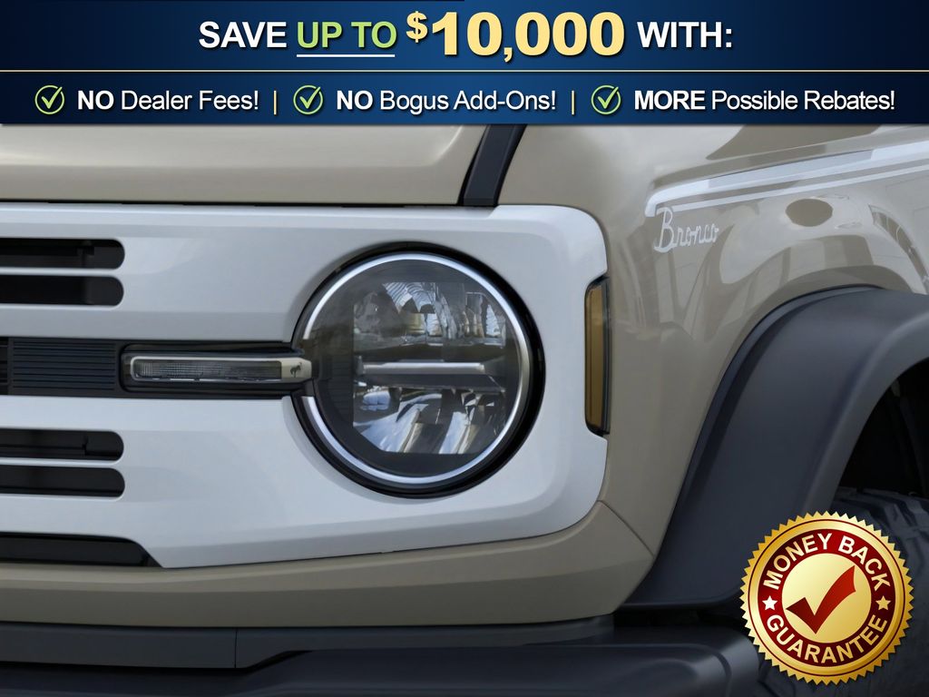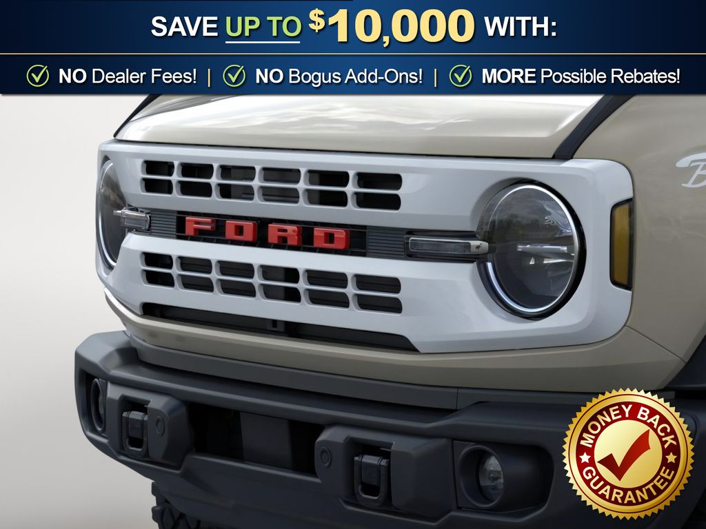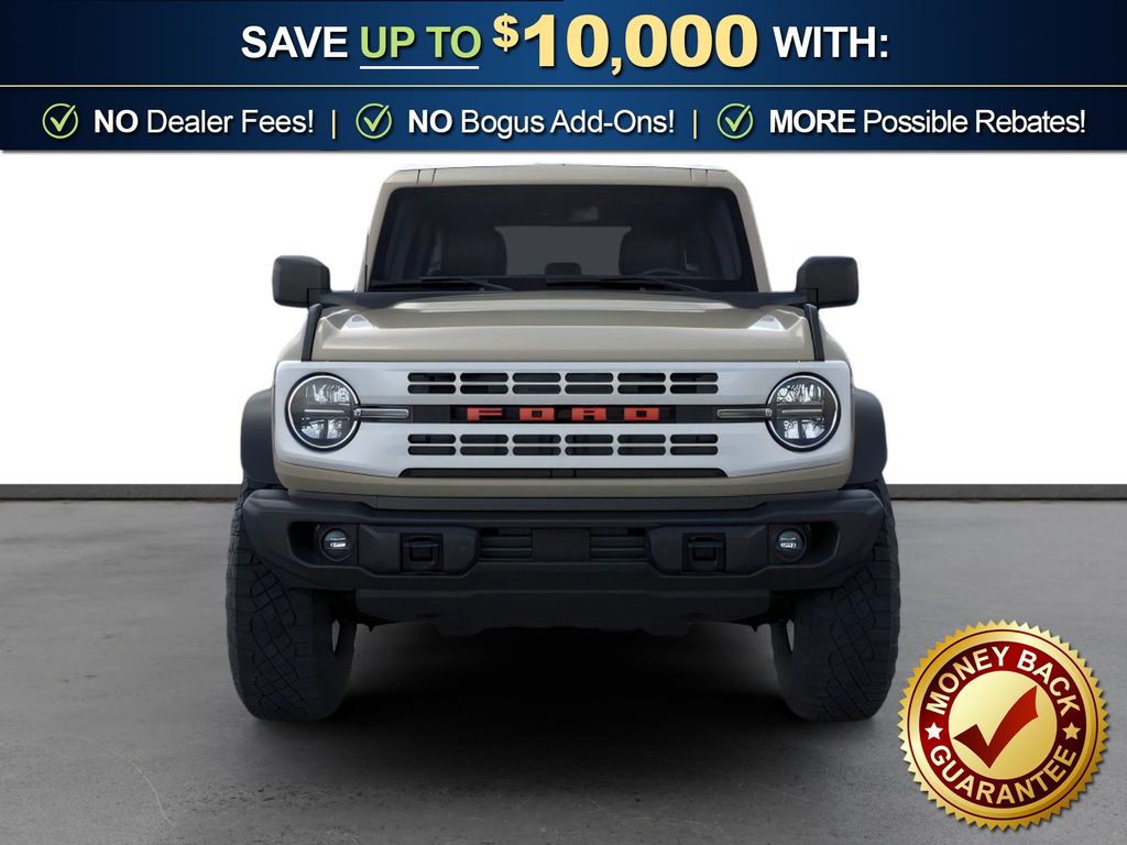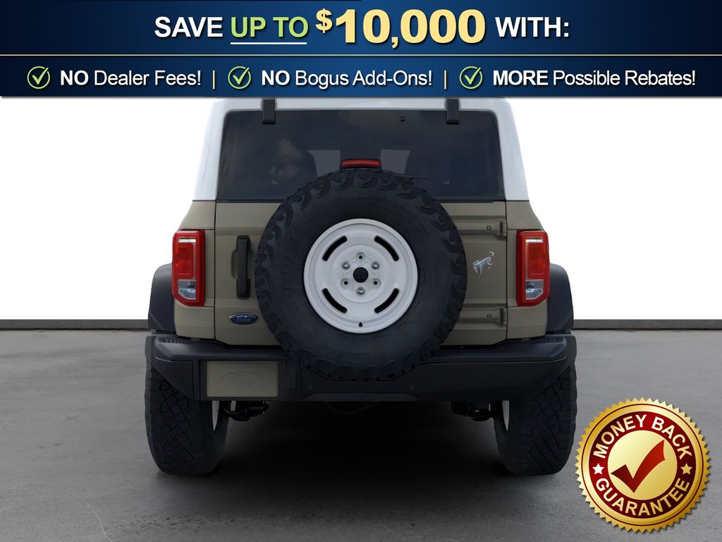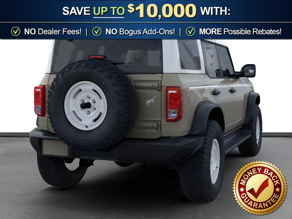 Dealer Discount of $917 off MSRP Desert Sand 2026 Ford Bronco Heritage Edition NFT 4WD 10-Speed Automatic 2.7L EcoBoost V6 4-Wheel Disc Brakes, 7 Speakers, ABS brakes, Air Conditioning, Alloy wheels, AM/FM radio: SiriusXM with 360L, AM/FM Stereo, Auto High-beam Headlights, Auto-dimming Rear-View mirror, Automatic temperature control, Brake assist, Compass, Connected Navigation, Convertible HardTop, Convertible roof lining, Delay-off headlights, Driver door bin, Driver vanity mirror, Dual front impact airbags, Dual front side impact airbags, Electronic Stability Control, Emergency communication system: 911 Assist, Exterior Parking Camera Rear, Ford Connectivity Package (1-Year Included), Front anti-roll bar, Front Bucket Seats, Front Center Armrest, Front dual zone A/C, Front fog lights, Front License Plate Bracket, Front reading lights, Front wheel independent suspension, Fully automatic headlights, Glass rear window, Heated door mirrors, Heated front seats, Heated steering wheel, Illuminated entry, Integrated roll-over protection, Low tire pressure warning, Navigation system: Connected Navigation, Occupant sensing airbag, Outside temperature display, Overhead airbag, Overhead console, Panic alarm, Passenger door bin, Passenger vanity mirror, Plaid Cloth Front Heated Bucket Seats, Power door mirrors, Power steering, Power windows, Radio data system, Rear window defroster, Rear window wiper, Remote keyless entry, Security system, SiriusXM with 360L, Speed control, Split folding rear seat, Steering wheel mounted audio controls, SYNC 4, Tachometer, Telescoping steering wheel, Tilt steering wheel, Traction control, Trip computer, Variably intermittent wipers, Wheels: 17" Unique White.
