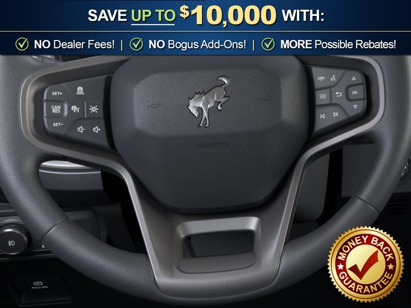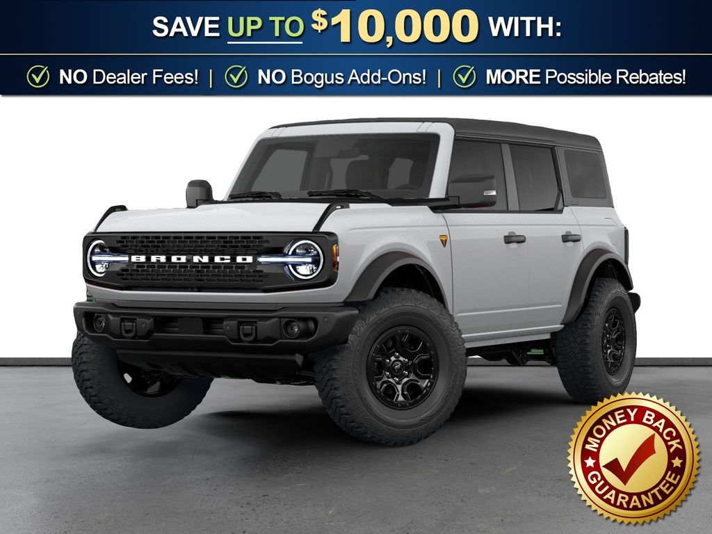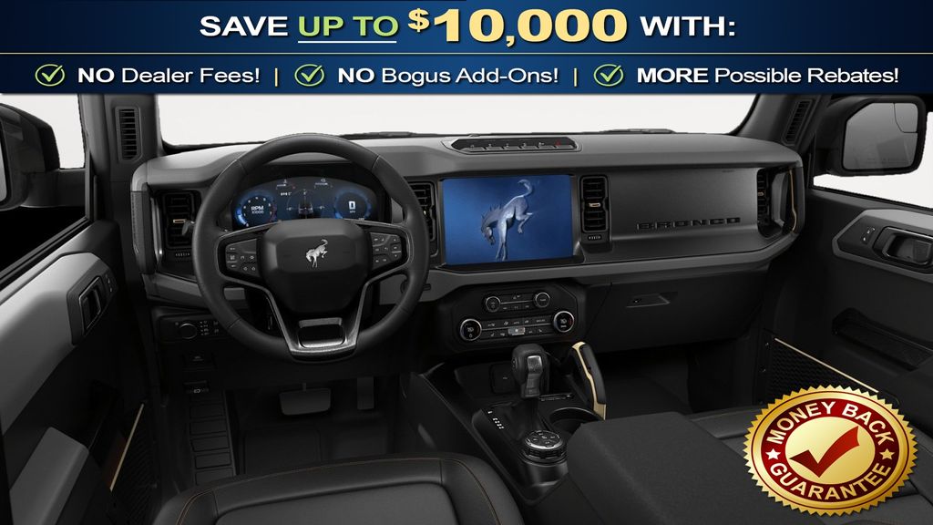 Black Appearance Package (Black Molded-in-Color Door Handles, Black Molded-in-Color Sideview Mirror Caps, and Black-Painted Molded-in-Color Grille), Ford Connectivity Package (1-Year Included), Sasquatch Package (Front Stabilizer Disconnect, High Clearance Suspension, and Position-Sensitive Bilstein Shock Absorbers), 4-Wheel Disc Brakes, 7 Speakers, ABS brakes, Air Conditioning, Alloy wheels, AM/FM radio: SiriusXM with 360L, AM/FM Stereo, Auto High-beam Headlights, Auto-dimming Rear-View mirror, Brake assist, Compass, Delay-off headlights, Driver door bin, Driver vanity mirror, Dual front impact airbags, Dual front side impact airbags, Electronic Stability Control, Emergency communication system: 911 Assist, Exterior Parking Camera Rear, Front anti-roll bar, Front Bucket Seats, Front Center Armrest, Front fog lights, Front reading lights, Front wheel independent suspension, Fully automatic headlights, Hard Top Sound Deadening Headliner, Heated door mirrors, Heated front seats, Illuminated entry, Integrated roll-over protection, Leather Shift Knob, Low tire pressure warning, Marine Grade Vinyl Heated Bucket Seats, Occupant sensing airbag, Outside temperature display, Overhead airbag, Overhead console, Panic alarm, Passenger door bin, Passenger vanity mirror, Power door mirrors, Power steering, Power windows, Radio data system, Rear-Window Defroster and Washer, Remote keyless entry, Security system, Shadow Black Painted Hard Top, SiriusXM with 360L, Speed control, Split folding rear seat, Steering wheel mounted audio controls, SYNC 4, Tachometer, Telescoping steering wheel, Tilt steering wheel, Traction control, Trip computer, Variably intermittent wipers, Voltmeter, and Wheels: 17" Carbonized Gray-Painted Aluminum. Price includes: $750 - Retail Bonus Cash. Exp. 04/30/2026 $750 - Retail Customer Cash. Exp. 04/30/2026