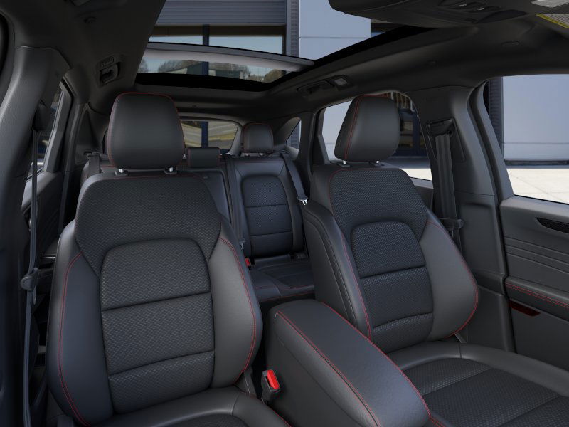 Space Silver Metallic 2026 Ford Escape ST-Line NFT FWD 8-Speed Automatic 1.5L EcoBoost 3.81 Axle Ratio, 4-Way Manual Front Passenger Seat, 4-Wheel Disc Brakes, 6 Speakers, 8-Way Power Driver Seat, ABS brakes, Adaptive Cruise Control with Stop-and-Go, Air Conditioning, Alloy wheels, AM/FM radio: SiriusXM 360L, Auto High-beam Headlights, Automatic temperature control, Black Roof-Rack Side Rails, Brake assist, Bumpers: body-color, Cold Weather Package, Compass, Connected Navigation (1-Year Included), Delay-off headlights, Digital Rear View Camera, Driver door bin, Driver vanity mirror, Dual front impact airbags, Dual front side impact airbags, Electronic Stability Control, Emergency communication system: SYNC 4 911 Assist, Evasive Steering Assist, Ford App, Ford Co-Pilot360 Assist+, Four wheel independent suspension, Front anti-roll bar, Front Bucket Seats, Front Center Armrest, Front dual zone A/C, Front License Plate Bracket, Front reading lights, Fully automatic headlights, Heated Front Row Seats, Heated Sideview Mirrors, Heated Steering Wheel, Heated steering wheel, Illuminated entry, Intersection Assist, Knee airbag, Low tire pressure warning, Occupant sensing airbag, Outside temperature display, Overhead airbag, Overhead console, Panic alarm, Panoramic Vista Roof, Partial Vinyl/Cloth Front Sport Contour Bucket Seats with Red Stitching, Passenger door bin, Passenger vanity mirror, Power door mirrors, Power driver seat, Power Liftgate, Power steering, Power windows, Predictive Speed Assist, Radio data system, Radio: AM/FM Stereo with SiriusXM 360L, Rear anti-roll bar, Rear Parking Sensor, Rear reading lights, Rear seat center armrest, Rear window defroster, Rear window wiper, Remote keyless entry, Remote Starter System, Speed control, Speed-sensing steering, Speed-Sensitive Wipers, Split folding rear seat, Spoiler, Sport steering wheel, Steering wheel mounted audio controls, SYNC 4, SYNC 4 with Enhanced Voice Recognition, Tachometer, Tech Pack #1, Telescoping steering wheel, Tilt steering wheel, Traction control, Trip computer, Variably intermittent wipers, Wheels: 18" Rock Metallic Painted Aluminum.