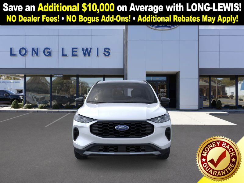 space silver metallic 2026 Ford Escape ST-Line NFT FWD 8-Speed Automatic 1.5L EcoBoost 3.81 Axle Ratio, 4-Way Manual Front Passenger Seat, 4-Wheel Disc Brakes, 6 Speakers, 8-Way Power Driver Seat, ABS brakes, Adaptive Cruise Control with Stop-and-Go, Air Conditioning, Alloy wheels, AM/FM radio: SiriusXM 360L, Auto High-beam Headlights, Automatic temperature control, Black Roof-Rack Side Rails, Brake assist, Bumpers: body-color, Cold Weather Package, Compass, Connected Navigation (1-Year Included), Delay-off headlights, Digital Rear View Camera, Driver door bin, Driver vanity mirror, Dual front impact airbags, Dual front side impact airbags, Electronic Stability Control, Emergency communication system: SYNC 4 911 Assist, Evasive Steering Assist, Ford App, Ford Co-Pilot360 Assist+, Four wheel independent suspension, Front anti-roll bar, Front Bucket Seats, Front Center Armrest, Front dual zone A/C, Front License Plate Bracket, Front reading lights, Fully automatic headlights, Heated Front Row Seats, Heated Sideview Mirrors, Heated Steering Wheel, Heated steering wheel, Illuminated entry, Intersection Assist, Knee airbag, Low tire pressure warning, Occupant sensing airbag, Outside temperature display, Overhead airbag, Overhead console, Panic alarm, Panoramic Vista Roof, Partial Vinyl/Cloth Front Sport Contour Bucket Seats with Red Stitching, Passenger door bin, Passenger vanity mirror, Power door mirrors, Power driver seat, Power Liftgate, Power steering, Power windows, Predictive Speed Assist, Radio data system, Radio: AM/FM Stereo with SiriusXM 360L, Rear anti-roll bar, Rear Parking Sensor, Rear reading lights, Rear seat center armrest, Rear window defroster, Rear window wiper, Remote keyless entry, Remote Starter System, Speed control, Speed-sensing steering, Speed-Sensitive Wipers, Split folding rear seat, Spoiler, Sport steering wheel, Steering wheel mounted audio controls, SYNC 4, SYNC 4 with Enhanced Voice Recognition, Tachometer, Tech Pack #1, Telescoping steering wheel, Tilt steering wheel, Traction control, Trip computer, Variably intermittent wipers, Wheels: 18" Rock Metallic Painted Aluminum.