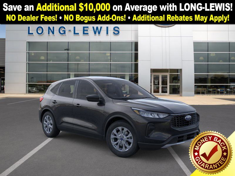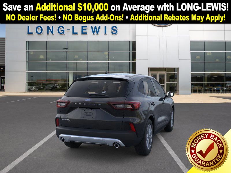 agate black metallic 2026 Ford Escape Active NFT FWD 8-Speed Automatic 1.5L EcoBoost 3.81 Axle Ratio, 4-Way Manual Front Passenger Seat, 4-Wheel Disc Brakes, 6 Speakers, 6-Way Manual Driver Seat, ABS brakes, Air Conditioning, Alloy wheels, AM/FM radio: SiriusXM 360L, Auto High-beam Headlights, Automatic temperature control, Brake assist, Bumpers: body-color, Compass, Delay-off headlights, Driver door bin, Driver vanity mirror, Dual front impact airbags, Dual front side impact airbags, Electronic Stability Control, Emergency communication system: SYNC 4 911 Assist, Ford App, Four wheel independent suspension, Front anti-roll bar, Front Bucket Seats, Front Center Armrest, Front dual zone A/C, Front reading lights, Fully automatic headlights, Illuminated entry, Knee airbag, Low tire pressure warning, Occupant sensing airbag, Outside temperature display, Overhead airbag, Overhead console, Panic alarm, Passenger door bin, Passenger vanity mirror, Power door mirrors, Power Liftgate, Power steering, Power windows, Radio data system, Radio: AM/FM Stereo with SiriusXM 360L, Rear anti-roll bar, Rear reading lights, Rear seat center armrest, Rear window defroster, Rear window wiper, Remote keyless entry, Speed control, Speed-sensing steering, Speed-Sensitive Wipers, Split folding rear seat, Spoiler, Steering wheel mounted audio controls, SYNC 4, Tachometer, Telescoping steering wheel, Tilt steering wheel, Traction control, Trip computer, Unique Cloth Front Bucket Seats, Variably intermittent wipers, Wheels: 17" Shadow Silver-Painted Aluminum.