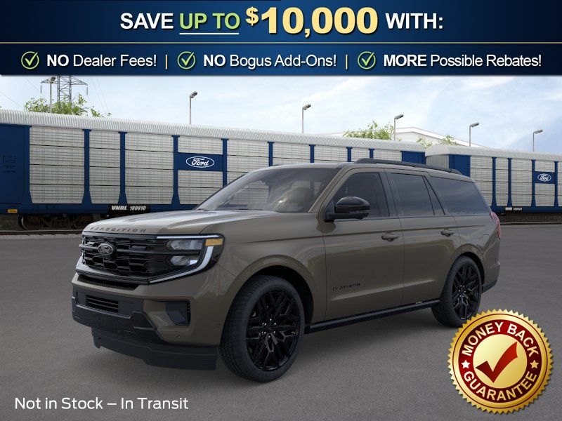 Dealer Discount of $3,324 off MSRP Marsh Gray 2026 Ford Expedition Platinum NFT 4WD 10-Speed Automatic 3.5L V6 EcoBoost High Output 4WD, 10 Speakers, 2nd Row Power-Folding Captain's Chairs, 3.73 Axle Ratio, 3rd row seats: split-bench, 4-Wheel Disc Brakes, ABS brakes, Air Conditioning, Alloy wheels, AM/FM radio: SiriusXM with 360L, Apple CarPlay/Android Auto, Auto High-beam Headlights, Auto-dimming door mirrors, Auto-dimming Rear-View mirror, Automatic temperature control, Black Belt Molding, Black Expedition Lettering on Hood, Black Headlamp Bezel with Ebony Trim Applique, Black Onyx Painted Power Deployable Running Boards, Black Platinum Badge on Tailgate, Black Roof Rails, Brake assist, Bumpers: body-color, Carbon Black Front Bumper/Fascia, Compass, Delay-off headlights, Driver door bin, Driver vanity mirror, Driver's Package, Dual front impact airbags, Dual front side impact airbags, Electronic Stability Control, Emergency communication system: 911 Assist, Engine Sound Enhancer, Exterior Parking Camera Rear, Ford Connectivity Package (1-Year Included), Ford Digital Experience, Four wheel independent suspension, Front anti-roll bar, Front Bucket Seats, Front Center Armrest, Front dual zone A/C, Front License Plate Bracket, Front reading lights, Fully automatic headlights, Garage door transmitter, Genuine wood dashboard insert, Genuine wood door panel insert, Heated and Ventilated Leather Front Captain's Chairs, Heated door mirrors, Heated front seats, Heated rear seats, Heated steering wheel, High Flow Exhaust System, Illuminated entry, Intersection Assist, Leather steering wheel, Low tire pressure warning, Memory seat, Multicontour Active Motion Lthr Frnt Captains Chairs, Navigation System, Occupant sensing airbag, Outside temperature display, Overhead airbag, Overhead console, Panic alarm, Passenger door bin, Passenger vanity mirror, Power door mirrors, Power driver seat, Power moonroof: Vista Roof, Power passenger seat, Power steering, Power windows, Radio data system, Radio: B&O Play Unleashed, Radio: B&O Sound System by Bang and Olufsen, Rain sensing wipers, Rear air conditioning, Rear anti-roll bar, Rear reading lights, Rear Side Windows Laminated Glass, Rear window defroster, Rear window wiper, Reclining 3rd row seat, Remote keyless entry, Security system, Signature Grille Lighting, SiriusXM with 360L, Speed control, Speed-sensing steering, Speed-Sensitive Wipers, Split folding rear seat, Spoiler, Stealth Appearance Package, Stealth Performance Package, Steering wheel memory, Steering wheel mounted audio controls, Tachometer, Telescoping steering wheel, Tilt steering wheel, Traction control, Trip computer, Turn signal indicator mirrors, Variably intermittent wipers, Ventilated front seats, Voltmeter, Wheels: 20" x 8.5" Ebony Bright Machined Aluminum, Wheels: 22" x 9.0" Ebony Bright Machined Face Aluminum, Wheels: 24" x 9.5" Ebony Painted Aluminum, 4WD.
