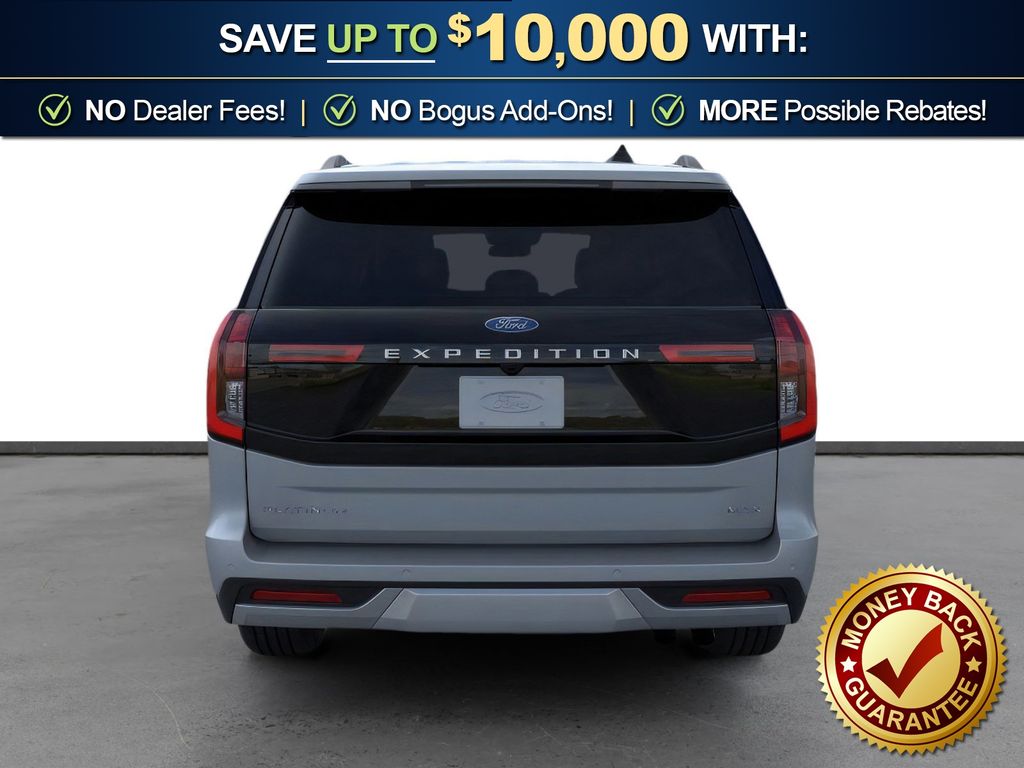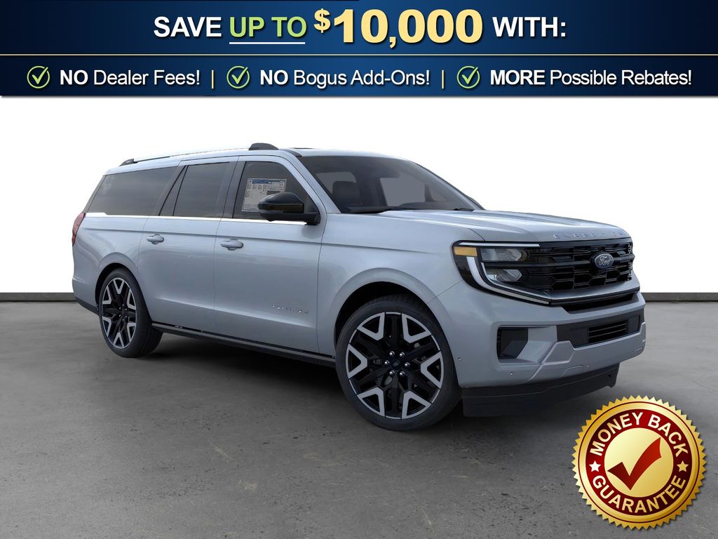 Glacier Gray Metallic Tri-Coat 2026 Ford Expedition Max Platinum FCT 4WD 10-Speed Automatic 3.5L V6 10 Speakers, 2nd Row Power-Folding Captain's Chairs, 3.73 Axle Ratio, 3rd row seats: split-bench, 4-Wheel Disc Brakes, ABS brakes, Air Conditioning, Alloy wheels, AM/FM radio: SiriusXM with 360L, Apple CarPlay/Android Auto, Auto High-beam Headlights, Auto-dimming door mirrors, Auto-dimming Rear-View mirror, Automatic temperature control, Black Headlamp Bezel with Satin Trim Applique, Black Onyx Painted Power Deployable Running Boards, BlueCruise (equipment + 1-Year + 90-Day Plan), Brake assist, Bumpers: body-color, Carbon Black Front Bumper with Lit Grille Bar, Chrome Roof Rails with Black End Caps, Compass, Delay-off headlights, Driver door bin, Driver vanity mirror, Driver's Package, Dual front impact airbags, Dual front side impact airbags, Electronic Stability Control, Emergency communication system: 911 Assist, Engine Sound Enhancer, Exterior Parking Camera Rear, Ford Connectivity Package (1-Year Included), Ford Digital Experience, Four wheel independent suspension, Front anti-roll bar, Front Bucket Seats, Front Center Armrest, Front Door Scuff Plates with Met Insert and Bright Rear, Front dual zone A/C, Front License Plate Bracket, Front reading lights, Fully automatic headlights, Garage door transmitter, Genuine wood dashboard insert, Genuine wood door panel insert, Heated and Ventilated Leather Front Captain's Chairs, Heated door mirrors, Heated front seats, Heated rear seats, Heated steering wheel, High Flow Exhaust System, Illuminated entry, Intersection Assist, Leather steering wheel, Low tire pressure warning, Memory seat, Multicontour Active Motion Lthr Frnt Captains Chairs, Navigation System, Occupant sensing airbag, Outside temperature display, Overhead airbag, Overhead console, Panic alarm, Passenger door bin, Passenger vanity mirror, Platinum Ultimate Interior Package, Platinum Ultimate Package, Polished Stainless Steel Beltline Molding, Power door mirrors, Power driver seat, Power moonroof: Vista Roof, Power passenger seat, Power steering, Power windows, Radio data system, Radio: B&O Play Unleashed, Radio: B&O Sound System by Bang and Olufsen, Rain sensing wipers, Rear air conditioning, Rear anti-roll bar, Rear reading lights, Rear Seat Radio Controls, Rear Side Windows Laminated Glass, Rear window defroster, Rear window wiper, Reclining 3rd row seat, Remote keyless entry, Satin Aluminum Expedition Lettering on Side and Hood, Satin Aluminum Platinum Badge on Tailgate, Security system, Signature Grille Lighting, SiriusXM with 360L, Speed control, Speed-sensing steering, Speed-Sensitive Wipers, Split folding rear seat, Spoiler, Steering wheel memory, Steering wheel mounted audio controls, Tachometer, Telescoping steering wheel, Tilt steering wheel, Traction control, Trip computer, Turn signal indicator mirrors, Variably intermittent wipers, Ventilated front seats, Voltmeter, Wheels: 20" x 8.5" Ebony Bright Machined Aluminum, Wheels: 22" x 9.0" Ebony Bright Machined Face Aluminum, Wheels: 24" x 9.5" Tarnished Dark Metallic.