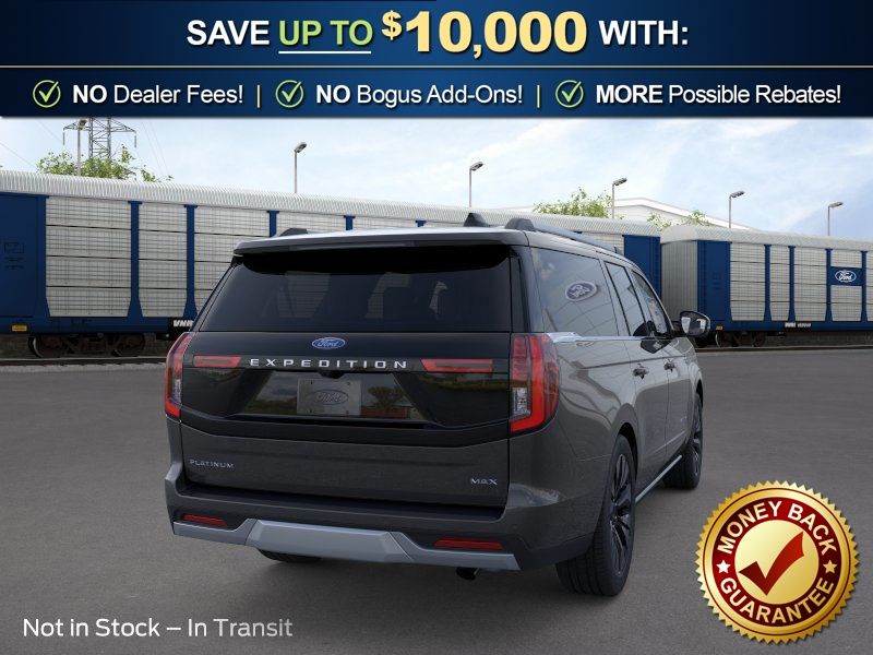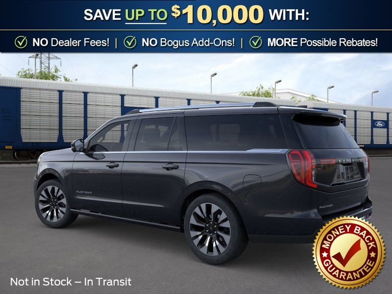 Dealer Discount of $3,251 off MSRP Dark Matter Gray Metallic 2026 Ford Expedition Max Platinum NFT 4WD 10-Speed Automatic EcoBoost 3.5L V6 GTDi DOHC 24V Twin Turbocharged 10 Speakers, 2nd Row Power-Folding Captain's Chairs, 3.73 Axle Ratio, 3rd row seats: split-bench, 4-Wheel Disc Brakes, ABS brakes, Air Conditioning, Alloy wheels, AM/FM radio: SiriusXM with 360L, Apple CarPlay/Android Auto, Auto High-beam Headlights, Auto-dimming door mirrors, Auto-dimming Rear-View mirror, Automatic temperature control, Black Onyx Painted Power Deployable Running Boards, Brake assist, Bumpers: body-color, Compass, Delay-off headlights, Driver door bin, Driver vanity mirror, Driver's Package, Dual front impact airbags, Dual front side impact airbags, Electronic Stability Control, Emergency communication system: 911 Assist, Exterior Parking Camera Rear, Ford Connectivity Package (1-Year Included), Ford Digital Experience, Four wheel independent suspension, Front anti-roll bar, Front Bucket Seats, Front Center Armrest, Front dual zone A/C, Front License Plate Bracket, Front reading lights, Fully automatic headlights, Garage door transmitter, Genuine wood dashboard insert, Genuine wood door panel insert, Heated and Ventilated Leather Front Captain's Chairs, Heated door mirrors, Heated front seats, Heated rear seats, Heated steering wheel, Illuminated entry, Intersection Assist, Leather steering wheel, Low tire pressure warning, Memory seat, Multicontour Active Motion Lthr Frnt Captains Chairs, Navigation System, Occupant sensing airbag, Outside temperature display, Overhead airbag, Overhead console, Panic alarm, Passenger door bin, Passenger vanity mirror, Power door mirrors, Power driver seat, Power moonroof: Vista Roof, Power passenger seat, Power steering, Power windows, Radio data system, Radio: B&O Play Unleashed, Radio: B&O Sound System by Bang and Olufsen, Rain sensing wipers, Rear air conditioning, Rear anti-roll bar, Rear reading lights, Rear window defroster, Rear window wiper, Reclining 3rd row seat, Remote keyless entry, Security system, SiriusXM with 360L, Speed control, Speed-sensing steering, Speed-Sensitive Wipers, Split folding rear seat, Spoiler, Steering wheel memory, Steering wheel mounted audio controls, Tachometer, Telescoping steering wheel, Tilt steering wheel, Traction control, Trip computer, Turn signal indicator mirrors, Variably intermittent wipers, Ventilated front seats, Voltmeter, Wheels: 20" x 8.5" Ebony Bright Machined Aluminum, Wheels: 22" x 9.0" Ebony Bright Machined Face Aluminum.