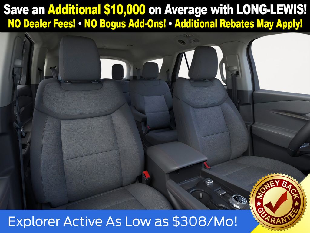 Agate Black Metallic 2026 Ford Explorer Active NFT RWD 10-Speed Automatic 2.3L EcoBoost I-4 3rd row seats: bench, 4-Wheel Disc Brakes, 6 Speakers, ABS brakes, Air Conditioning, Alloy wheels, AM/FM radio: SiriusXM with 360L, AM/FM Stereo, Apple CarPlay/Android Auto, Auto High-beam Headlights, Automatic temperature control, Brake assist, Bumpers: body-color, Compass, Delay-off headlights, Driver door bin, Driver vanity mirror, Dual front impact airbags, Dual front side impact airbags, Electronic Stability Control, Emergency communication system: 911 Assist, Exterior Parking Camera Rear, Four wheel independent suspension, Front anti-roll bar, Front Bucket Seats, Front Center Armrest, Front dual zone A/C, Front License Plate Bracket, Front reading lights, Fully automatic headlights, Heated door mirrors, Illuminated entry, Knee airbag, Low tire pressure warning, Navigation System, Occupant sensing airbag, Outside temperature display, Overhead airbag, Overhead console, Panic alarm, Passenger door bin, Passenger vanity mirror, Power door mirrors, Power driver seat, Power steering, Power windows, Rear air conditioning, Rear anti-roll bar, Rear reading lights, Rear window defroster, Rear window wiper, Remote keyless entry, Security system, Speed control, Speed-sensing steering, Speed-Sensitive Wipers, Split folding rear seat, Spoiler, Steering wheel mounted audio controls, Tachometer, Telescoping steering wheel, Tilt steering wheel, Traction control, Trip computer, Variably intermittent wipers, Wheels: 18" Sparkle Silver-Painted Aluminum.
