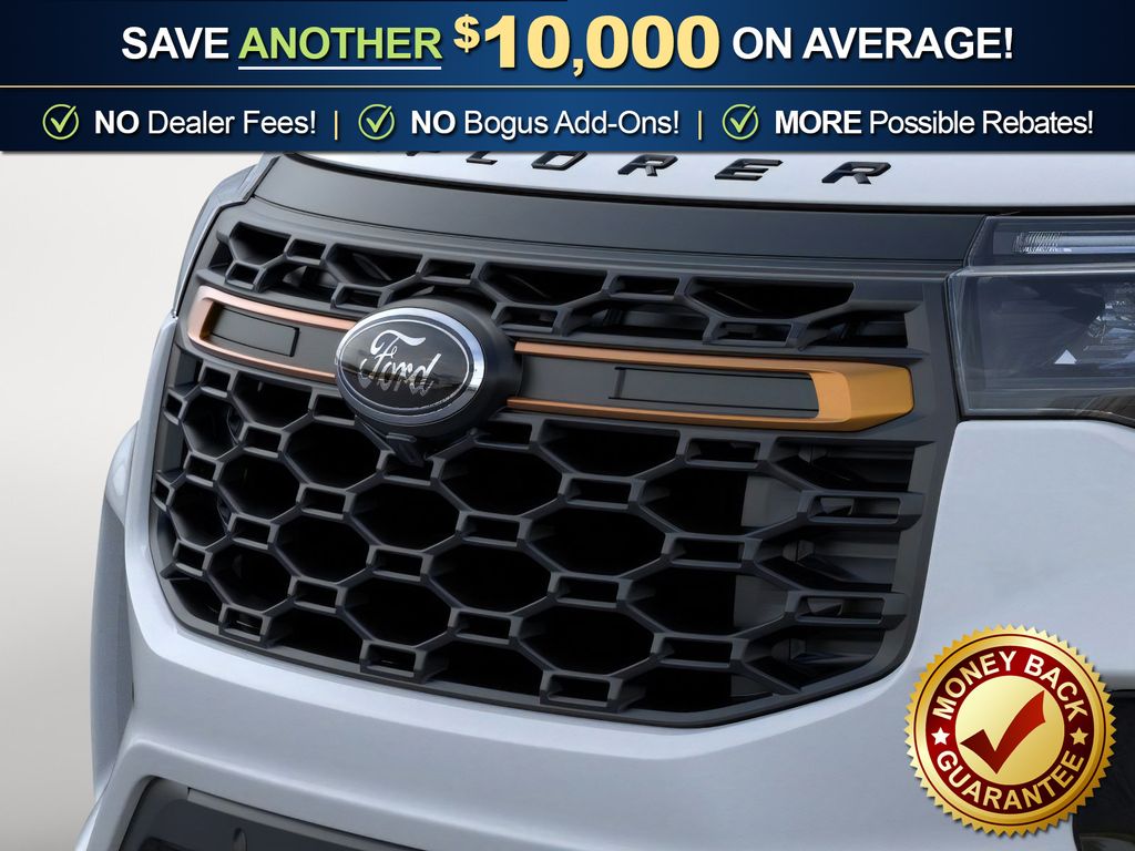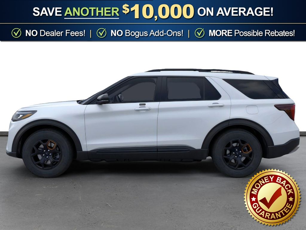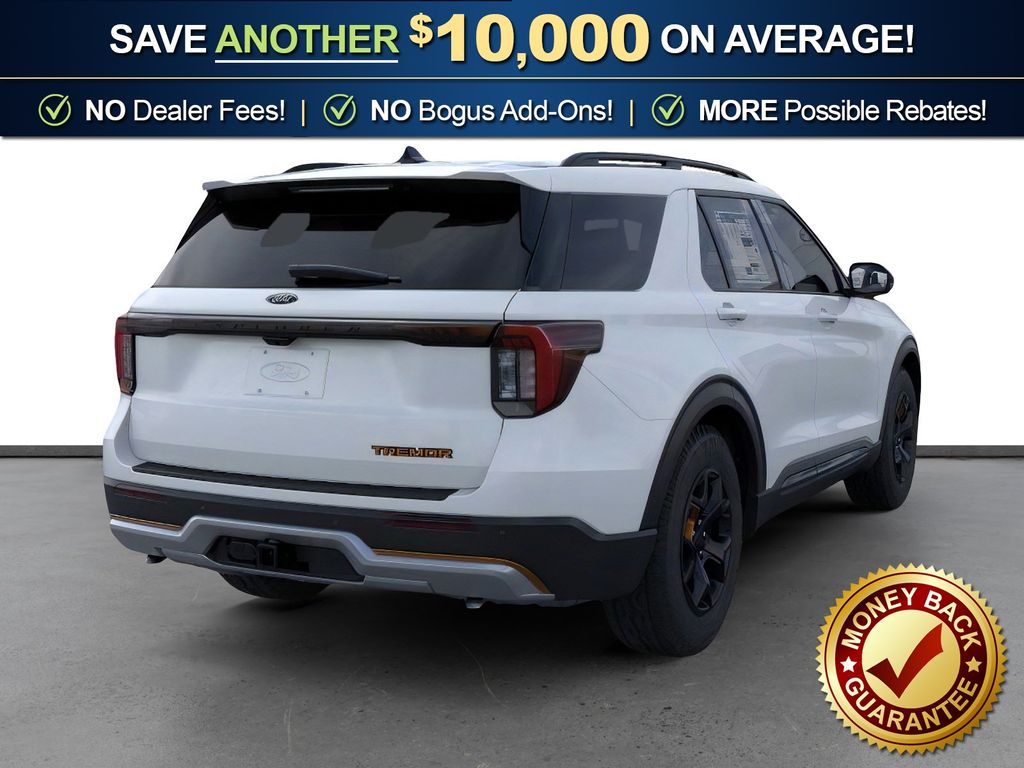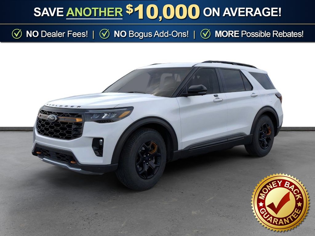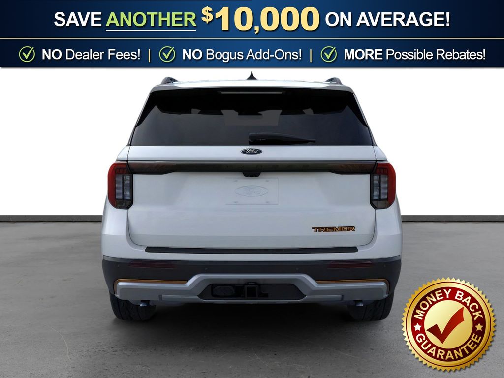 Space White Metallic 2026 Ford Explorer Tremor NFT 4WD 10-Speed Automatic 3.0L EcoBoost V6 4WD, 10 Speakers, 3rd Row PowerFold Seats, 3rd row seats: bench, 4-Wheel Disc Brakes, ABS brakes, Air Conditioning, Alloy wheels, AM/FM radio: SiriusXM with 360L, Ambient Lighting, Apple CarPlay/Android Auto, Auto High-beam Headlights, Automatic temperature control, BlueCruise Hardware, Brake assist, Bumpers: body-color, Compass, Delay-off headlights, Driver door bin, Driver vanity mirror, Dual front impact airbags, Dual front side impact airbags, Electronic Stability Control, Emergency communication system: 911 Assist, Exterior Parking Camera Rear, Four wheel independent suspension, Front anti-roll bar, Front Bucket Seats, Front Center Armrest, Front dual zone A/C, Front fog lights, Front License Plate Bracket, Front reading lights, Fully automatic headlights, Garage door transmitter, Heated door mirrors, Heated front seats, Heated rear seats, Heated steering wheel, Heated/Ventilated Miko Suede Captain's Chairs, Illuminated entry, Knee airbag, Leather steering wheel, Low tire pressure warning, Memory Driver's Seat, Multicontour Seats with Front Active Motion, Navigation System, Occupant sensing airbag, Outside temperature display, Overhead airbag, Overhead console, Panic alarm, Panoramic Fixed Glass Roof with Power Shade, Passenger door bin, Passenger vanity mirror, Power door mirrors, Power driver seat, Power Liftgate, Power passenger seat, Power steering, Power windows, Power-Folding with Autofold Side Mirrors, Radio: B&O Sound System by Bang & Olufsen, Radio: B&O Sound System by Bang and Olufsen, Rain-Sensing Wipers (front Only), Rear air conditioning, Rear anti-roll bar, Rear reading lights, Rear window defroster, Rear window wiper, Remote keyless entry, SecuriCode Keyless Entry Keypad, Security system, Speed control, Speed-sensing steering, Speed-Sensitive Wipers, Split folding rear seat, Spoiler, Sport steering wheel, Steering wheel mounted audio controls, Tachometer, Telescoping steering wheel, Tilt steering wheel, Traction control, Tremor Ultimate Package, Trip computer, Variably intermittent wipers, Ventilated front seats, Wheels: 18" High Gloss Black-Painted Aluminum, 4WD.