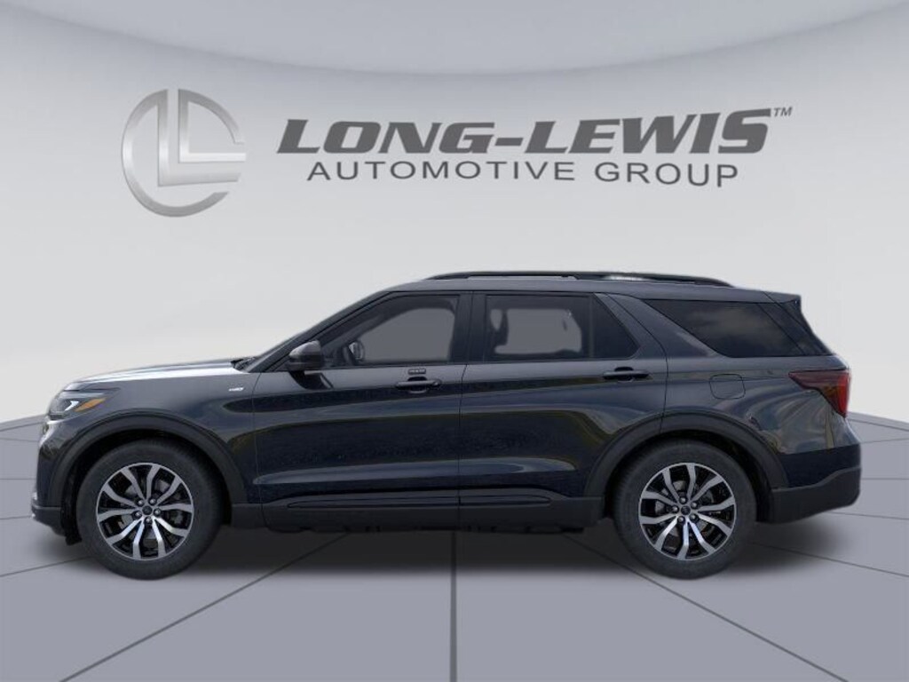 Agate Black Metallic 2026 Ford Explorer ST-Line RWD 10-Speed Automatic 2.3L EcoBoost I-4 10 Speakers, 3rd row seats: bench, 4-Wheel Disc Brakes, ABS brakes, Air Conditioning, Alloy wheels, AM/FM radio: SiriusXM with 360L, Apple CarPlay/Android Auto, Auto High-beam Headlights, Automatic temperature control, BlueCruise Hardware, Brake assist, Bumpers: body-color, Compass, Delay-off headlights, Driver door bin, Driver vanity mirror, Dual front impact airbags, Dual front side impact airbags, Electronic Stability Control, Emergency communication system: 911 Assist, Exterior Parking Camera Rear, Four wheel independent suspension, Front anti-roll bar, Front Bucket Seats, Front Center Armrest, Front dual zone A/C, Front fog lights, Front License Plate Bracket, Front reading lights, Fully automatic headlights, Garage door transmitter, Heated door mirrors, Heated front seats, Heated steering wheel, Heated Unique Cloth Captain's Chairs, Illuminated entry, Knee airbag, Leather steering wheel, Low tire pressure warning, Navigation System, Occupant sensing airbag, Outside temperature display, Overhead airbag, Overhead console, Panic alarm, Passenger door bin, Passenger vanity mirror, Power door mirrors, Power driver seat, Power Liftgate, Power passenger seat, Power steering, Power windows, Radio: B&O Sound System by Bang & Olufsen, Rear air conditioning, Rear anti-roll bar, Rear reading lights, Rear window defroster, Rear window wiper, Remote keyless entry, SecuriCode Keyless Entry Keypad, Security system, Speed control, Speed-sensing steering, Speed-Sensitive Wipers, Split folding rear seat, Spoiler, Steering wheel mounted audio controls, Tachometer, Telescoping steering wheel, Tilt steering wheel, Traction control, Trip computer, Variably intermittent wipers, Wheels: 20" Ebony-Painted Machined Aluminum.