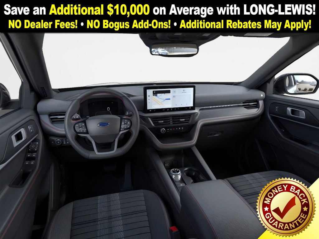 Star White Metallic Tri-Coat 2026 Ford Explorer ST-Line FCT RWD 10-Speed Automatic 2.3L EcoBoost I-4 10 Speakers, 110V/150W AC Power Outlet, 2nd Row Captain's Chairs w/E-Z Entry and Armrest, 2nd Row Heated Seats, 3rd row seats: bench, 4-Wheel Disc Brakes, ABS brakes, Air Conditioning, Alloy wheels, AM/FM radio: SiriusXM with 360L, Ambient Lighting, Apple CarPlay/Android Auto, Auto High-beam Headlights, Auto-Dimming Interior Rear-View Mirror, Automatic temperature control, BlueCruise (equipment + 1-Year + 90-Day Plan), BlueCruise Hardware, Brake assist, Bumpers: body-color, Compass, Delay-off headlights, Driver door bin, Driver vanity mirror, Dual front impact airbags, Dual front side impact airbags, Electronic Stability Control, Emergency communication system: 911 Assist, Exterior Parking Camera Rear, Four wheel independent suspension, Front anti-roll bar, Front Bucket Seats, Front Center Armrest, Front dual zone A/C, Front fog lights, Front License Plate Bracket, Front reading lights, Fully automatic headlights, Garage door transmitter, Heated door mirrors, Heated front seats, Heated steering wheel, Heated Unique Cloth Captain's Chairs, Illuminated entry, Knee airbag, Leather steering wheel, Low tire pressure warning, Manual-Folding Sideview Mirrors, Memory Driver's Seat, Navigation System, Occupant sensing airbag, Outside temperature display, Overhead airbag, Overhead console, Panic alarm, Passenger door bin, Passenger vanity mirror, Performance Brakes, Power door mirrors, Power driver seat, Power Liftgate, Power passenger seat, Power steering, Power windows, Premium Package, Radio: B&O Sound System by Bang and Olufsen, Rain-Sensing Wipers (front Only), Rear air conditioning, Rear anti-roll bar, Rear reading lights, Rear window defroster, Rear window wiper, Red Painted Performance Front and Rear Brake Calipers, Remote keyless entry, SecuriCode Keyless Entry Keypad, Security system, Speed control, Speed-sensing steering, Speed-Sensitive Wipers, Split folding rear seat, Spoiler, ST-Line Street Pack, Steering wheel mounted audio controls, Tachometer, Telescoping steering wheel, Tilt steering wheel, Traction control, Trip computer, Variably intermittent wipers, Wheels: 20" Ebony-Painted Machined Aluminum, Wheels: 21" Magnetite-Painted Aluminum.