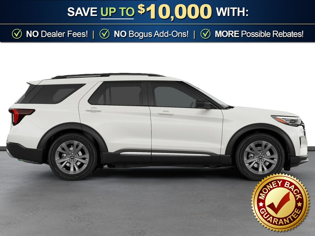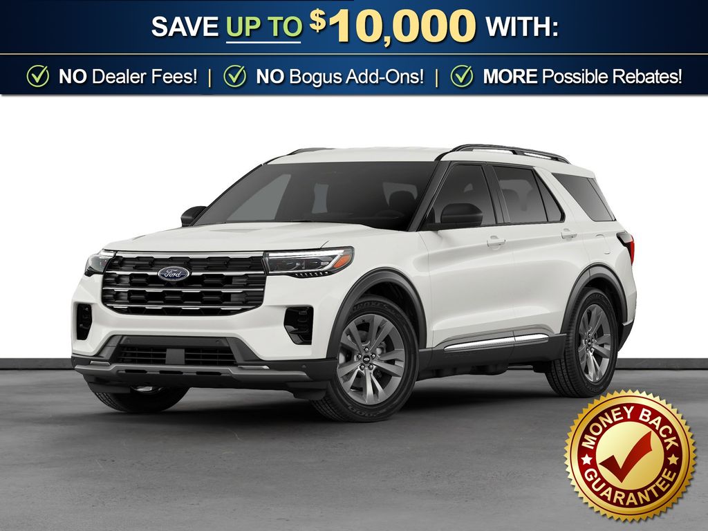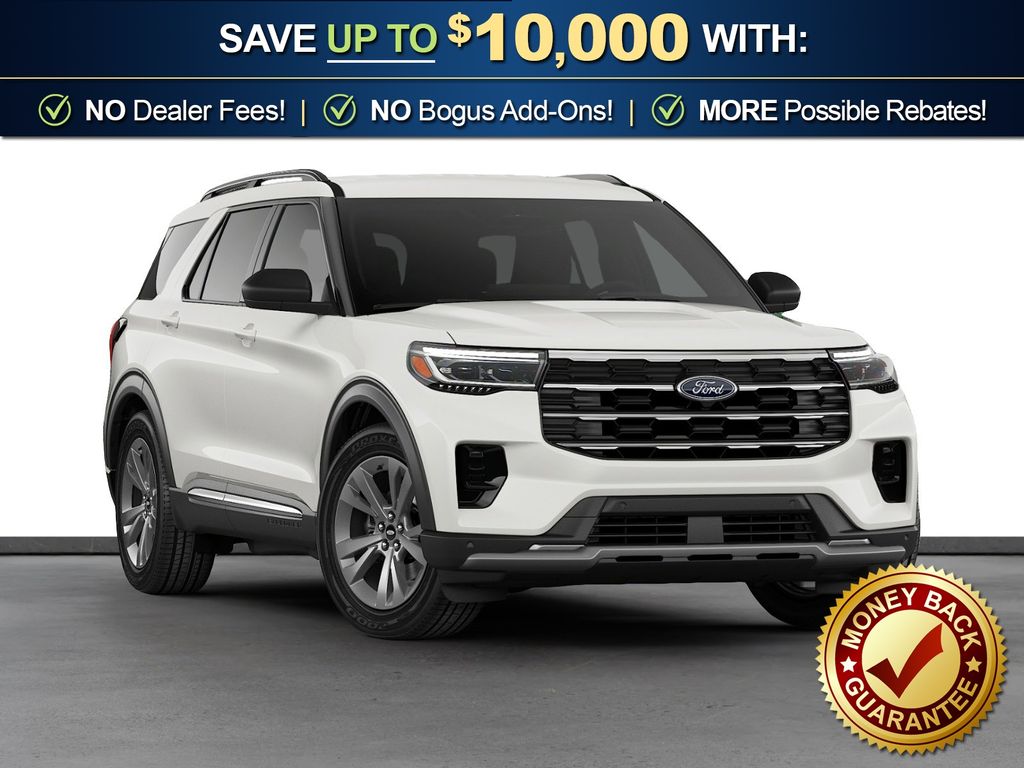 Star White Metallic Tri-Coat 2026 Ford Explorer Active NFT 4WD 10-Speed Automatic 2.3L EcoBoost I-4 4WD, 3rd row seats: bench, 4-Wheel Disc Brakes, 6 Speakers, ABS brakes, Air Conditioning, Alloy wheels, AM/FM radio: SiriusXM with 360L, AM/FM Stereo, Apple CarPlay/Android Auto, Auto High-beam Headlights, Automatic temperature control, Brake assist, Bumpers: body-color, Compass, Delay-off headlights, Driver door bin, Driver vanity mirror, Dual front impact airbags, Dual front side impact airbags, Electronic Stability Control, Emergency communication system: 911 Assist, Exterior Parking Camera Rear, Four wheel independent suspension, Front anti-roll bar, Front Bucket Seats, Front Center Armrest, Front dual zone A/C, Front reading lights, Fully automatic headlights, Heated door mirrors, Illuminated entry, Knee airbag, Low tire pressure warning, Navigation System, Occupant sensing airbag, Outside temperature display, Overhead airbag, Overhead console, Panic alarm, Passenger door bin, Passenger vanity mirror, Power door mirrors, Power driver seat, Power steering, Power windows, Rear air conditioning, Rear anti-roll bar, Rear reading lights, Rear window defroster, Rear window wiper, Remote keyless entry, Security system, Speed control, Speed-sensing steering, Speed-Sensitive Wipers, Split folding rear seat, Spoiler, Steering wheel mounted audio controls, Tachometer, Telescoping steering wheel, Tilt steering wheel, Traction control, Trip computer, Variably intermittent wipers, Wheels: 18" Sparkle Silver-Painted Aluminum, 4WD.