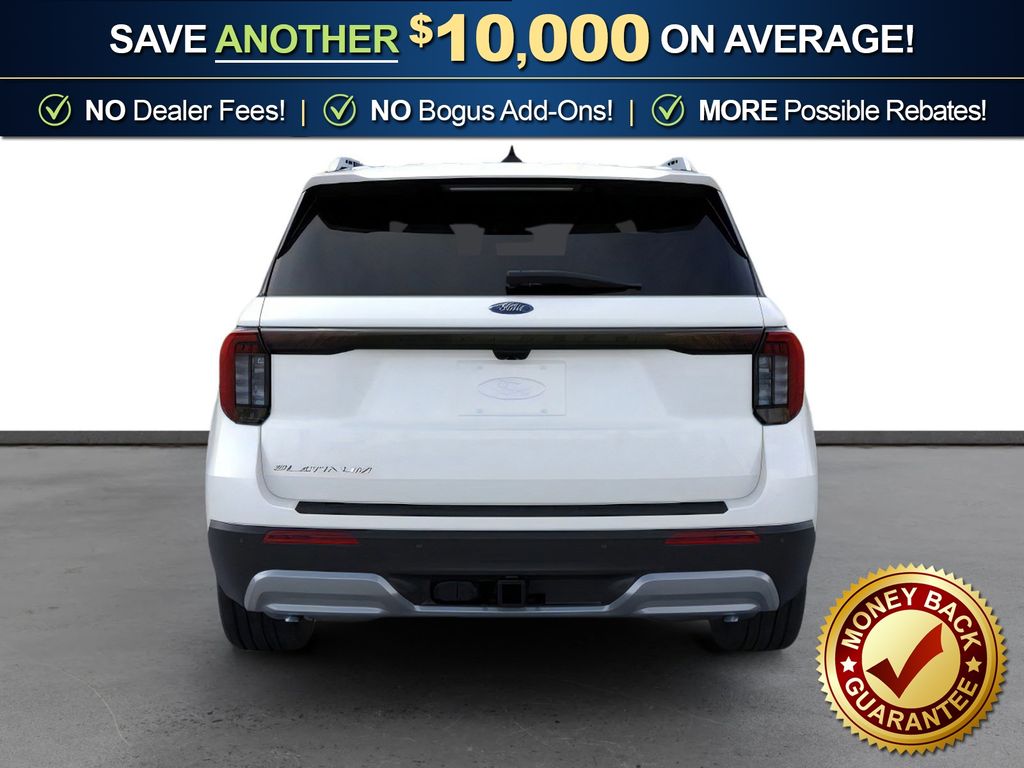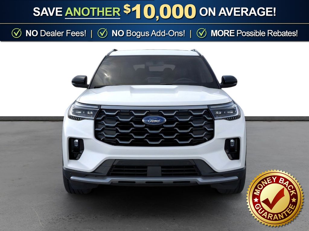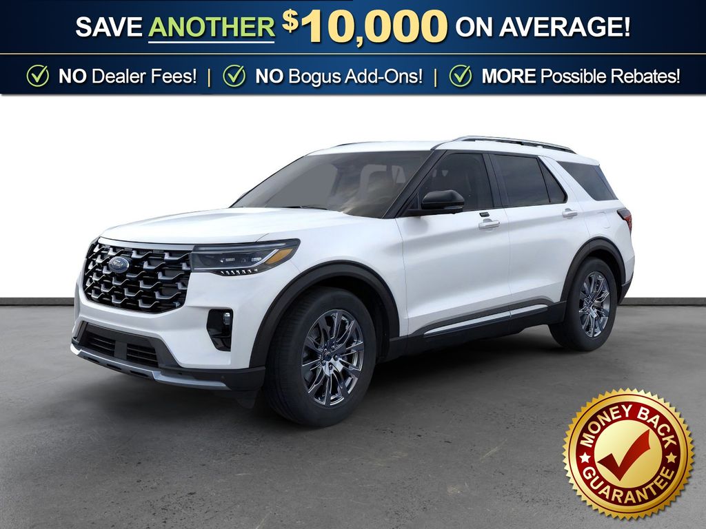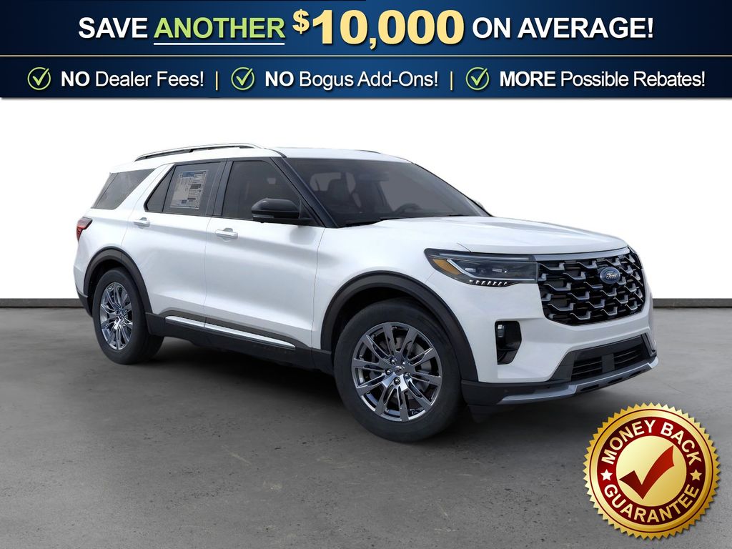 Star White Metallic Tri-Coat 2026 Ford Explorer Platinum FCT RWD 10-Speed Automatic 2.3L EcoBoost I-4 14 Speakers, 3rd row seats: bench, 4-Wheel Disc Brakes, ABS brakes, ActiveX Trimmed Captain's Chairs, Air Conditioning, Alloy wheels, AM/FM radio: SiriusXM with 360L, Apple CarPlay/Android Auto, Auto High-beam Headlights, Auto-dimming door mirrors, Auto-dimming Rear-View mirror, Automatic temperature control, Brake assist, Bumpers: body-color, Compass, Delay-off headlights, Driver door bin, Driver vanity mirror, Dual front impact airbags, Dual front side impact airbags, Electronic Stability Control, Emergency communication system: 911 Assist, Exterior Parking Camera Rear, Four wheel independent suspension, Front anti-roll bar, Front Bucket Seats, Front Center Armrest, Front dual zone A/C, Front fog lights, Front License Plate Bracket, Front reading lights, Fully automatic headlights, Garage door transmitter, Heated door mirrors, Heated front seats, Heated rear seats, Heated steering wheel, Illuminated entry, Knee airbag, Leather steering wheel, Low tire pressure warning, Memory seat, Navigation System, Occupant sensing airbag, Outside temperature display, Overhead airbag, Overhead console, Panic alarm, Panoramic Fixed Glass Roof with Power Shade, Passenger door bin, Passenger vanity mirror, Power door mirrors, Power driver seat, Power Liftgate, Power passenger seat, Power steering, Power windows, Radio data system, Radio: B&O Sound System by Bang & Olufsen with HD, Rain sensing wipers, Rear air conditioning, Rear anti-roll bar, Rear reading lights, Rear window defroster, Rear window wiper, Remote keyless entry, SecuriCode Keyless Entry Keypad, Security system, Speed control, Speed-sensing steering, Speed-Sensitive Wipers, Split folding rear seat, Spoiler, Steering wheel mounted audio controls, Tachometer, Telescoping steering wheel, Tilt steering wheel, Traction control, Trip computer, Turn signal indicator mirrors, Variably intermittent wipers, Ventilated front seats, Wheels: 20" Luster Nickel-Painted Aluminum.