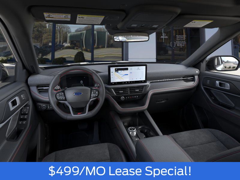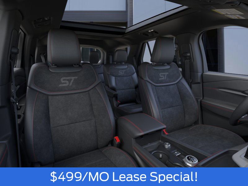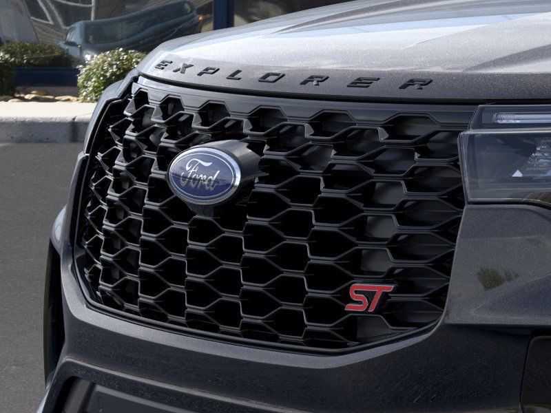 Agate Black Metallic 2026 Ford Explorer ST FCT RWD 10-Speed Automatic 3.0L EcoBoost V6 10 Speakers, 3rd row seats: bench, 4-Wheel Disc Brakes, ABS brakes, Air Conditioning, Alloy wheels, AM/FM radio: SiriusXM with 360L, Apple CarPlay/Android Auto, Auto High-beam Headlights, Auto-dimming door mirrors, Auto-dimming Rear-View mirror, Automatic temperature control, Brake assist, Bumpers: body-color, Compass, Delay-off headlights, Driver door bin, Driver vanity mirror, Dual front impact airbags, Dual front side impact airbags, Electronic Stability Control, Emergency communication system: 911 Assist, Exterior Parking Camera Rear, Four wheel independent suspension, Front anti-roll bar, Front Bucket Seats, Front Center Armrest, Front dual zone A/C, Front fog lights, Front License Plate Bracket, Front reading lights, Fully automatic headlights, Garage door transmitter, Heated door mirrors, Heated front seats, Heated rear seats, Heated steering wheel, Heated/Ventilated Miko Captain's Chairs, Illuminated entry, Knee airbag, Leather steering wheel, Low tire pressure warning, Memory seat, Navigation System, Occupant sensing airbag, Outside temperature display, Overhead airbag, Overhead console, Panic alarm, Passenger door bin, Passenger vanity mirror, Power door mirrors, Power driver seat, Power Liftgate, Power passenger seat, Power steering, Power windows, Radio: B&O Sound System by Bang & Olufsen, Rain sensing wipers, Rear air conditioning, Rear anti-roll bar, Rear reading lights, Rear window defroster, Rear window wiper, Remote Control Front Windows, Remote keyless entry, SecuriCode Keyless Entry Keypad, Security system, Speed control, Speed-sensing steering, Speed-Sensitive Wipers, Split folding rear seat, Spoiler, Sport steering wheel, Steering wheel mounted audio controls, Sun and Sound Package, Tachometer, Telescoping steering wheel, Tilt steering wheel, Traction control, Trip computer, Turn signal indicator mirrors, Variably intermittent wipers, Ventilated front seats, Wheels: 21" Magnetite-Painted Aluminum.