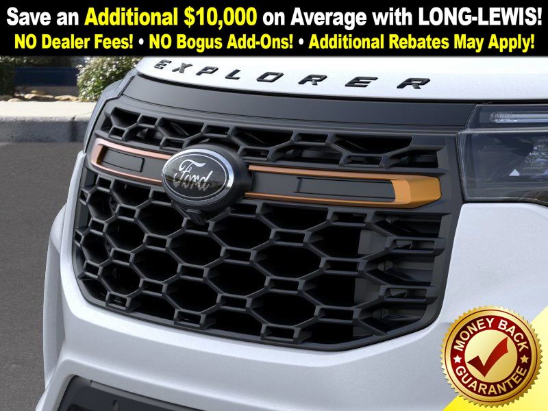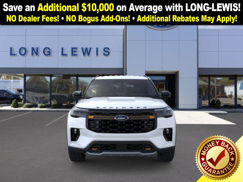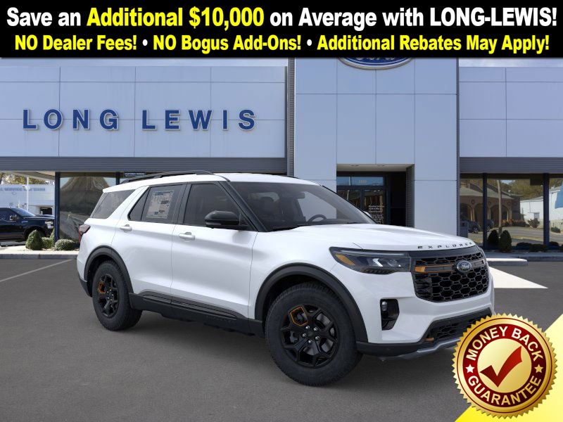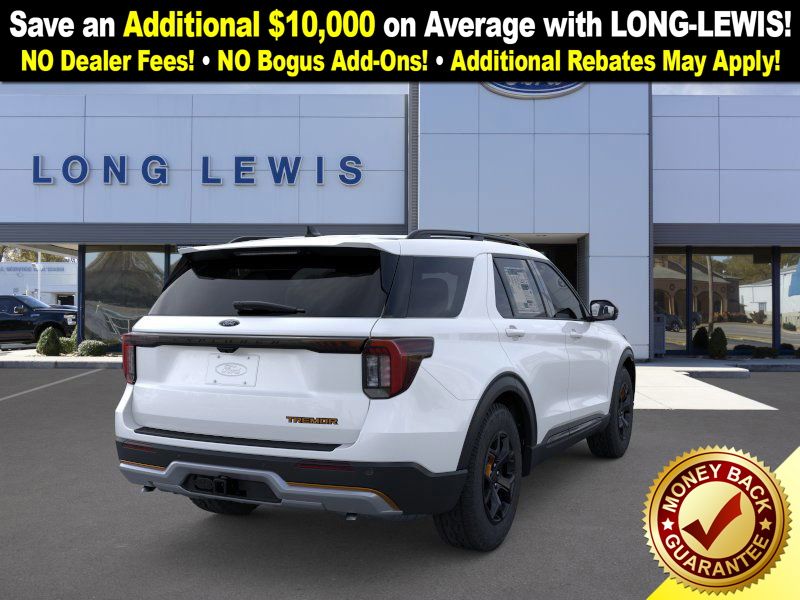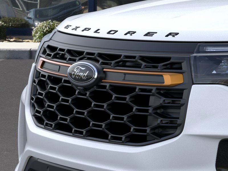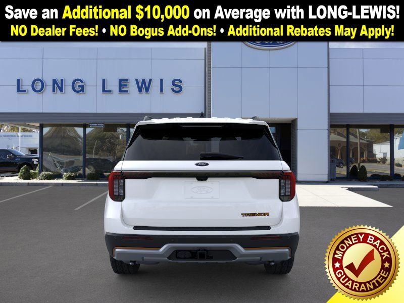 Star White Metallic Tri-Coat 2026 Ford Explorer Tremor FCT 4WD 10-Speed Automatic 2.3L EcoBoost I-4 4WD, 10 Speakers, 3rd row seats: bench, 4-Wheel Disc Brakes, ABS brakes, Air Conditioning, Alloy wheels, AM/FM radio: SiriusXM with 360L, Apple CarPlay/Android Auto, Auto High-beam Headlights, Automatic temperature control, Brake assist, Bumpers: body-color, Compass, Delay-off headlights, Driver door bin, Driver vanity mirror, Dual front impact airbags, Dual front side impact airbags, Electronic Stability Control, Emergency communication system: 911 Assist, Exterior Parking Camera Rear, Four wheel independent suspension, Front anti-roll bar, Front Bucket Seats, Front Center Armrest, Front dual zone A/C, Front fog lights, Front License Plate Bracket, Front reading lights, Fully automatic headlights, Heated door mirrors, Heated front seats, Heated rear seats, Heated steering wheel, Heated/Ventilated Miko Captain's Chairs, Illuminated entry, Knee airbag, Leather steering wheel, Low tire pressure warning, Navigation System, Occupant sensing airbag, Outside temperature display, Overhead airbag, Overhead console, Panic alarm, Passenger door bin, Passenger vanity mirror, Power door mirrors, Power driver seat, Power Liftgate, Power passenger seat, Power steering, Power windows, Radio: B&O Sound System by Bang & Olufsen, Rear air conditioning, Rear anti-roll bar, Rear reading lights, Rear window defroster, Rear window wiper, Remote keyless entry, SecuriCode Keyless Entry Keypad, Security system, Speed control, Speed-sensing steering, Speed-Sensitive Wipers, Split folding rear seat, Spoiler, Sport steering wheel, Steering wheel mounted audio controls, Tachometer, Telescoping steering wheel, Tilt steering wheel, Traction control, Trip computer, Variably intermittent wipers, Ventilated front seats, Wheels: 18" High Gloss Black-Painted Aluminum, 4WD.
