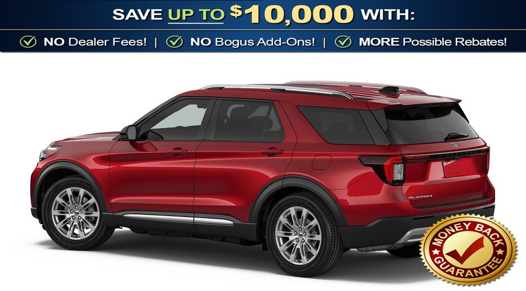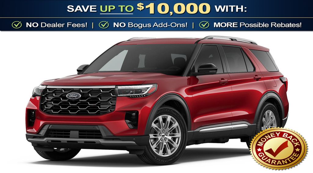 Rapid Red Metallic Tinted Clearcoat 2026 Ford Explorer Platinum NFT RWD 10-Speed Automatic 2.3L EcoBoost I-4 14 Speakers, 3rd row seats: bench, 4-Wheel Disc Brakes, ABS brakes, ActiveX Trimmed Captain's Chairs, Air Conditioning, Alloy wheels, AM/FM radio: SiriusXM with 360L, Apple CarPlay/Android Auto, Auto High-beam Headlights, Auto-dimming door mirrors, Auto-dimming Rear-View mirror, Automatic temperature control, Brake assist, Bumpers: body-color, Compass, Delay-off headlights, Driver door bin, Driver vanity mirror, Dual front impact airbags, Dual front side impact airbags, Electronic Stability Control, Emergency communication system: 911 Assist, Exterior Parking Camera Rear, Four wheel independent suspension, Front anti-roll bar, Front Bucket Seats, Front Center Armrest, Front dual zone A/C, Front fog lights, Front reading lights, Fully automatic headlights, Garage door transmitter, Heated door mirrors, Heated front seats, Heated rear seats, Heated steering wheel, Illuminated entry, Knee airbag, Leather steering wheel, Low tire pressure warning, Memory seat, Navigation System, Occupant sensing airbag, Outside temperature display, Overhead airbag, Overhead console, Panic alarm, Passenger door bin, Passenger vanity mirror, Power door mirrors, Power driver seat, Power Liftgate, Power passenger seat, Power steering, Power windows, Radio data system, Radio: B&O Sound System by Bang & Olufsen with HD, Rain sensing wipers, Rear air conditioning, Rear anti-roll bar, Rear reading lights, Rear window defroster, Rear window wiper, Remote keyless entry, Security system, Speed control, Speed-sensing steering, Speed-Sensitive Wipers, Split folding rear seat, Spoiler, Steering wheel mounted audio controls, Tachometer, Telescoping steering wheel, Tilt steering wheel, Traction control, Trip computer, Turn signal indicator mirrors, Variably intermittent wipers, Ventilated front seats, Wheels: 20" Luster Nickel-Painted Aluminum.