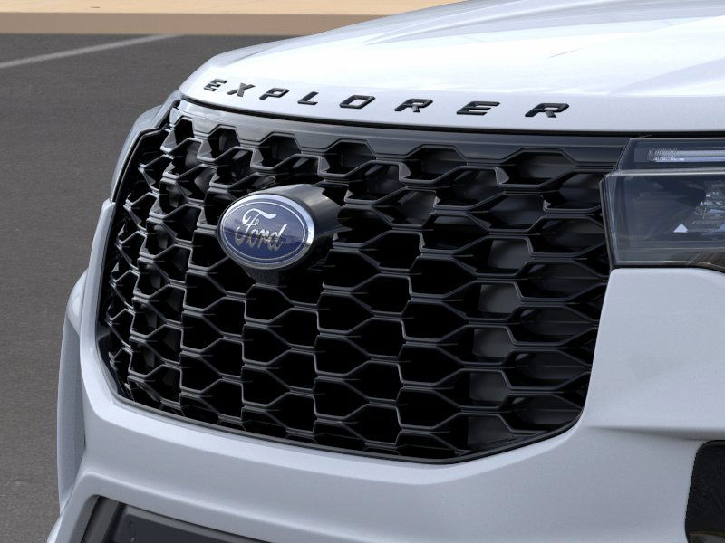 2026 Ford Explorer ST-Line NFT Space White Metallic ST-Line NFT RWD 10-Speed Automatic 2.3L EcoBoost I-4 10 Speakers, 110V/150W AC Power Outlet, 2nd Row Captain's Chairs w/E-Z Entry and Armrest, 2nd Row Heated Seats, 3rd row seats: bench, 4-Wheel Disc Brakes, ABS brakes, Air Conditioning, Alloy wheels, AM/FM radio: SiriusXM with 360L, Ambient Lighting, Apple CarPlay/Android Auto, Auto High-beam Headlights, Auto-Dimming Interior Rear-View Mirror, Automatic temperature control, BlueCruise (equipment + 1-Year + 90-Day Plan), BlueCruise Hardware, Brake assist, Bumpers: body-color, Compass, Delay-off headlights, Driver door bin, Driver vanity mirror, Dual front impact airbags, Dual front side impact airbags, Electronic Stability Control, Emergency communication system: 911 Assist, Exterior Parking Camera Rear, Ford Connectivity Package (one-Time Purchase - 7 Years), Four wheel independent suspension, Front anti-roll bar, Front Bucket Seats, Front Center Armrest, Front dual zone A/C, Front fog lights, Front reading lights, Fully automatic headlights, Garage door transmitter, Heated door mirrors, Heated front seats, Heated steering wheel, Heated Unique Cloth Captain's Chairs, Illuminated entry, Knee airbag, Leather steering wheel, Low tire pressure warning, Manual-Folding Sideview Mirrors, Memory Driver's Seat, Navigation System, Occupant sensing airbag, Outside temperature display, Overhead airbag, Overhead console, Panic alarm, Passenger door bin, Passenger vanity mirror, Performance Brakes, Power door mirrors, Power driver seat, Power Liftgate, Power passenger seat, Power steering, Power windows, Premium Package, Radio: B&O Sound System by Bang and Olufsen, Rain-Sensing Wipers (front Only), Rear air conditioning, Rear anti-roll bar, Rear reading lights, Rear window defroster, Rear window wiper, Red Painted Performance Front and Rear Brake Calipers, Remote keyless entry, Security system, Speed control, Speed-sensing steering, Speed-Sensitive Wipers, Split folding rear seat, Spoiler, ST-Line Street Pack, Steering wheel mounted audio controls, Tachometer, Telescoping steering wheel, Tilt steering wheel, Traction control, Trip computer, Variably intermittent wipers, Wheels: 20" Ebony-Painted Machined Aluminum, Wheels: 21" Magnetite-Painted Aluminum.