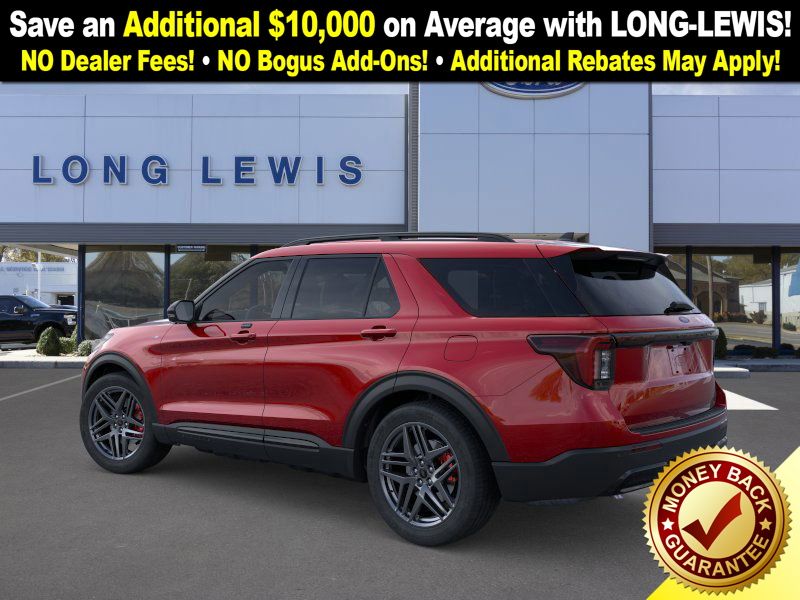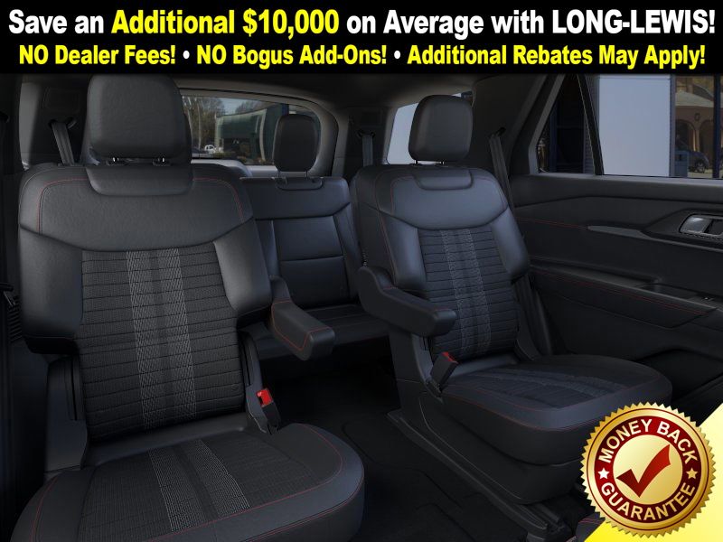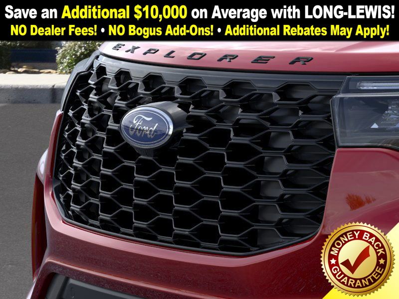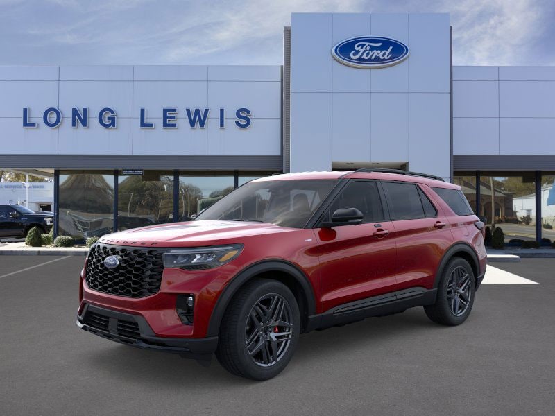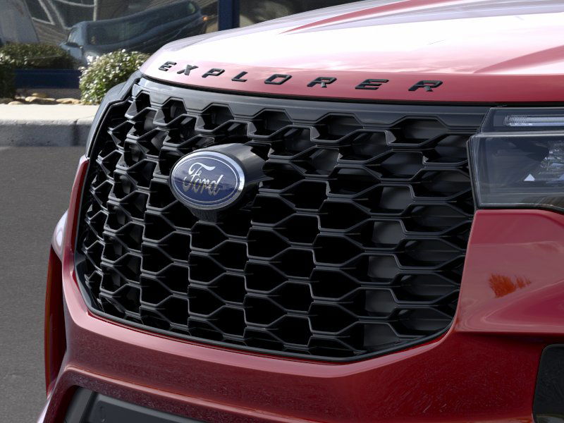 Rapid Red Metallic Tinted Clearcoat 2026 Ford Explorer ST-Line fctp RWD 10-Speed Automatic 2.3L EcoBoost I-4 10 Speakers, 110V/150W AC Power Outlet, 2nd Row Heated Seats, 3rd row seats: bench, 4-Wheel Disc Brakes, ABS brakes, Air Conditioning, Alloy wheels, AM/FM radio: SiriusXM with 360L, Ambient Lighting, Apple CarPlay/Android Auto, Auto High-beam Headlights, Auto-Dimming Interior Rear-View Mirror, Automatic temperature control, Brake assist, Bumpers: body-color, Compass, Delay-off headlights, Driver door bin, Driver vanity mirror, Dual front impact airbags, Dual front side impact airbags, Electronic Stability Control, Emergency communication system: 911 Assist, Exterior Parking Camera Rear, Four wheel independent suspension, Front anti-roll bar, Front Bucket Seats, Front Center Armrest, Front dual zone A/C, Front fog lights, Front License Plate Bracket, Front reading lights, Fully automatic headlights, Garage door transmitter, Heated door mirrors, Heated front seats, Heated steering wheel, Heated Unique Cloth Captain's Chairs, Illuminated entry, Knee airbag, Leather steering wheel, Low tire pressure warning, Manual-Folding Sideview Mirrors, Memory Driver's Seat, Navigation System, Occupant sensing airbag, Outside temperature display, Overhead airbag, Overhead console, Panic alarm, Passenger door bin, Passenger vanity mirror, Performance Brakes, Power door mirrors, Power driver seat, Power Liftgate, Power passenger seat, Power steering, Power windows, Premium Package, Rear air conditioning, Rear anti-roll bar, Rear reading lights, Rear window defroster, Rear window wiper, Remote keyless entry, SecuriCode Keyless Entry Keypad, Security system, Speed control, Speed-sensing steering, Speed-Sensitive Wipers, Split folding rear seat, Spoiler, ST-Line Street Pack, Steering wheel mounted audio controls, Tachometer, Telescoping steering wheel, Tilt steering wheel, Traction control, Trip computer, Variably intermittent wipers, Wheels: 20" Ebony-Painted Machined Aluminum, Wheels: 21" Magnetite-Painted Aluminum.